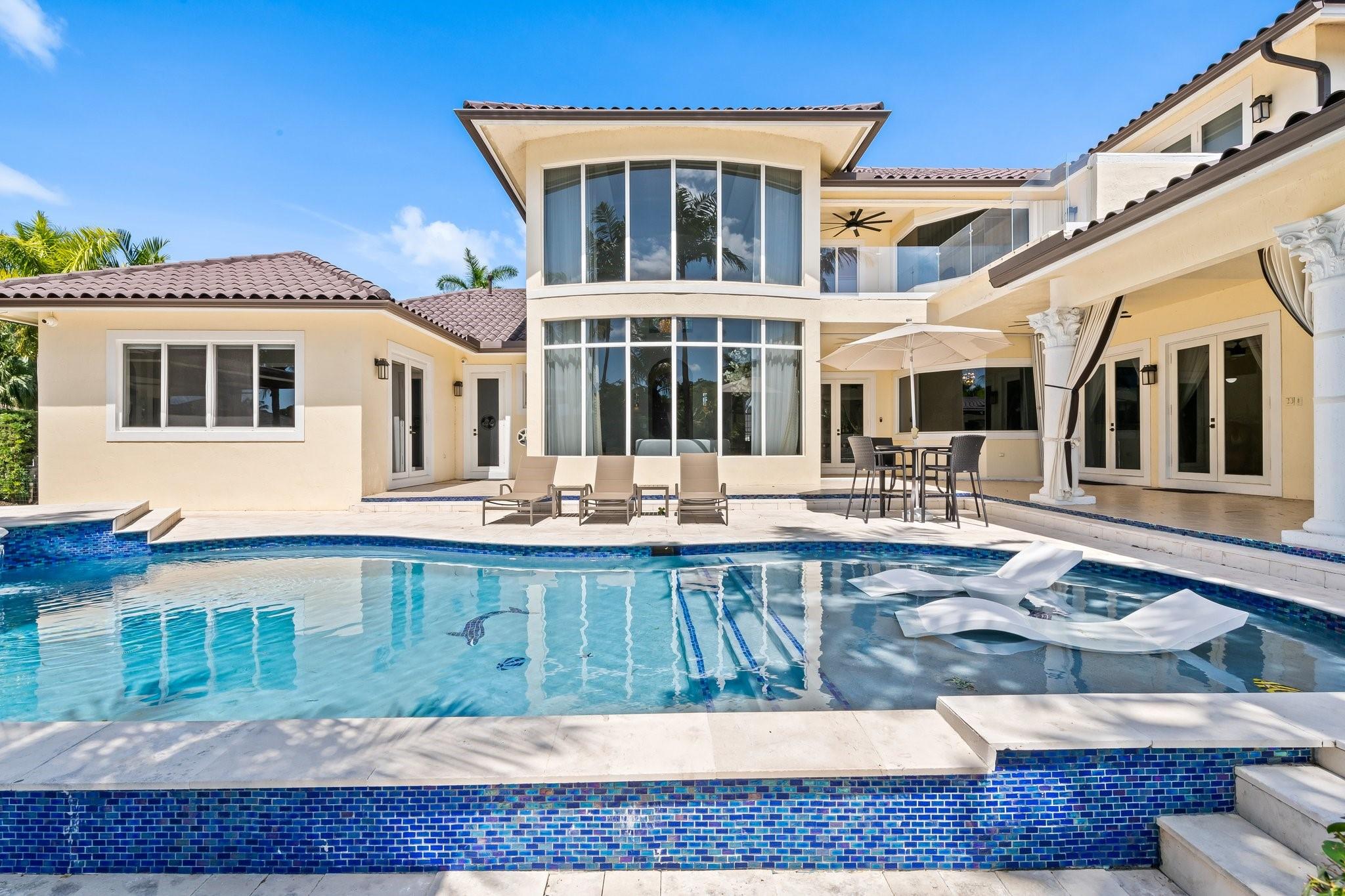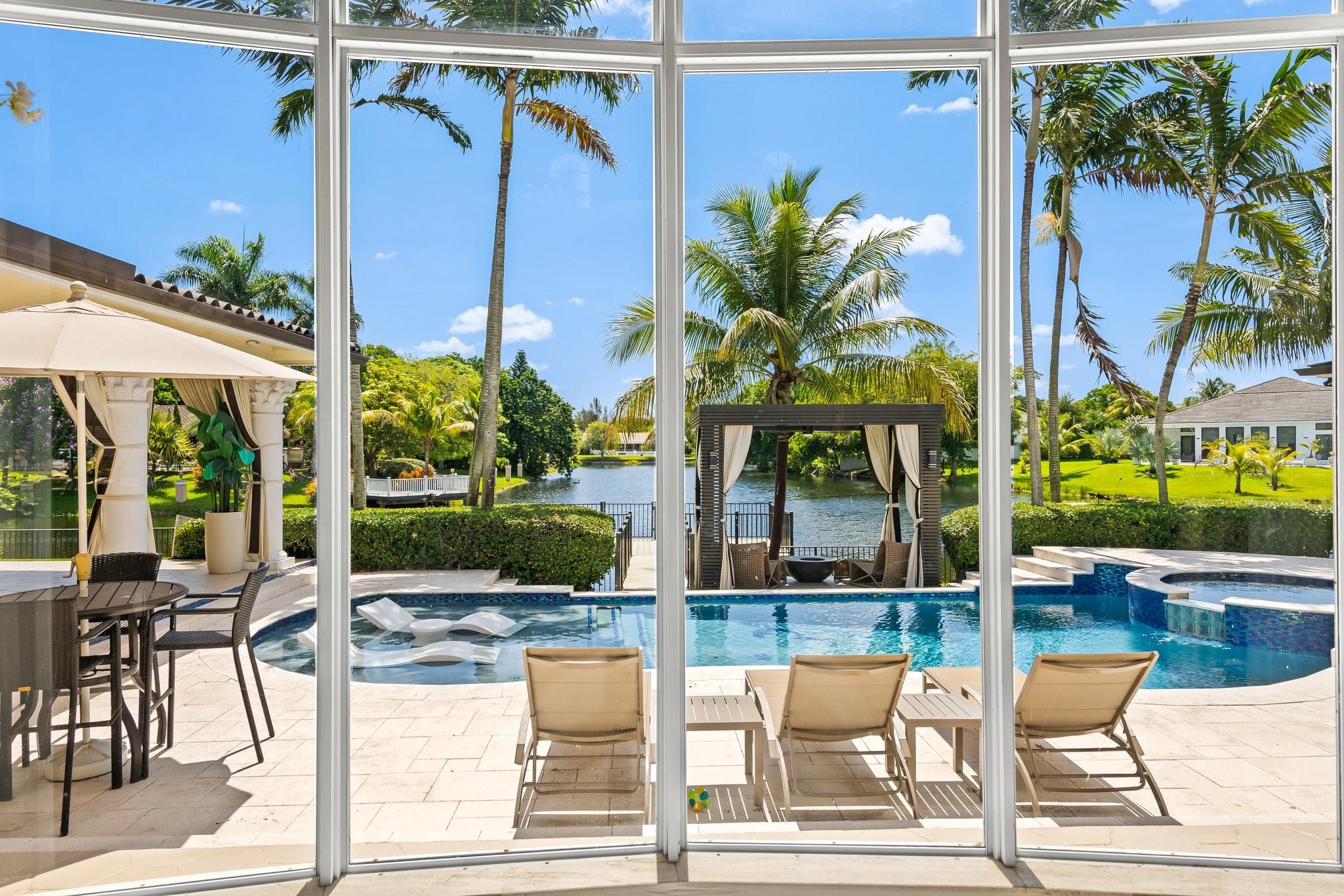 Fully renovated in 2022, this custom luxury residence blends timeless elegance with modern comfort. Set on a serene lake, it features a newly redone pool and a lush backyard with a covered patio—ideal for relaxing or entertaining. Inside, the designer-decorated interior includes impact windows, a gourmet kitchen with new high-end appliances, and marble floors throughout. Custom built-ins and French doors offer seamless indoor-outdoor living. The layout features 5 bedrooms on the main floor, while the expansive upstairs primary suite offers a private balcony and attached den. A crystal chandelier highlights the grand foyer with refined style. Additional features include an automatic generator, new roof, and upscale finishes throughout—crafted for the most discerning buyer.