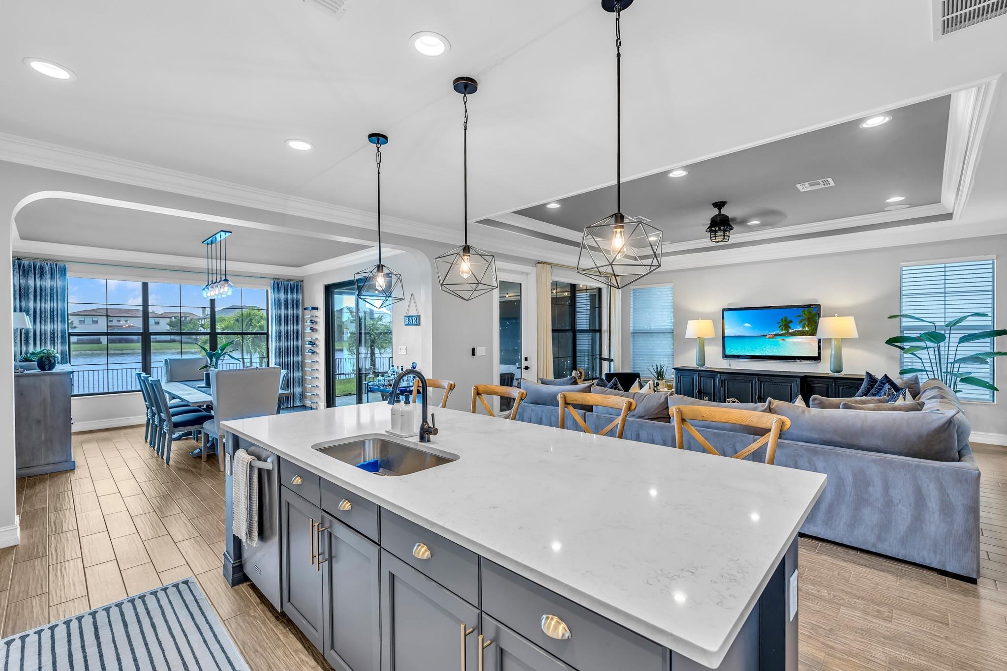 Your dream home awaits! This beautifully appointed 4-bedroom, 2.5-bath offers the perfect blend of luxury, comfort, and breathtaking lake views. Step inside to an open-concept layout filled with natural light, high ceilings, and elegant finishes throughout. The gourmet kitchen features quartz countertops, stainless steel appliances, double oven, gas stove and a huge island to sit and entertain. Enjoy serene water views from your family room, dining room, primary suite, & covered patio where your private backyard oasis awaits, with plenty of room to relax, dine, or even add a pool. Large master with a spa-like bath, walk-in closets, impact windows, and a two-car garage. Located in a gated community with top-rated Parkland schools, resort-style amenities.
