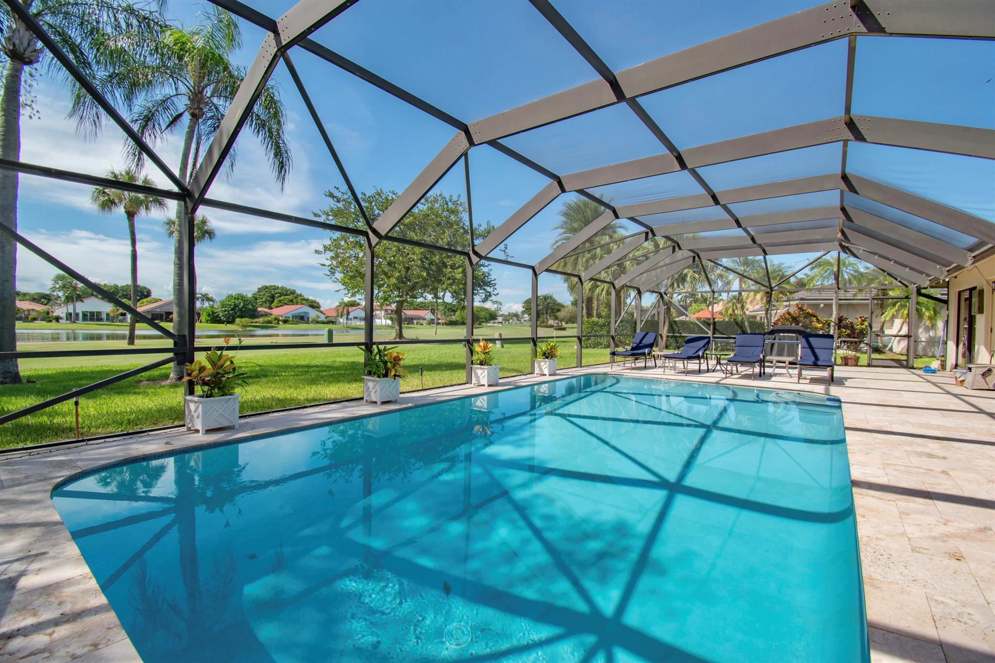 Country Club Living at its Finest! Boca Woods Country Club features 2 championship golf courses, tennis courts, pickle ball, bocce ball, community pool, and state of the art fitness center, a salt room, steam room, hair stylist, and nail care without leaving the Community! Full service dining room with valet parking. This tastefully updated 3 bedrooms, 3 bathrooms, comes with 2 golf carts. Interior is newly painted with an updated kitchen and updated bathrooms. The yard features an expanded patio with marble pavers and private pool with an exceptional lake and golf course view, not to mention the magnificent sunsets! Schedule your showings today!Mandatory membership $120,000.