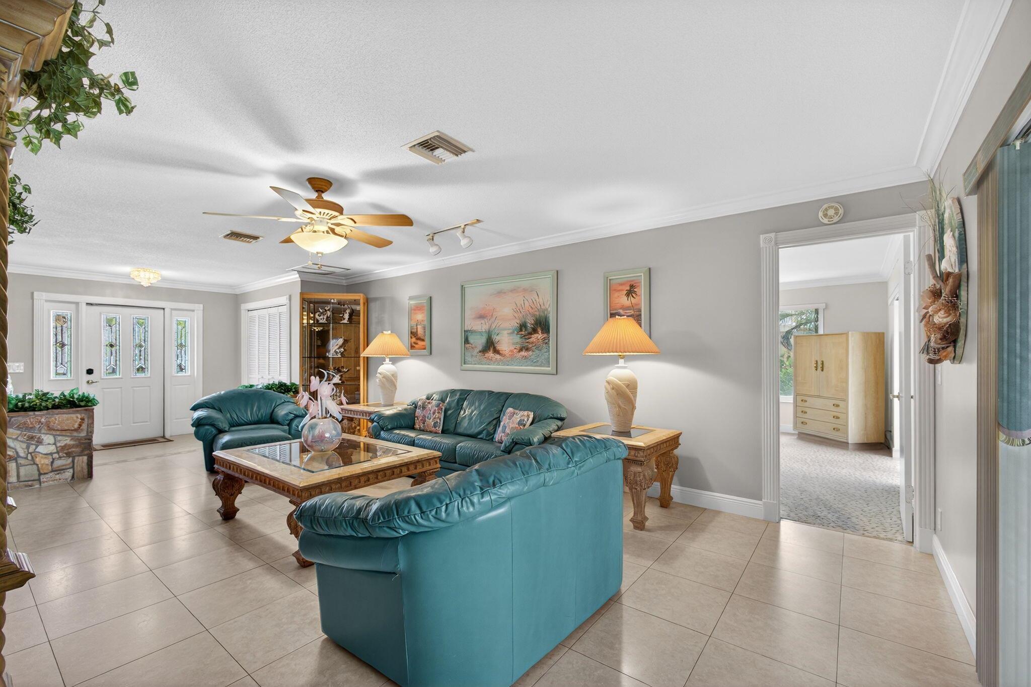 Spacious lakefront ranch home in a gated community with large, oversized rooms filled with abundant natural light The gourmet kitchen boasts granite counters and opens to a family room with a cozy fireplace. Conveniently located off the family room is a massive bonus/great room--perfect for entertaining. Enjoy serene water views, a sparkling pool, and a custom outdoor bar perfect for gatherings. Additional features include tons of large closets throughout and a circular driveway for added curb appeal. The ROOF was re-done in 2022 and the home is secure with impact windows and doors. This home has it all--comfort with space to live and entertain plus the low HOA dues make this home a rare find! CHECK OUT THE 3D WALK THRU.