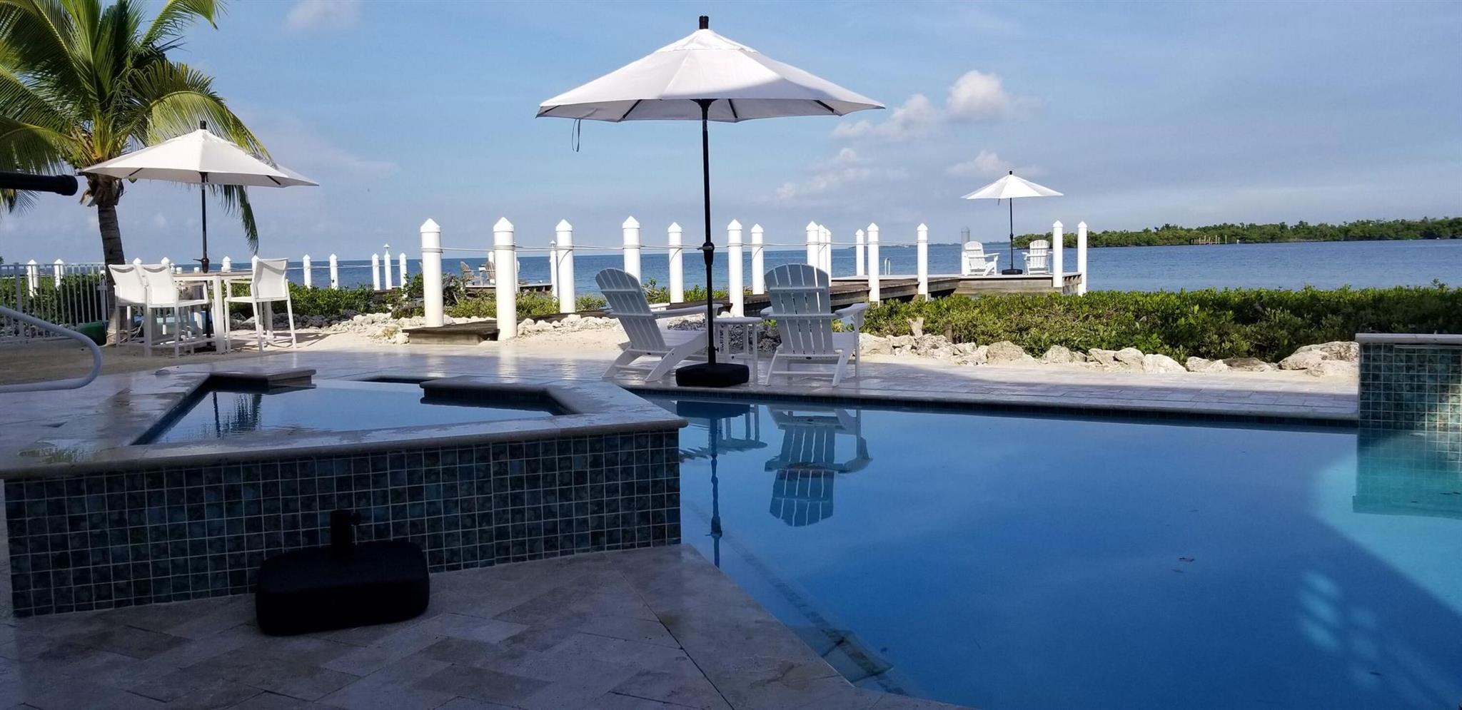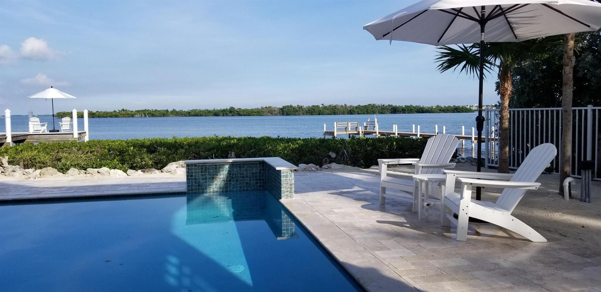 For Sale by Owner/agent & priced below market value! Discover your dream waterfront lifestyle on an expansive 13,135 sq ft lot with breathtaking open water views. This 4-bed, 2.5-bath plus loft home offers 3,260 sq ft of luxury. Built in 2018, it features superior CBS construction, a metal roof, and impact windows, all elevated 11 ft above sea level. Your backyard oasis includes a sandy beach/yard, travertine deck, pool, and jacuzzi. Plus, a permitted plan (a $100k value) is ready for a 20K lb boat lift, 2 jet ski lifts, and 60 ft yacht pilings. A separate marina deeded dock can be included in the sale for an additional $150K - 12ft wide, 20 ft long, useful up to 9.5 ft beam Located in the exclusive gated community of Stirrup Key
