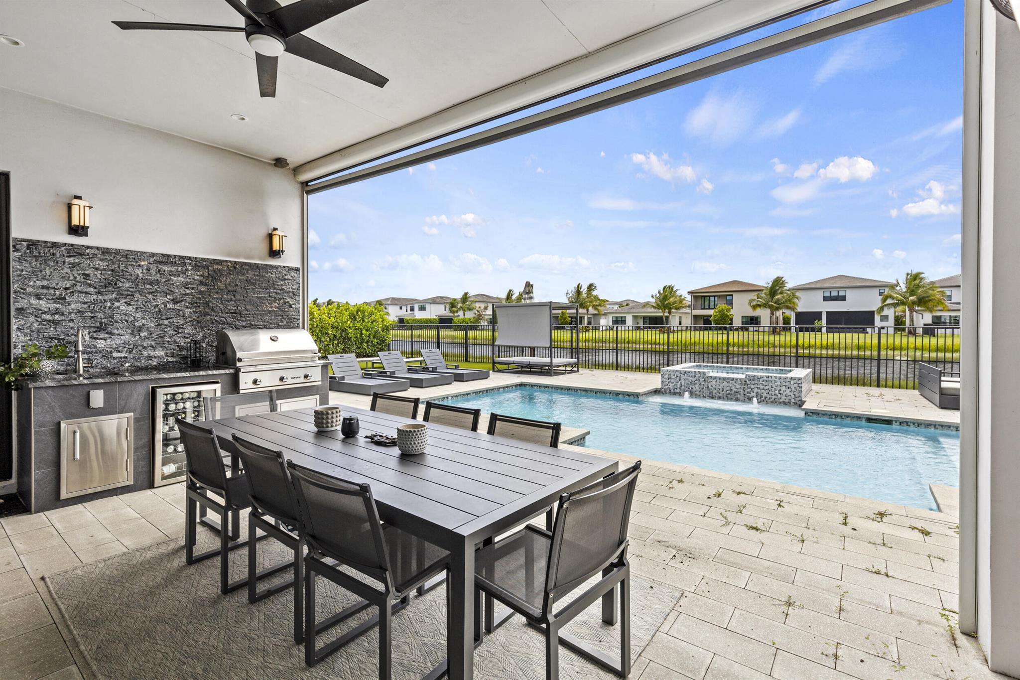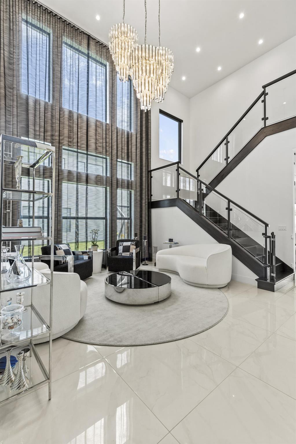 WOW! WOW! WOW! Luxury living in LOTUS. Step into this exquisite designer residence where every detail has been carefully curated for modern luxury living. Tucked on a premium lot with an expansive fully turfed side yard, this home offers a true indoor-outdoor lifestyle with an inground pool, spa Jacuzzi, and outdoor kitchen, all framed by a sleek patio with electric screen--perfect for year-round entertaining.Inside, discover 5 spacious bedrooms and 6 full bathrooms (with the 7th bathroom thoughtfully converted into an additional custom walk-in closet). A dramatic glass staircase leads to a loft enclosed with frameless glass sliders, offering a versatile space for office, lounge, or playroom.