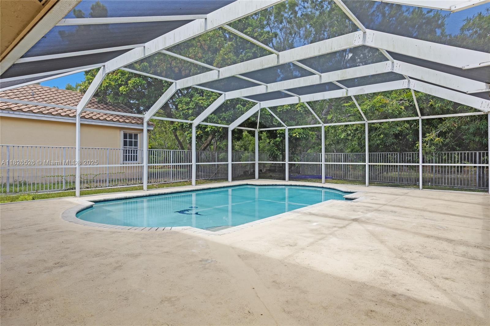 Spacious home in THE LAKES, Weston's Premier Guard-gated community. Incredible layout for a single-story home with 4 bedrooms and 2.5 bathrooms, and nearly 2,500 square feet of air conditioning. Tile flooring throughout the main areas is complemented by warm wood floors in the bedrooms. This house also has a wonderful screened pool next to a canal that exudes tranquility and comfort. Garage for two cars. Accordion Shutters throughout the entire house. New air conditioning unit.