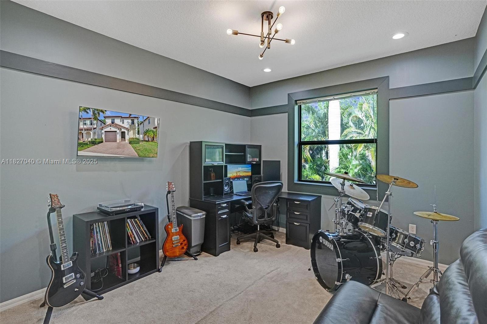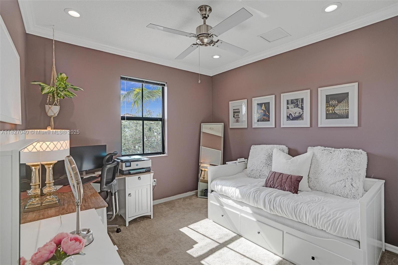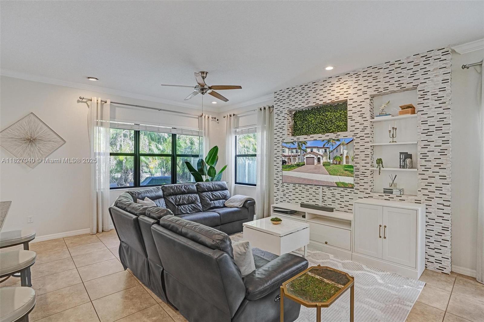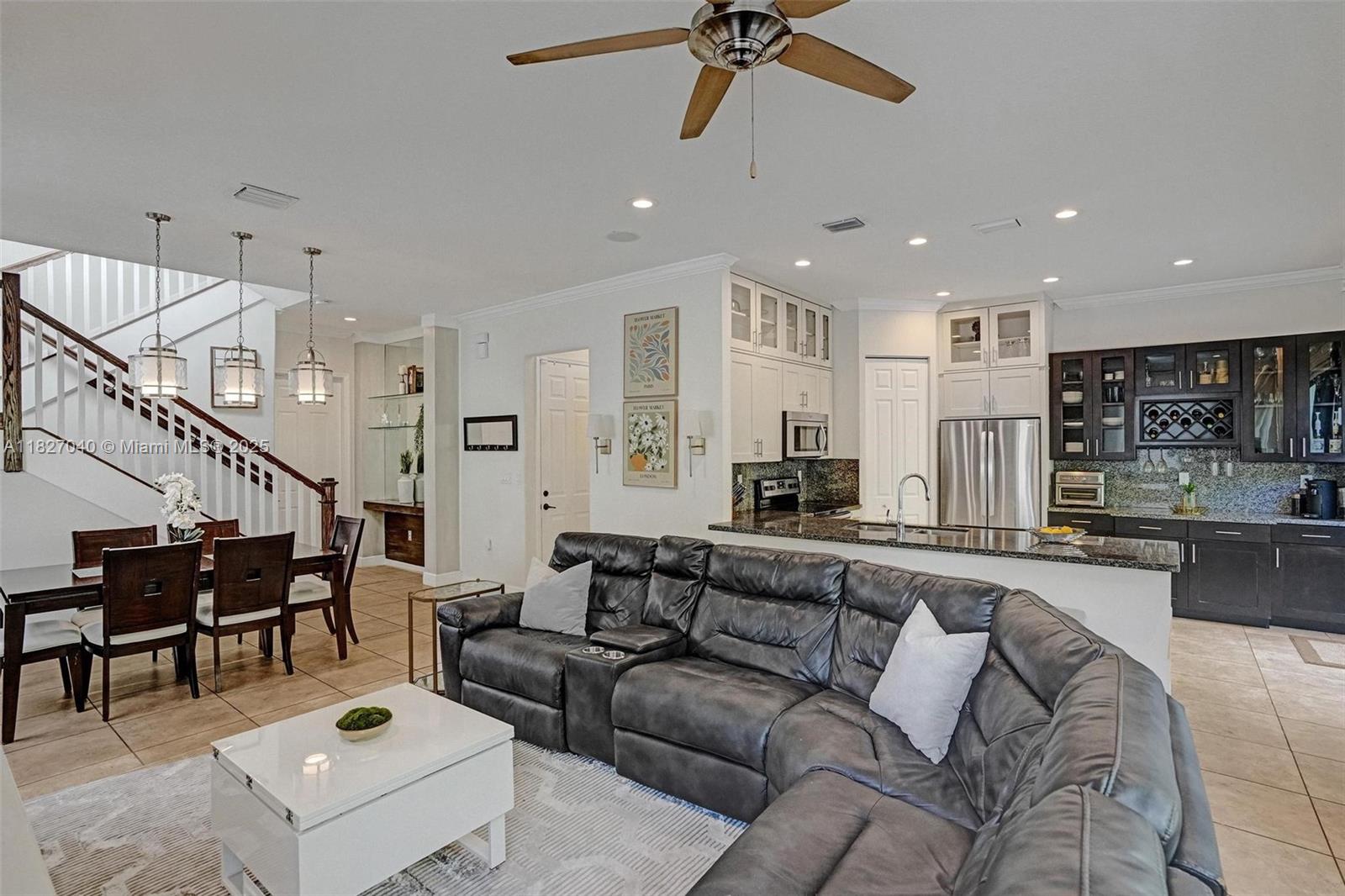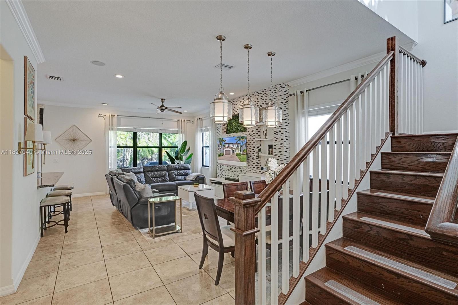 Builder spec model’s premium location edge of cul de sac, impact windows and doors, 10’ ceilings, crown molding, dimmable skylights, and custom kitchen are just a few features differentiating this home from its neighbors in the gated Foxcroft community. New A/C, electric car charger with adaptor to charge any electric car, spacious open floor plan and kitchen with top of the line cabinetry, self-closing drawers, built in counter/bar make this is the place to call home. Flooring is tile downstairs, real wood on stairs and upstairs common area, carpet in bedrooms. Peaceful fenced-in backyard oasis with paved patio. Foxcroft is centrally located near major highways, schools, with community pool.
