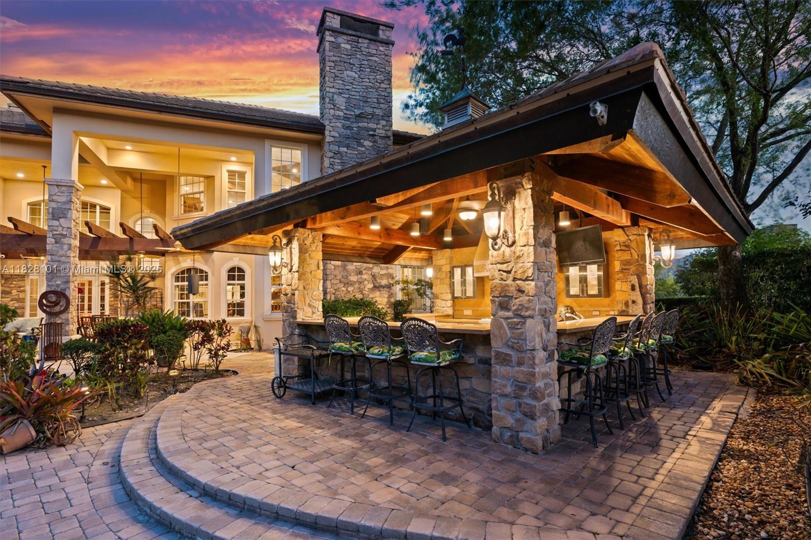 This custom French Country home on a builder’s acre with water frontage is in Davie’s secluded gated Grand Oaks Estates. Hurricane infrastructure includes whole house new 48KW generator/1,000-gal tank, impact doors and windows; also NEW AC'S and Water heater. It features: 5 ensuite BRMS; office; loft; 5.5 baths; 20’ ceilings; 2 gas/wood FirePLs; hardwood South FL Pine, Tigerwood, Marble, and Jerusalem stone floors. Chef’s kitchen and custom bistro bar with brick accents, 2 ovens, 3 wine frigs, and Thermador gas cooktop/grill. In-law suite has a private alarmed entry, kitchen, cabana bath and Murphy bed. Enjoy lush landscaping, resort-style pool with waterfall spa, full summer kitchen with a separate 250-gal tank for the BBQ, cooktop, and fireplaces. Local equestrian availability.