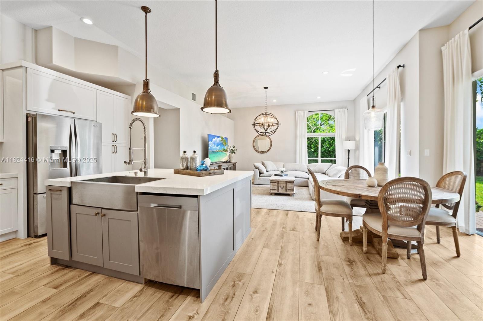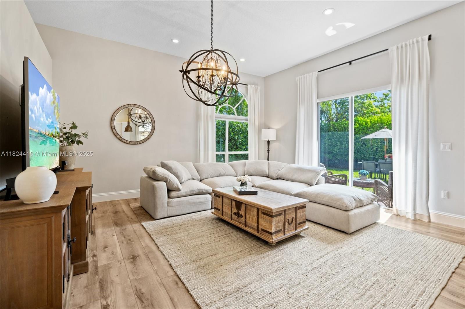 PRICE CUT!! Model-perfect Yale in the highly desirable gated community of Pembroke Falls! This fully renovated 4BD/3BA one-story home features a (3) car garage, 2022 roof, engineered wood floors, and a sought-after triple-split floor plan. The gourmet kitchen is a showstopper with quartz counters, gas stove, stainless steel appliances, and open-concept flow. Designer touches throughout. Enjoy a private outdoor space with plenty of room for a pool, sprinkler system, Resort-style amenities include 24hr security, clubhouse with gym, ballroom, pool, kids’ splash pool, tennis, pickleball, and basketball. HOA includes cable + fiber optic internet & alarm system. Prime location near I-75, top schools, lots of shopping, dining. Move-in ready luxury! Easy to show call today for private showing.