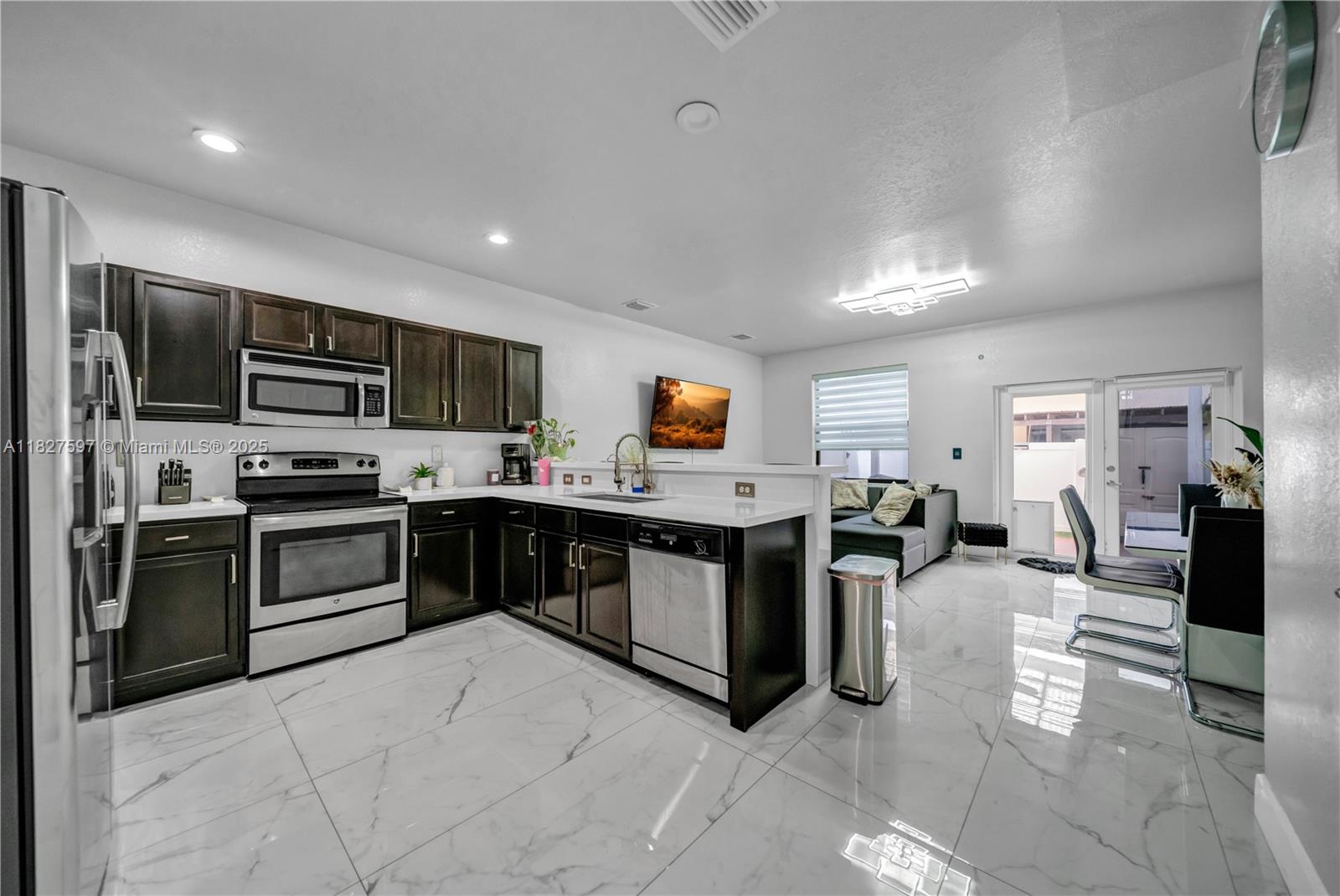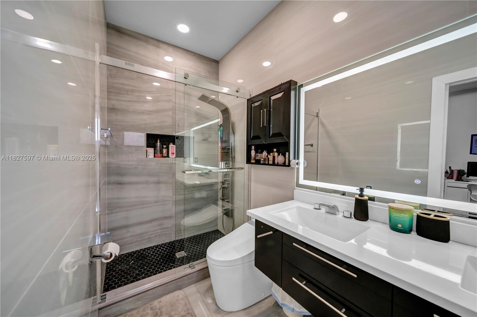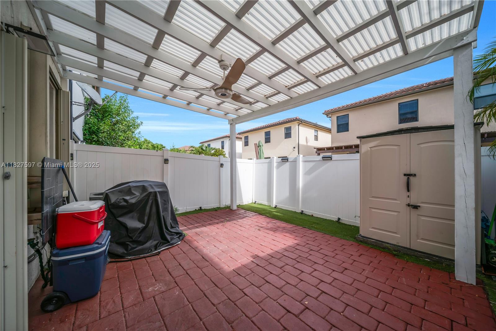 Over $40,000 in upgrades! Offering the best price and the best finishes currently on the market, this renovated townhouse has a flexible space can be used as a home office or guest room. Upstairs, each bedroom has its own full bathroom, including a primary suite with a custom-built walk-in closet, smart toilets and floor-to-ceiling ceramic tile. Features: porcelain tile flooring throughout the entire first floor, and waterproof vinyl flooring on the staircase and second level, NO carpet anywhere! The modern kitchen is renovated with quartz countertops, and SS appliances. covered pergola and an additional storage. in-unit laundry, hurricane shutters, and 2 assigned parking spaces. Community amenities: pool, gym, clubhouse, and playground. located near I-75, the Palmetto, top-rated schools