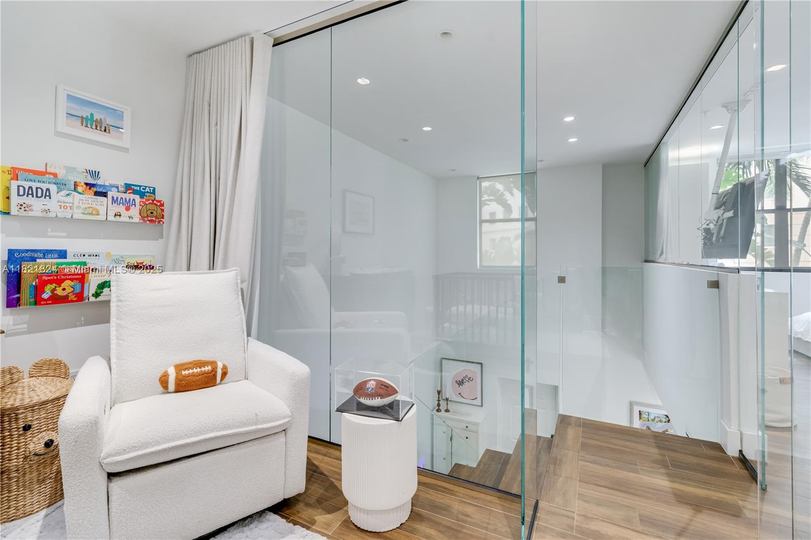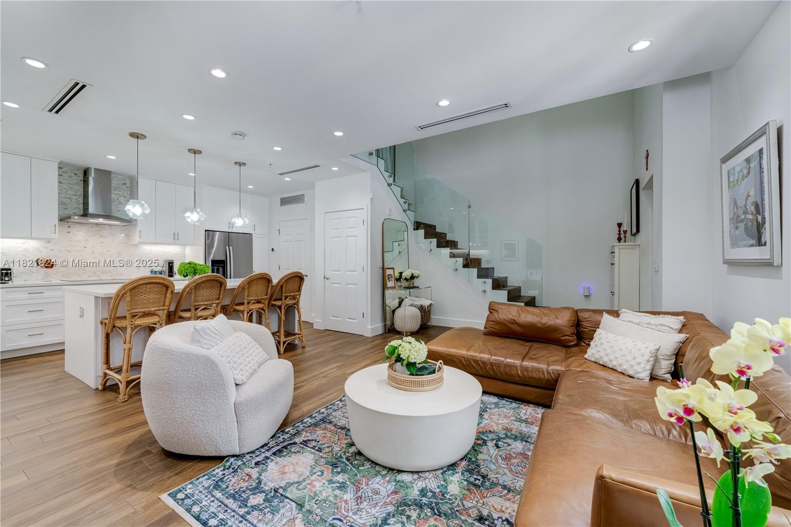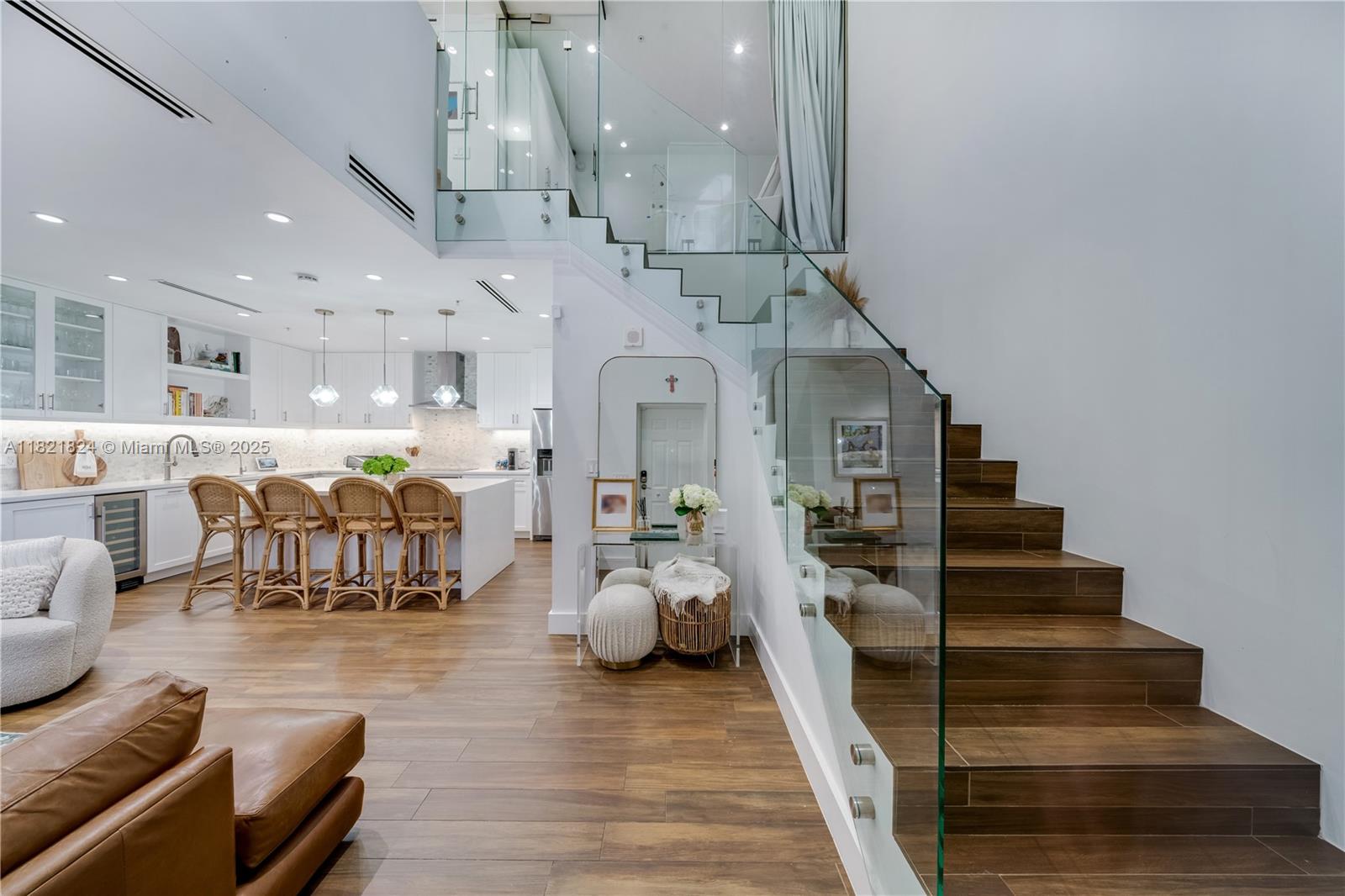Beautifully updated townhouse in the heart of the Gables! This stylish 1-bedroom, 1.5-bath home features a modern, crisp design with sleek finishes throughout. The contemporary glass stair railing and custom glass partition upstairs enhance both light and space, offering added privacy and versatility—currently used as a charming nursery. An ideal blend of function and design, this move-in-ready gem is perfect for anyone seeking sophisticated urban living just steps from the best of Coral Gables.