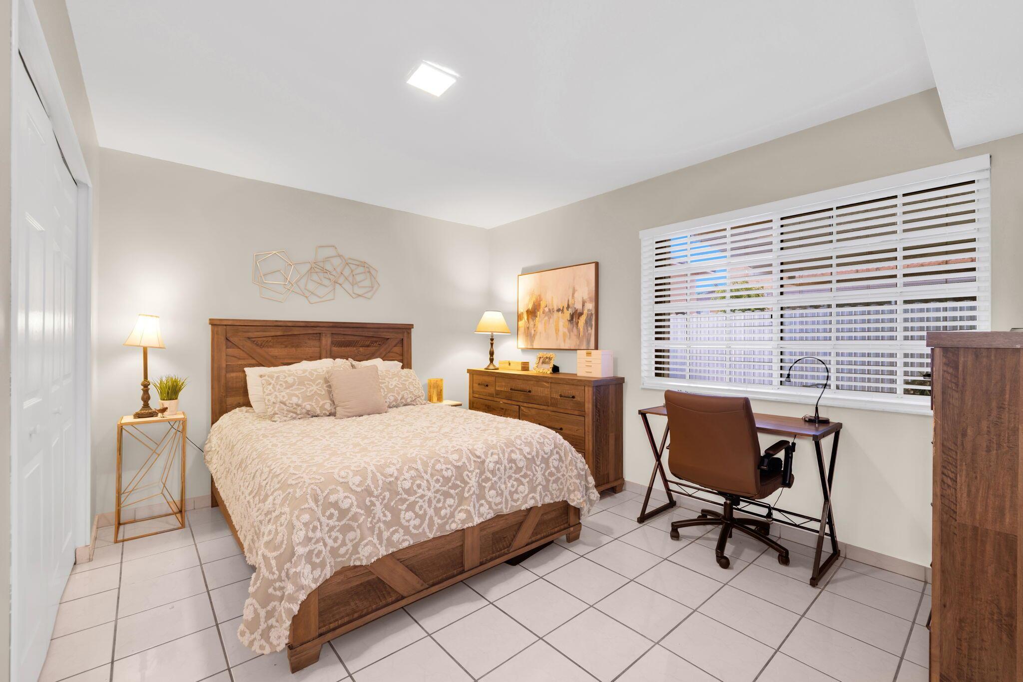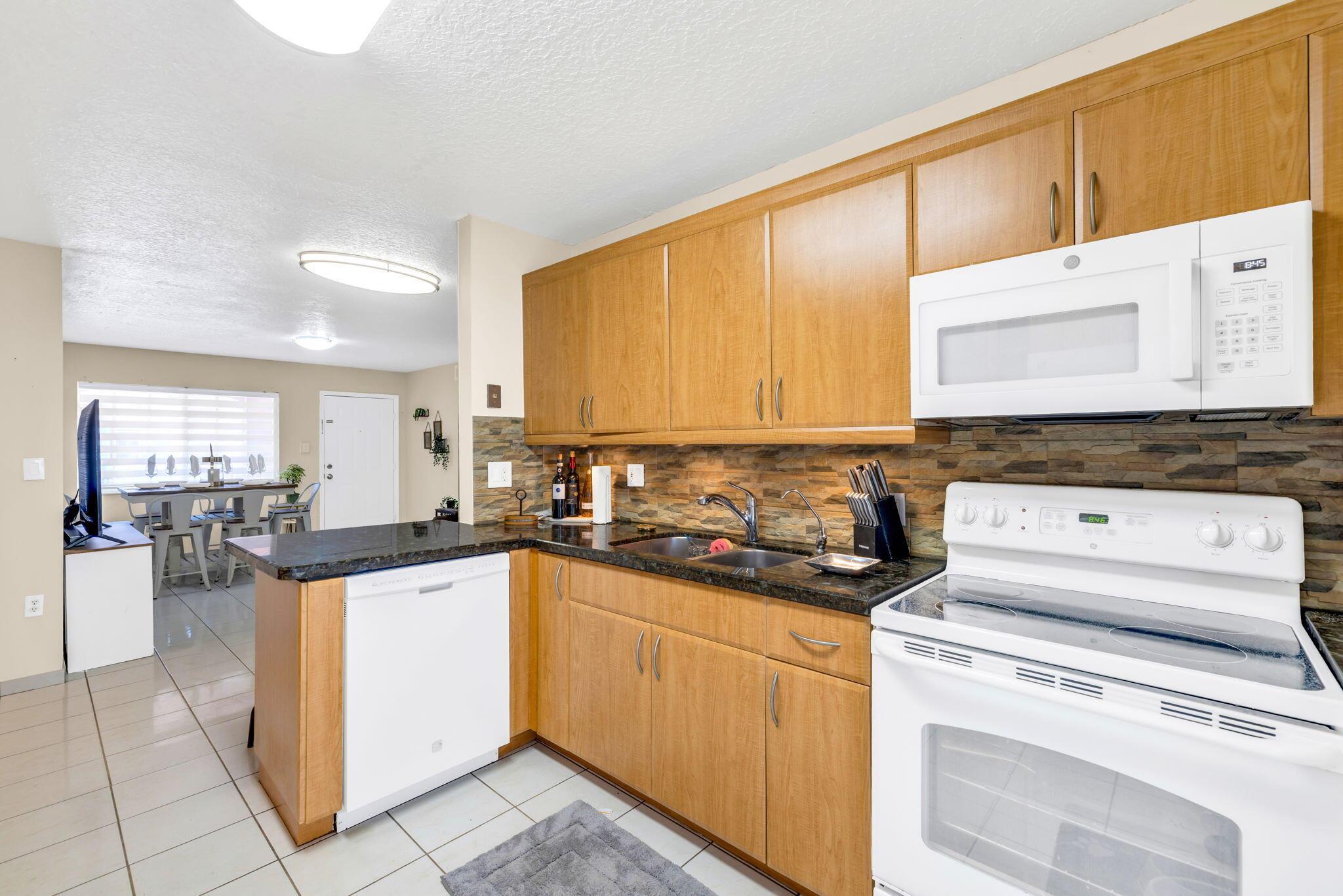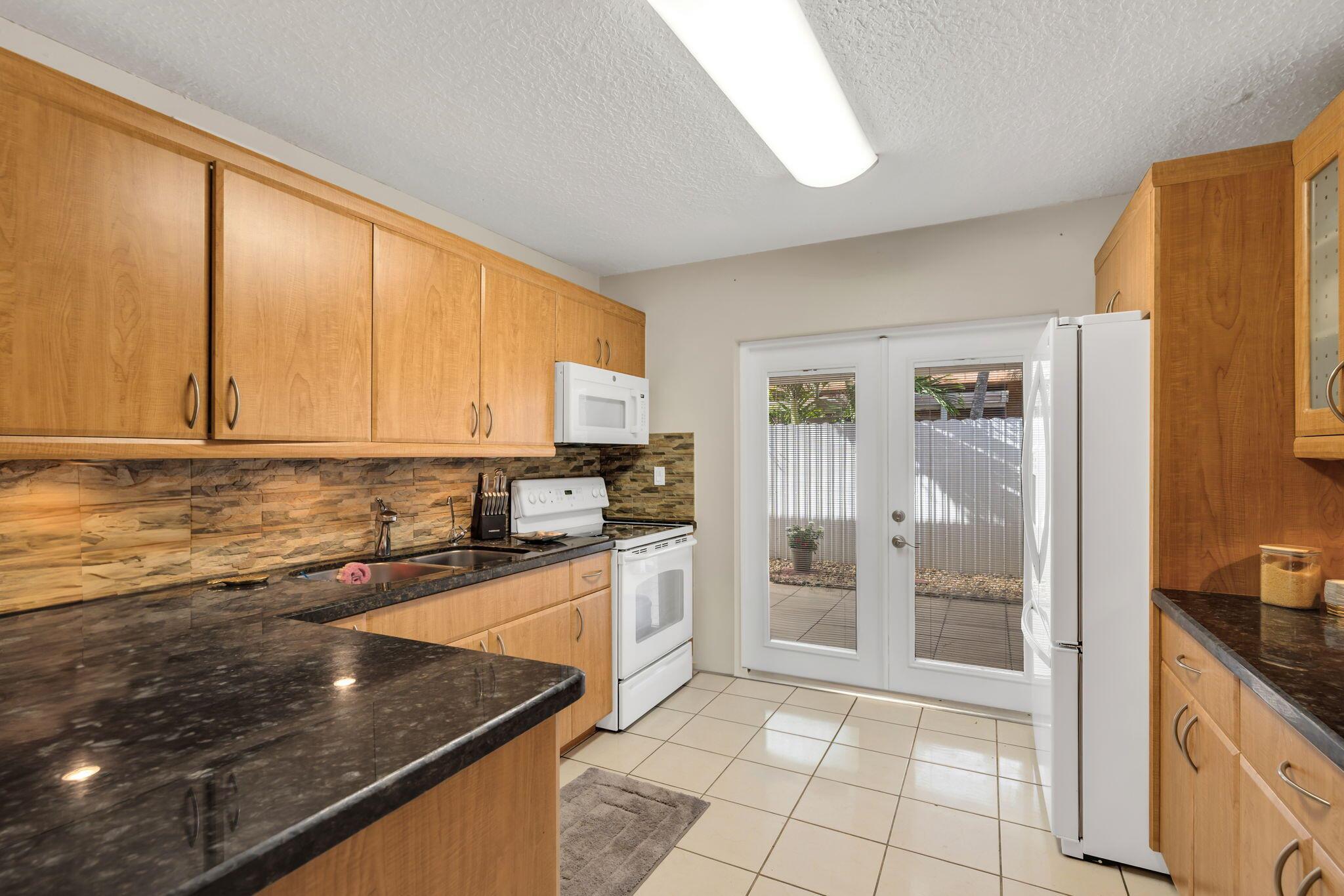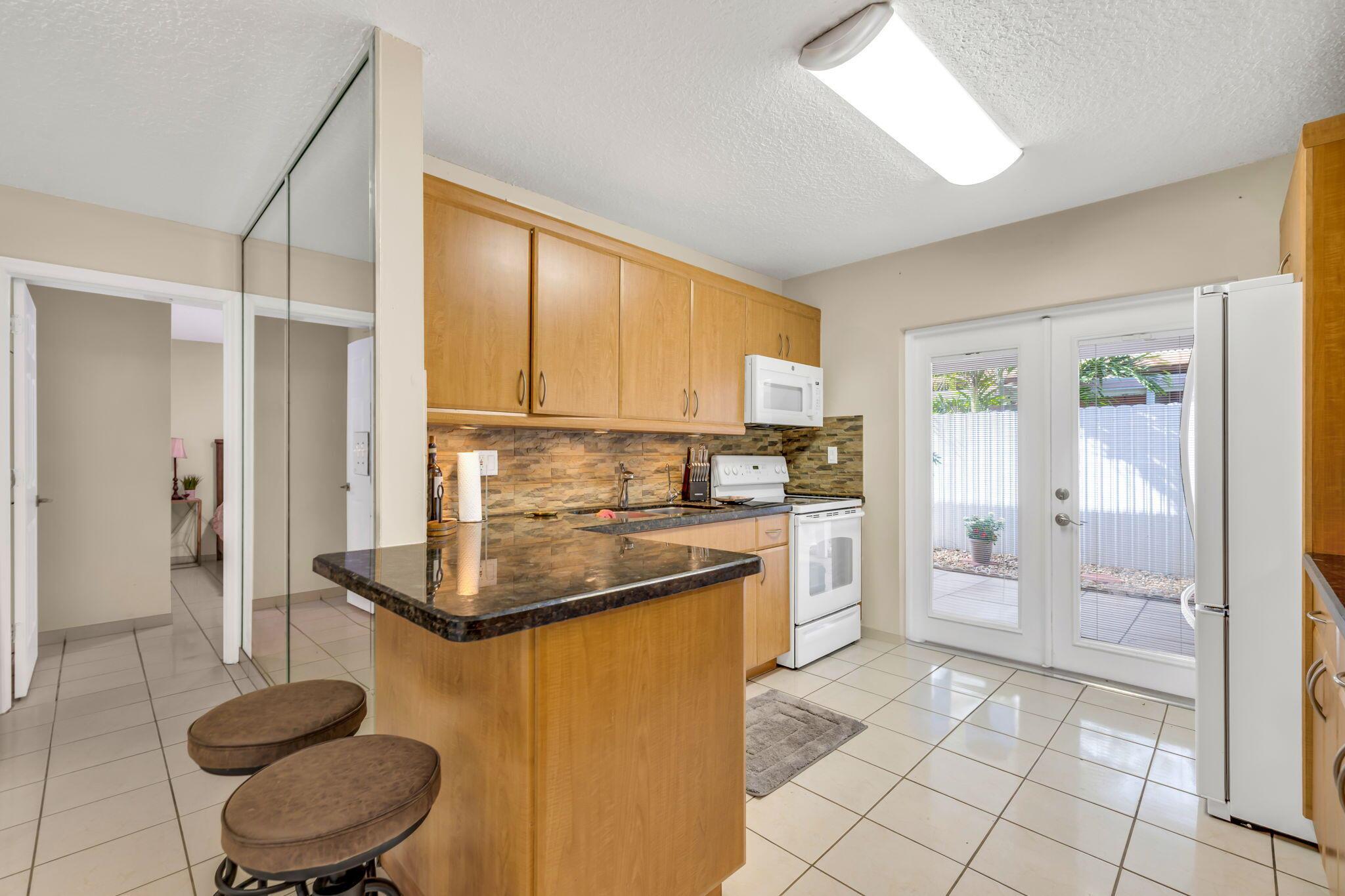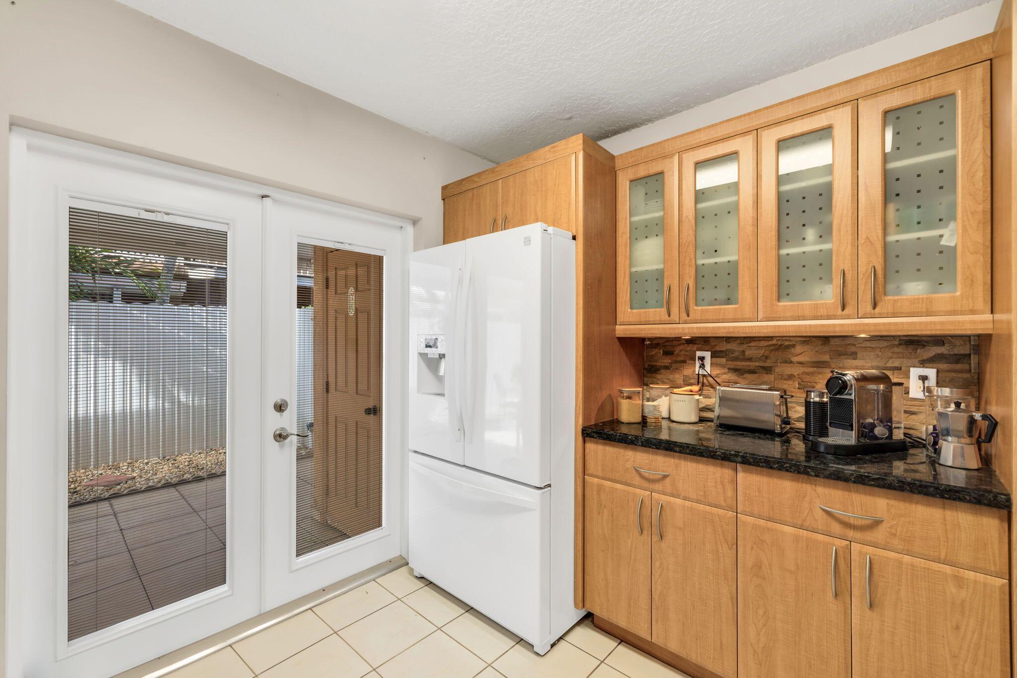 Excellent 2/2 well-maintained and move-in ready corner unit. Trendy and cute 2/2 with many extras. Boasts light finish built-in custom cabinetry throughout kitchen and dining areas, beautifully remodeled bathrooms, Indoor laundry room includes washer and dryer. Small office space, and extra indoor storage Spacious outdoor courtyard for entertaining. HOA fees include maintenance of common areas, lawn and exterior maintenance. 2 parking spaces, plus guest parking area. Small outside shed for extra outdoor storage. Accordion hurricane shutters on all windows.
