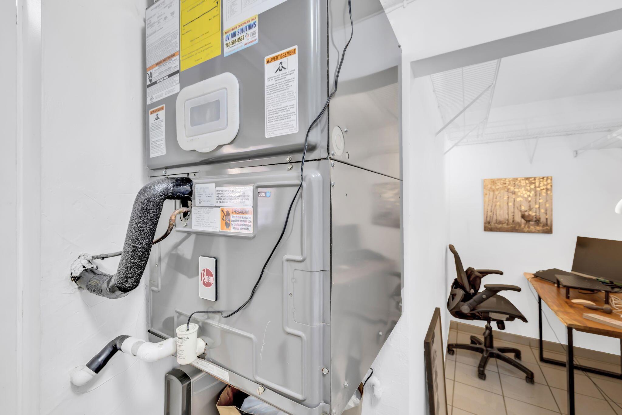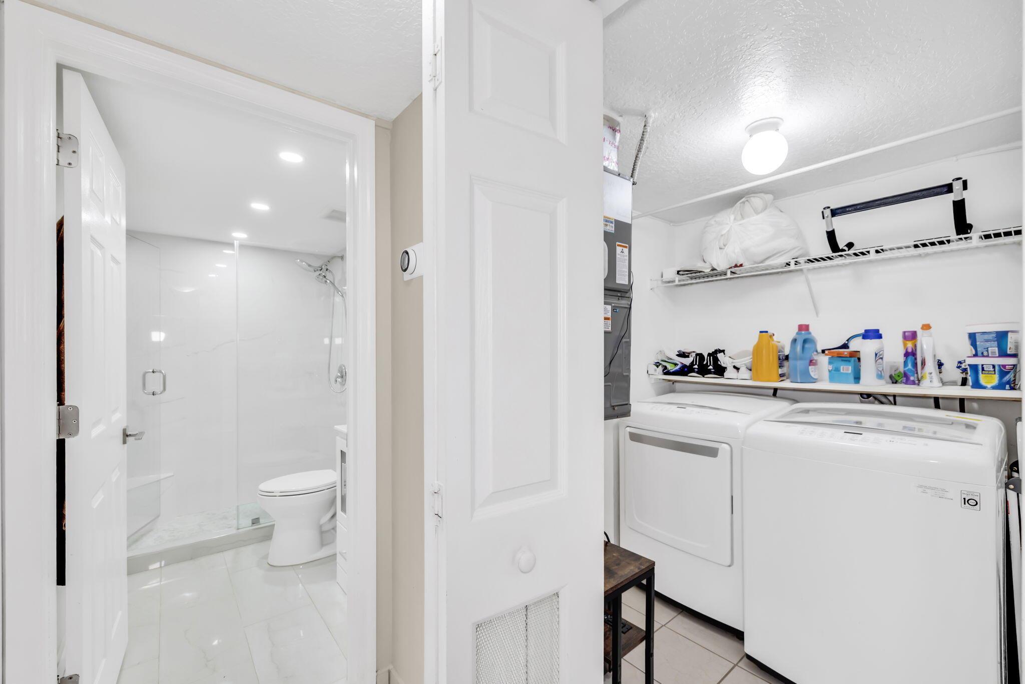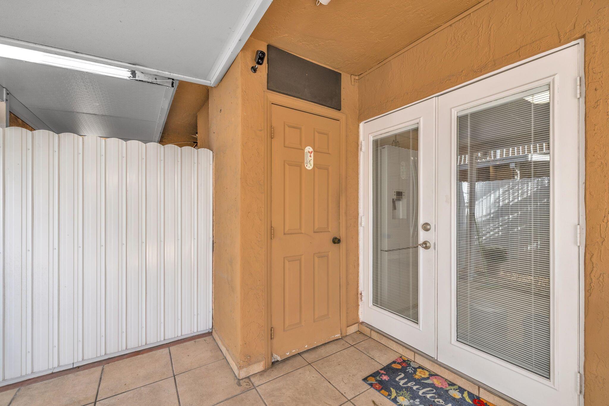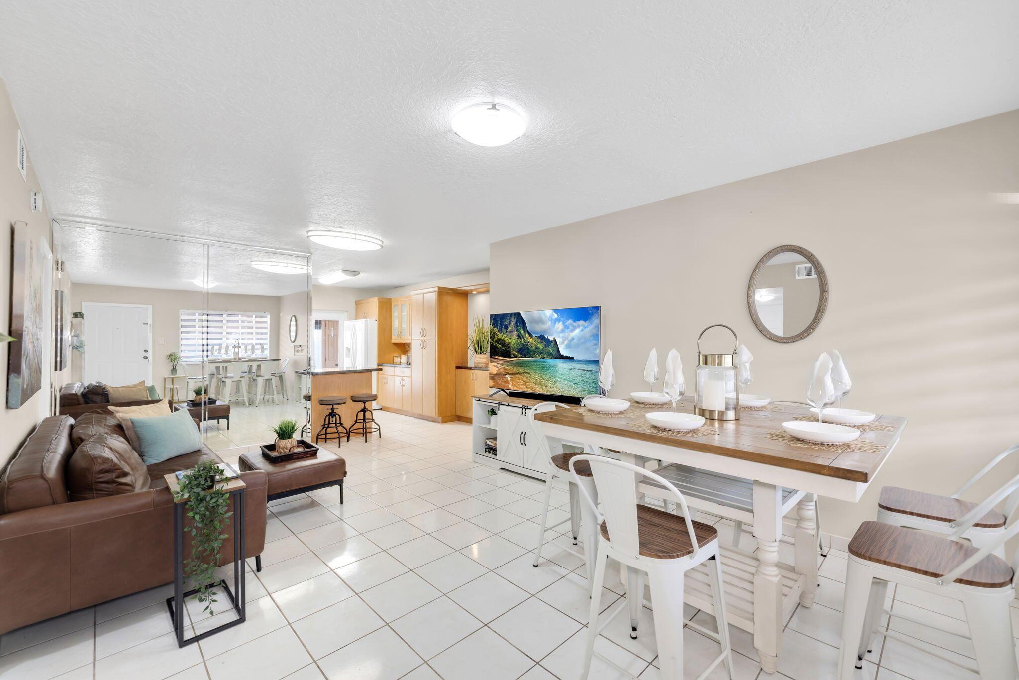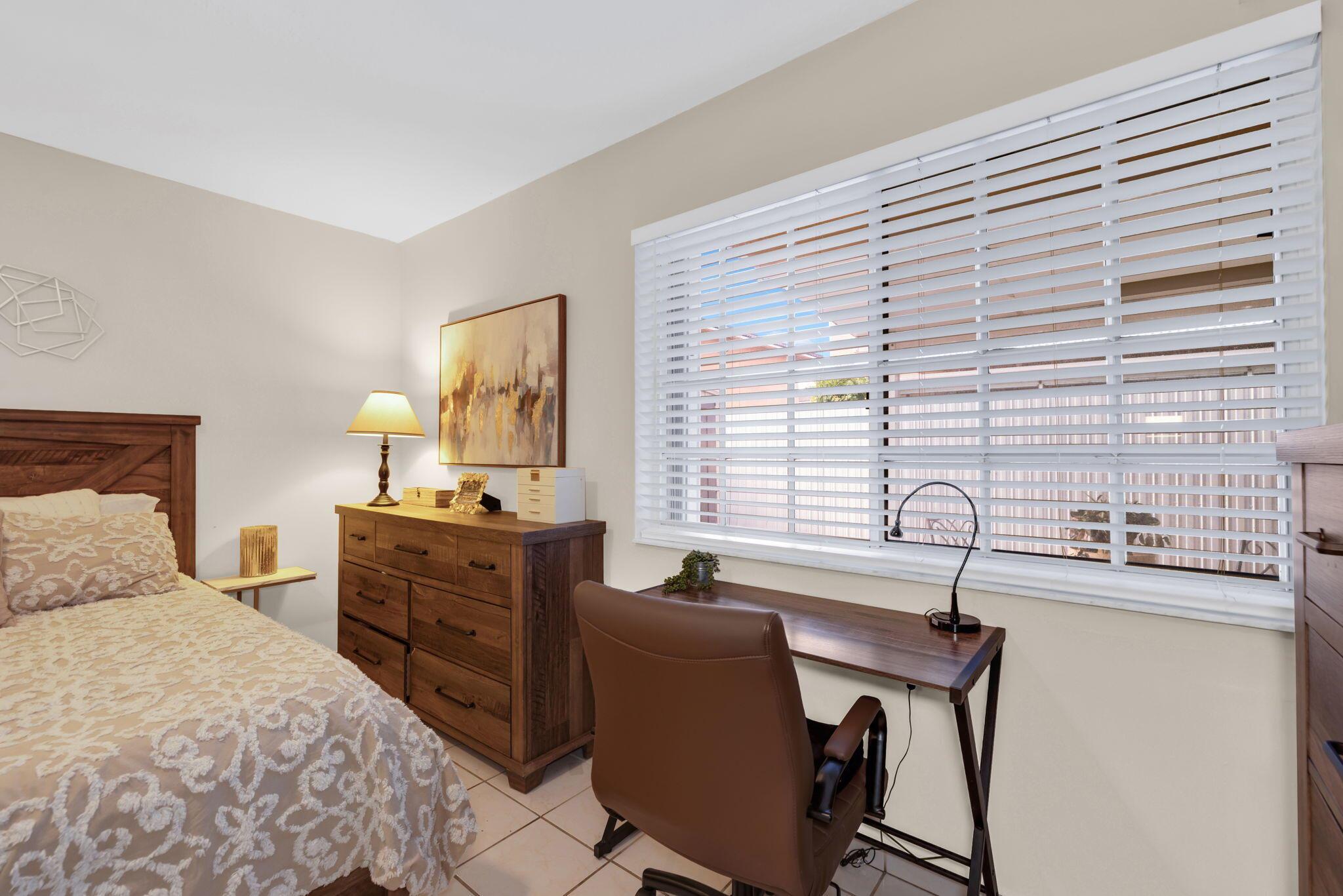 Excellent 2/2 well-maintained and move-in ready corner unit. Trendy and cute 2/2 with many extras. Boasts light finish built-in custom cabinetry throughout kitchen and dining areas, beautifully remodeled bathrooms, Indoor laundry room includes washer and dryer. Small office space, and extra indoor storage Spacious outdoor courtyard for entertaining. HOA fees include maintenance of common areas, lawn and exterior maintenance. 2 parking spaces, plus guest parking area. Small outside shed for extra outdoor storage. Accordion hurricane shutters on all windows.