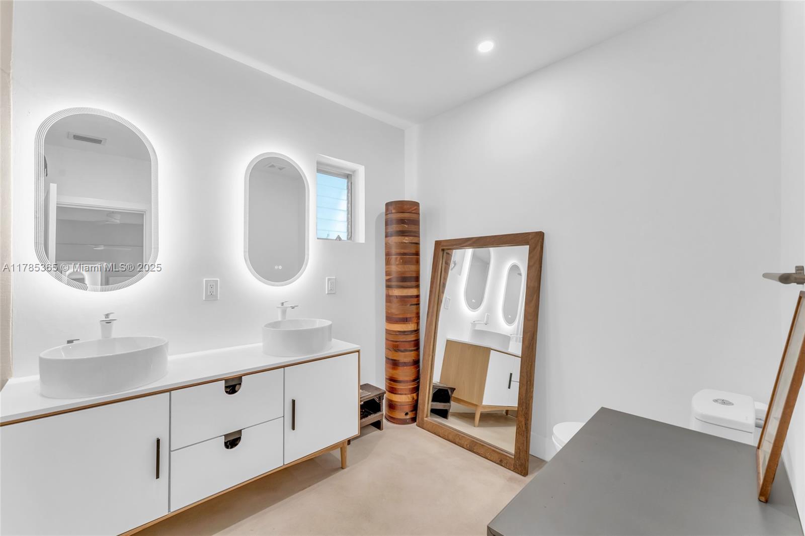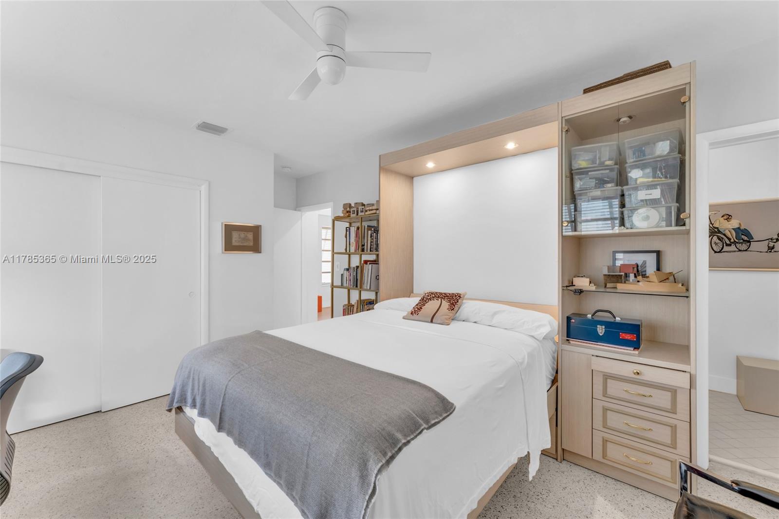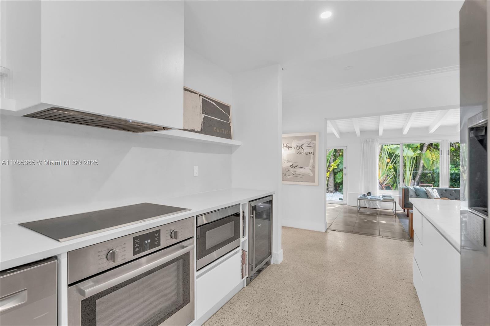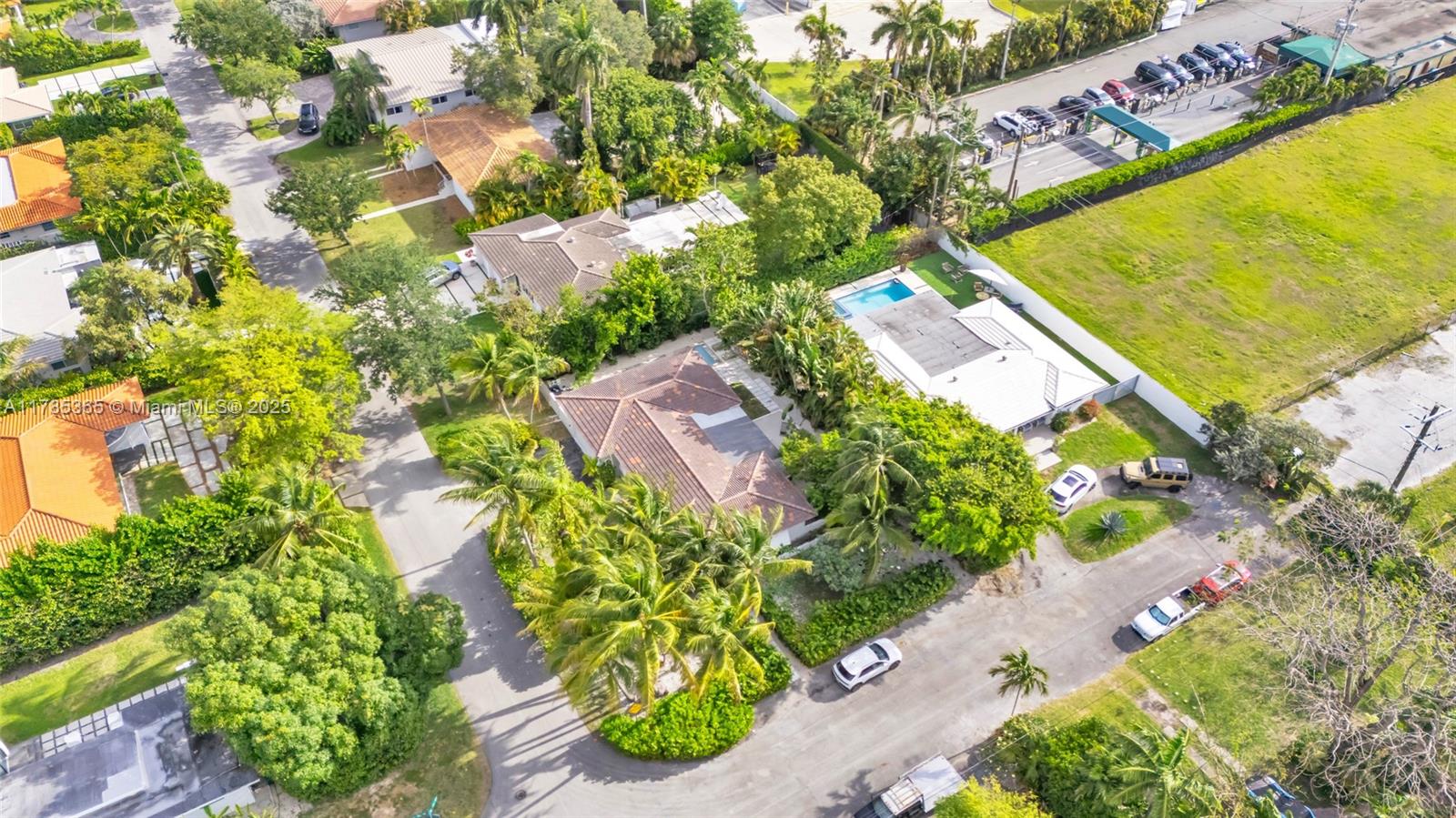 Architect-remodeled 2-bed, 3-bath home in Miami Shores Estates, set on a private corner lot at the end of two no-outlet streets. A peaceful retreat blending vintage charm and modern design, with original terrazzo floors, high-end finishes, and seamless flow to a lush garden with brand-new pool. The finished garage functions as an art studio/office. Corner lot allows for generous parking—2 spaces in front and 2–4 in the driveway. The kitchen features all new, high-end appliances. Every detail reflects thoughtful care. A rare and special home.