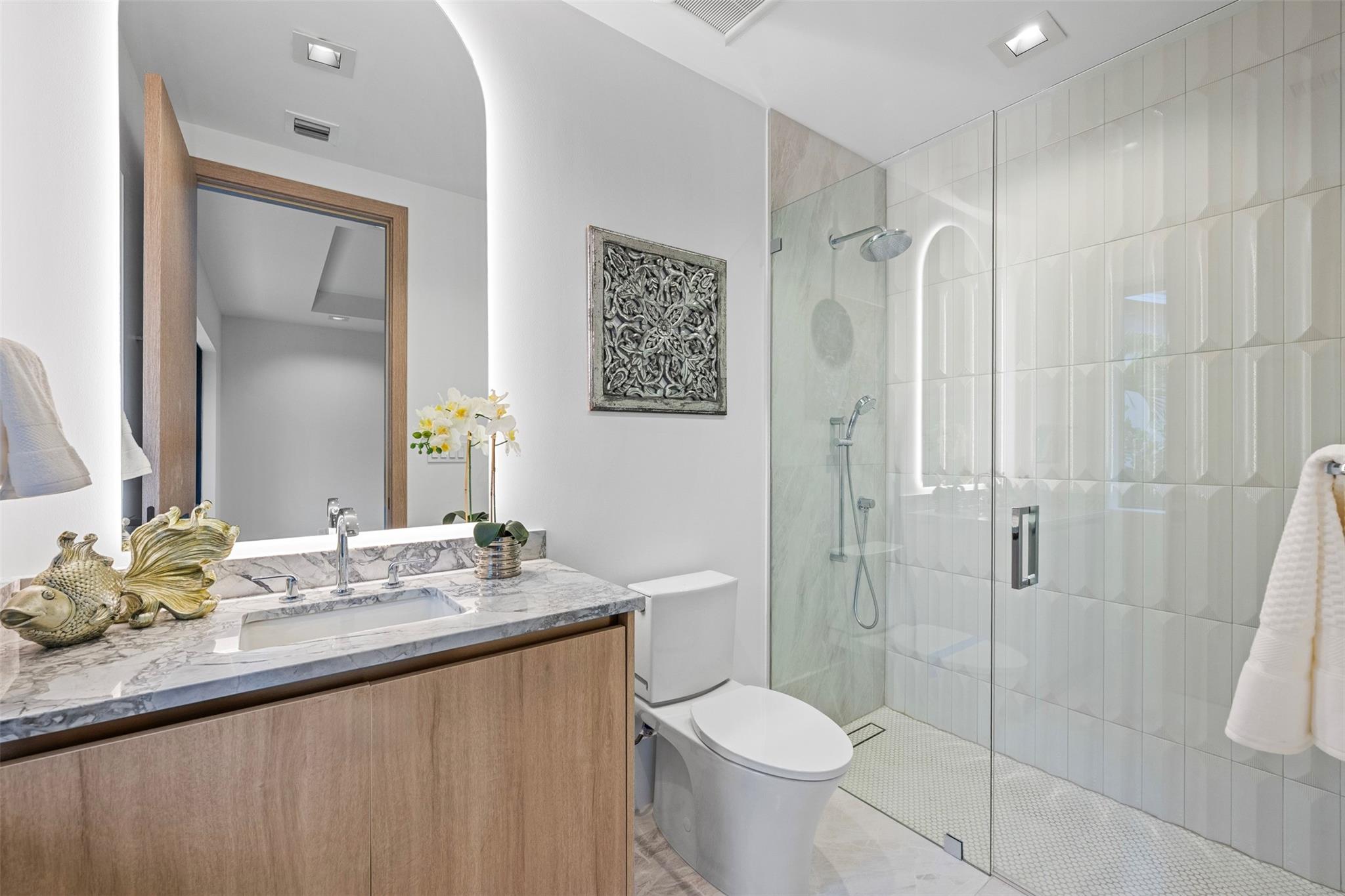 Discover this brand new (2025) single-story modern estate on a +/-15,000 sf lot, redefining Harbor Beach living in Fort Lauderdale’s most exclusive gated island community. Just a short walk to Fort Lauderdale Beach. This design offers unparalleled style, sophistication, and seamless indoor-outdoor living while preserving privacy behind a walled compound and gorgeous landscaping. The cutting-edge 4BR + ofc layout by Tuthill Architecture showcases sleek lines, expansive glass, transom windows and premium materials, creating coastal elegance and modern flair. Each guest bedroom includes an ensuite bath and opens to an outdoor paradise with a covered patio, summer kitchen, and pool. Enjoy the private Harbor Beach Surf Club with 300 feet of beach, boat docks, and more (non-mandatory HOA).