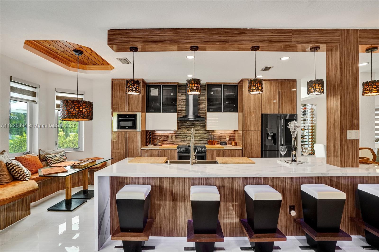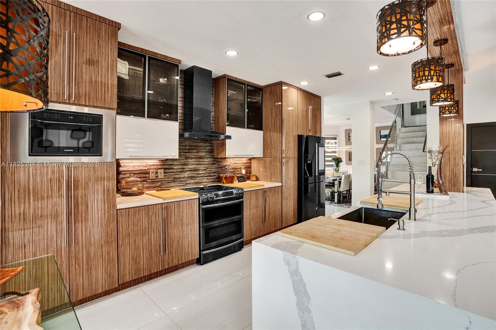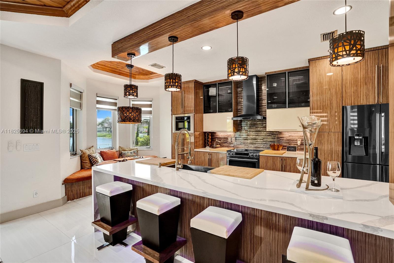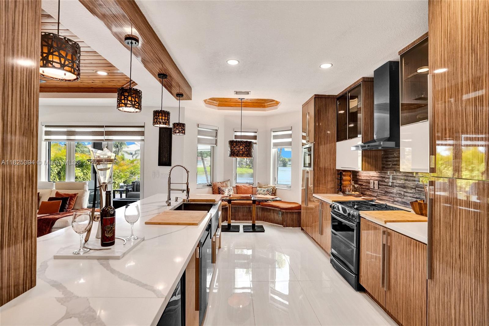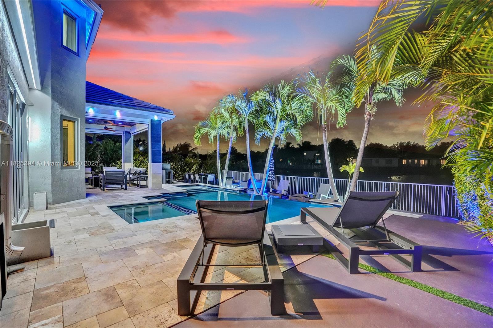 View this stunning & expansive 5-bed, 3-bath home w/ a dedicated office and is one of the largest models in this highly sought-after community, offering over 3,100 sq ft of fully renovated living space. Enjoy the peace of mind that comes with a brand-new roof and hurricane impact windows throughout. The open-concept design features a chef-inspired kitchen with quartz countertops, stainless steel appliances, and abundant cabinetry. The spacious master suite offers a serene retreat with a spa-like bath. Perfect for entertaining, the backyard oasis includes a heated pool and spa, outdoor kitchen, and peaceful lake views. A first-floor bedroom adds convenience and flexibility. Residents also enjoy access to a renovated clubhouse with a weight room and pool. A Home filled w/ Elegance.