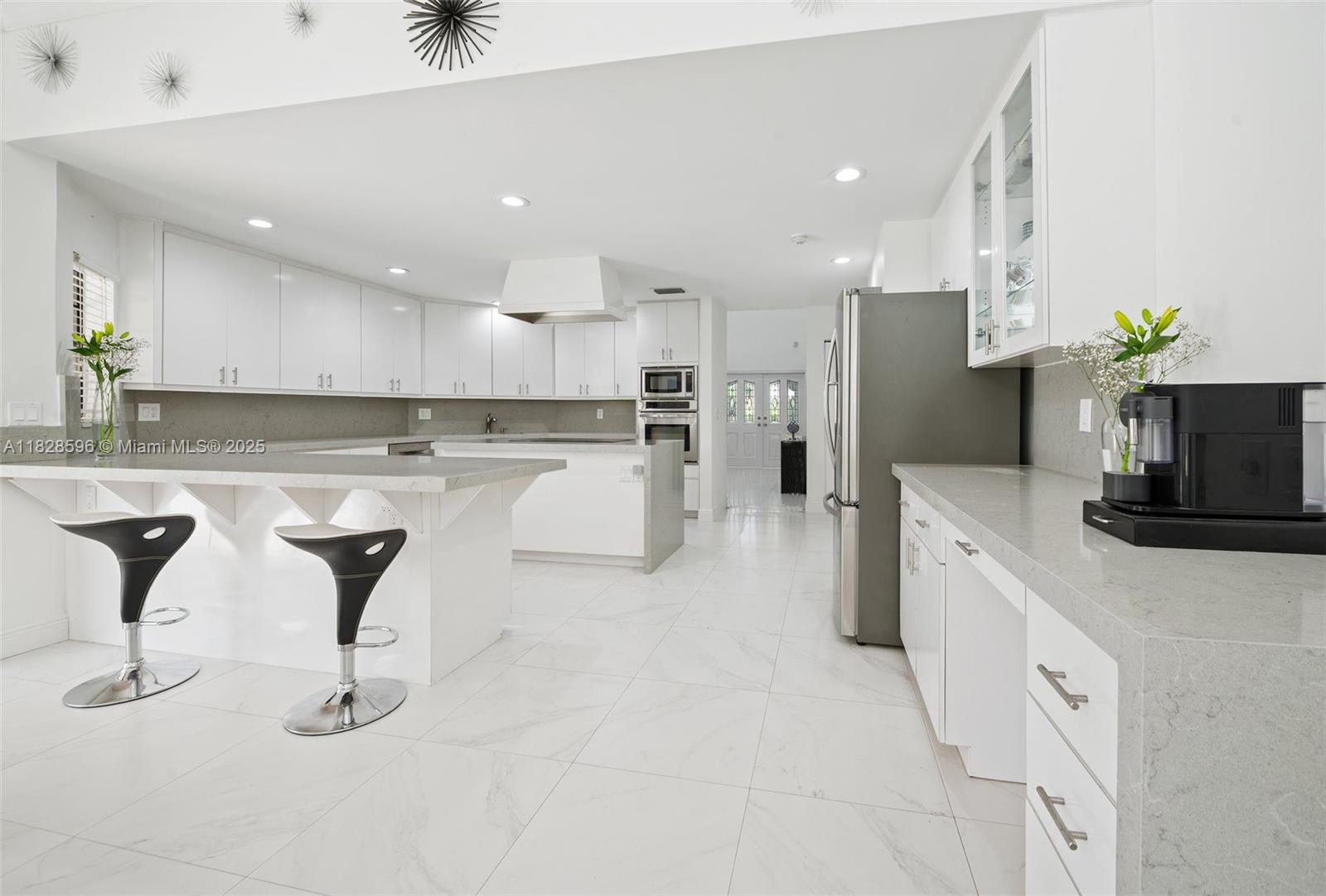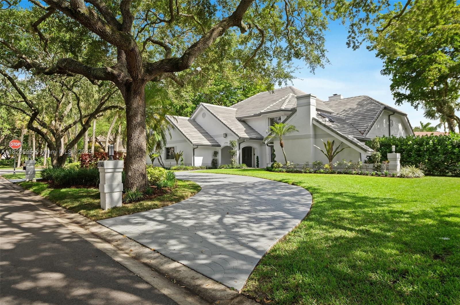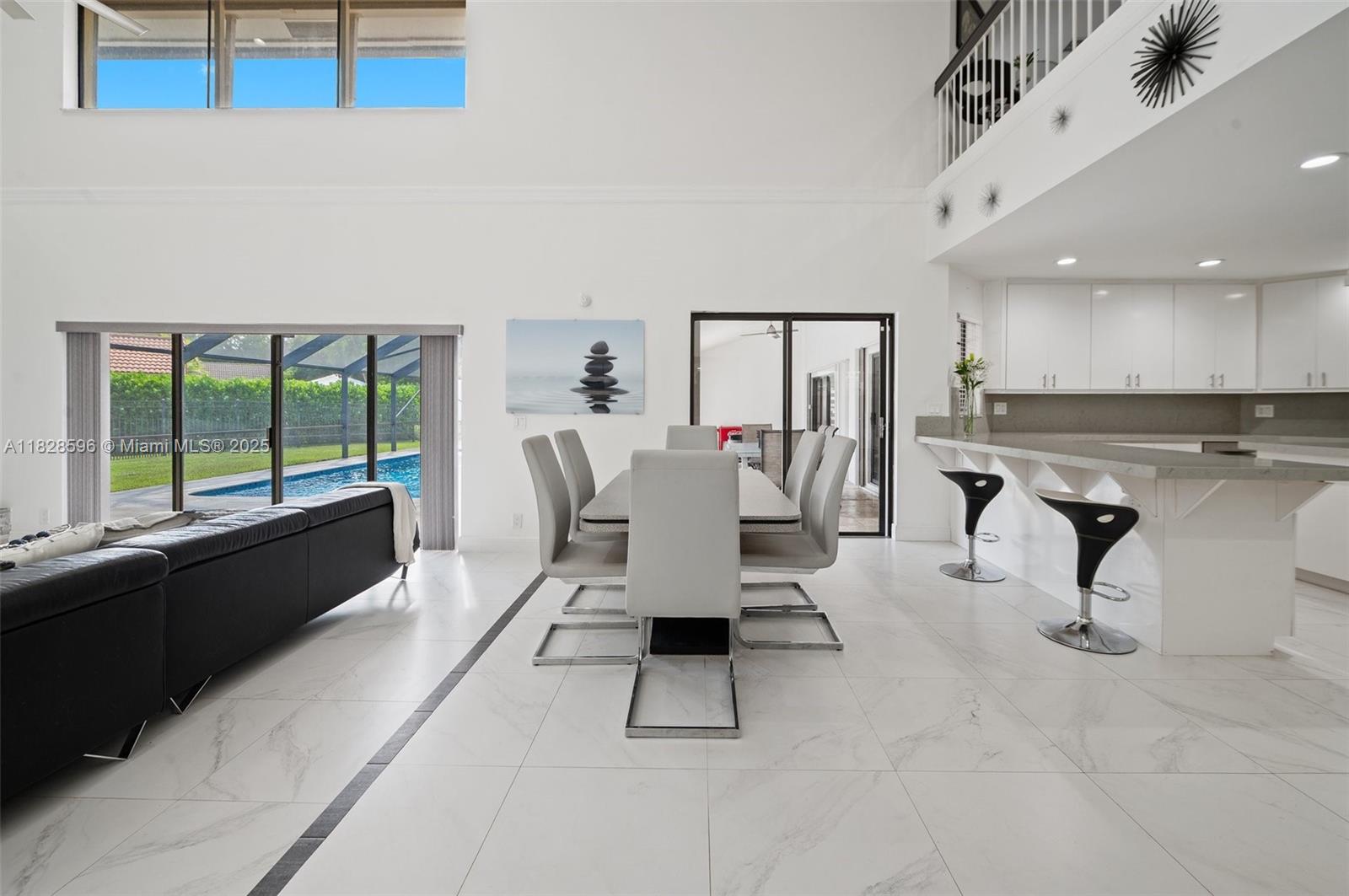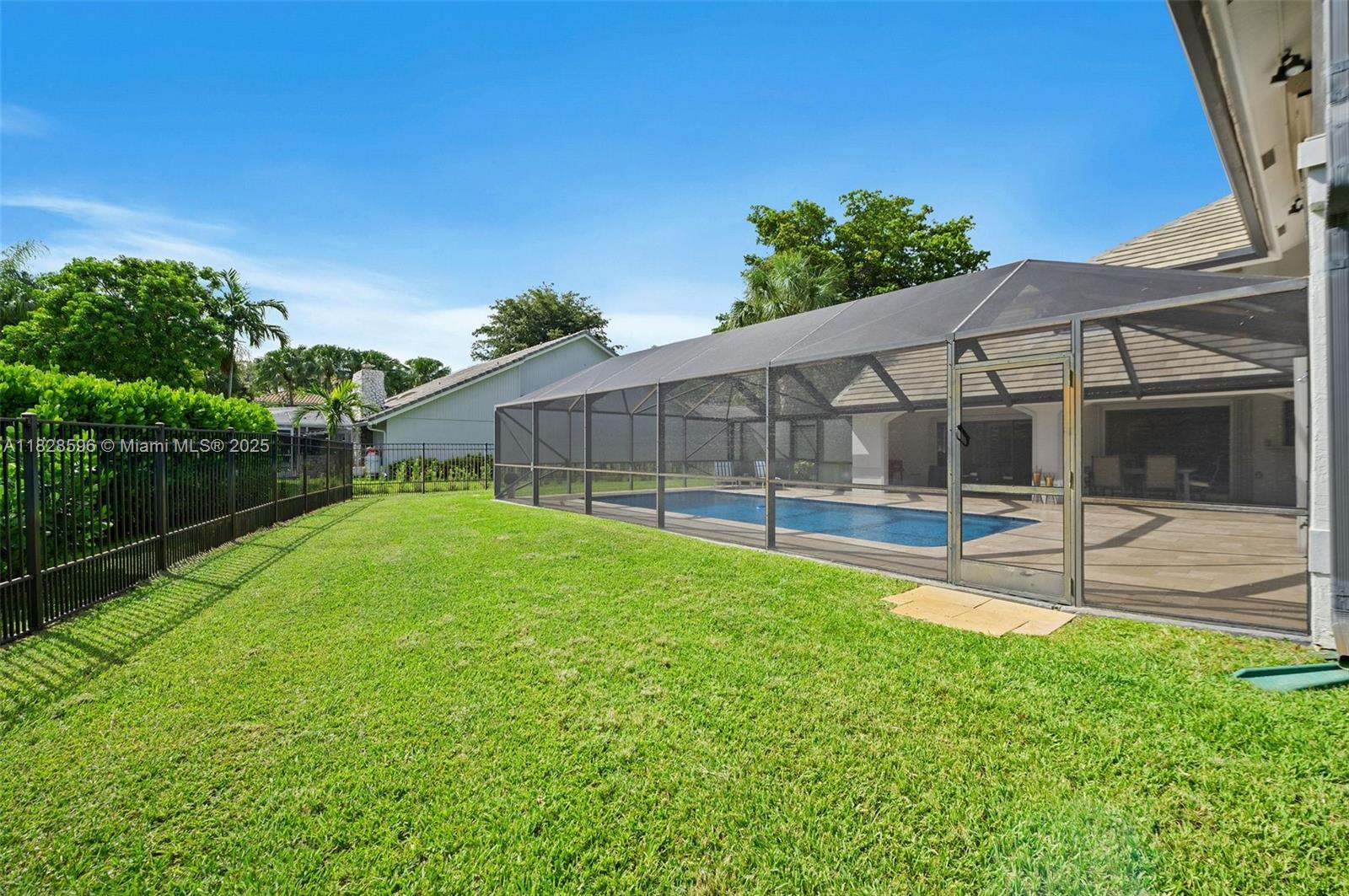 This spacious and bright 5 BD/5 BA move-in ready corner lot home with soaring ceilings is located in Maplewood Isle, one of the most charming gated-communities in SoFlo. Kitchen features quartz counter tops, induction cook top & SS appliances. Primary BD on first floor, has dual walk-in closets & additional sitting area overlooking the pool. Main BA has stand-alone bathtub, shower & two vanities. All bathrooms renovated. The home features a loft, wet bar & In-Law Quarters on 2nd floor. Walk-in attic for storage. Fenced-backyard & screened-in heated pool on travertine patio. Lots of storage, new roof installed in 2021 & the whole house was re-piped in 2023. Connections set for a built-in outdoor kitchen. Three car-garage & two driveways to fit 10 cars. Light fixture in loft doesn't convey.