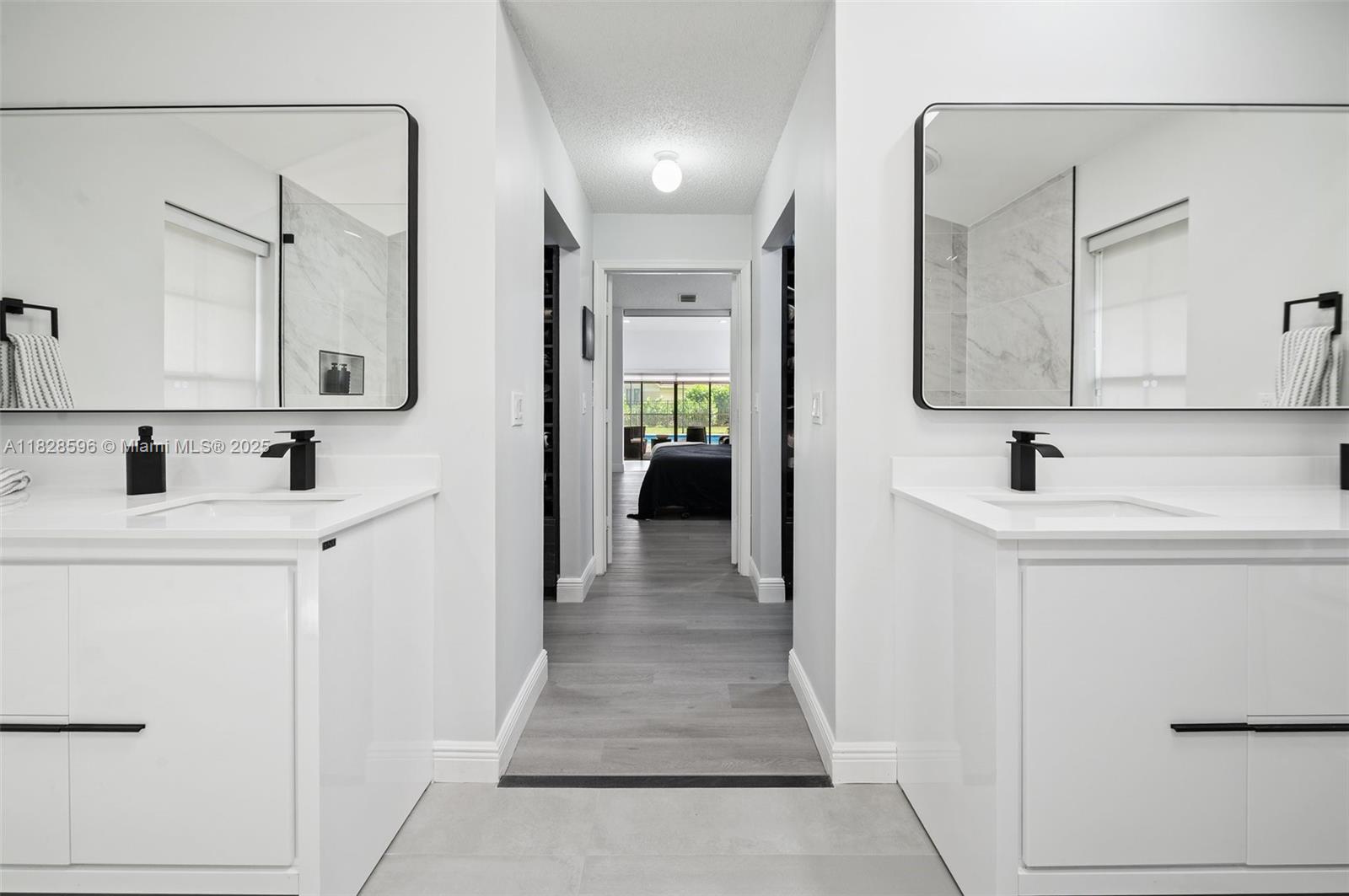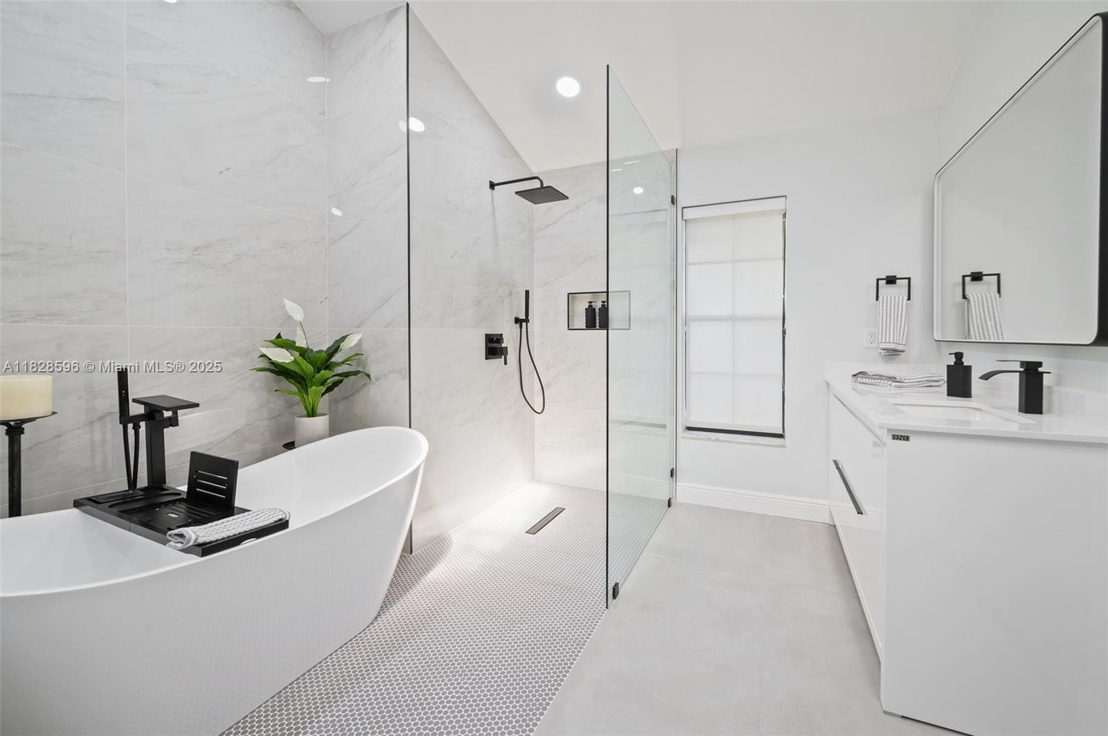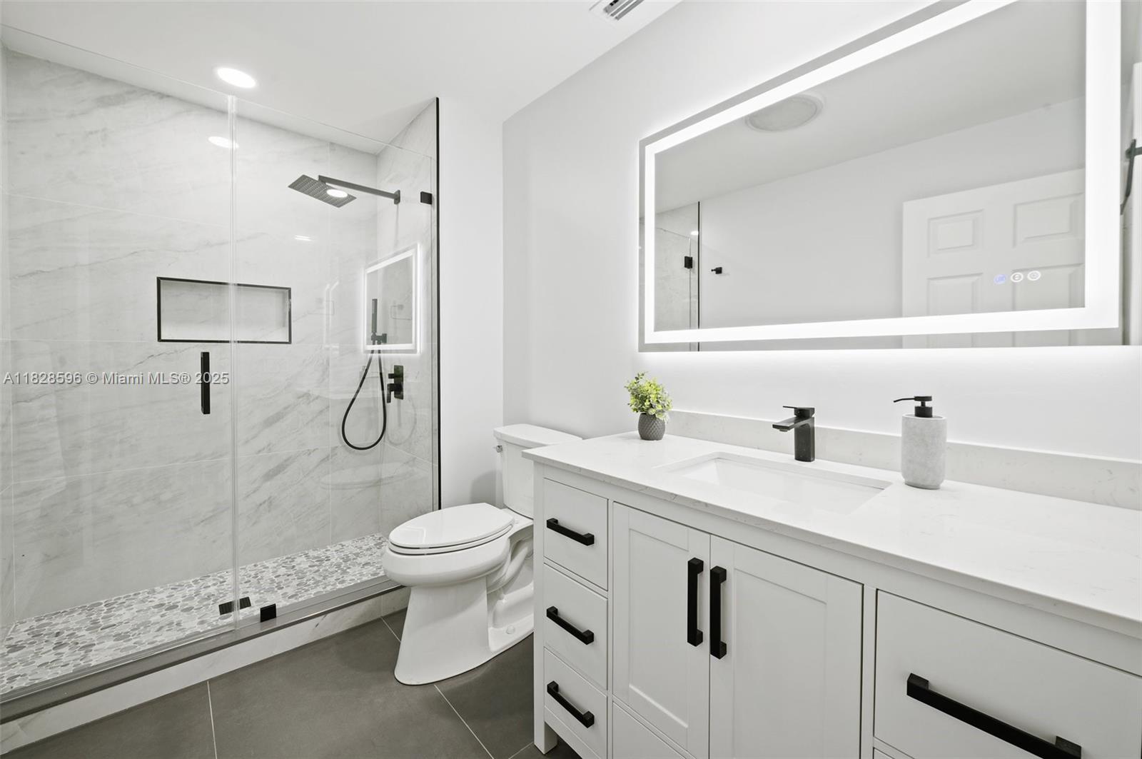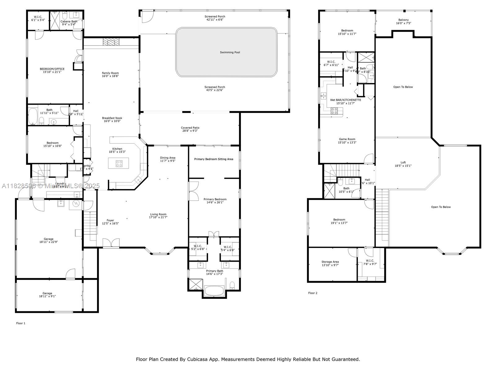 This spacious and bright 5 BD/5 BA move-in ready corner lot home with soaring ceilings is located in Maplewood Isle, one of the most charming gated-communities in SoFlo. Kitchen features quartz counter tops, induction cook top & SS appliances. Primary BD on first floor, has dual walk-in closets & additional sitting area overlooking the pool. Main BA has stand-alone bathtub, shower & two vanities. All bathrooms renovated. The home features a loft, wet bar & In-Law Quarters on 2nd floor. Walk-in attic for storage. Fenced-backyard & screened-in heated pool on travertine patio. Lots of storage, new roof installed in 2021 & the whole house was re-piped in 2023. Connections set for a built-in outdoor kitchen. Three car-garage & two driveways to fit 10 cars. Light fixture in loft doesn't convey.