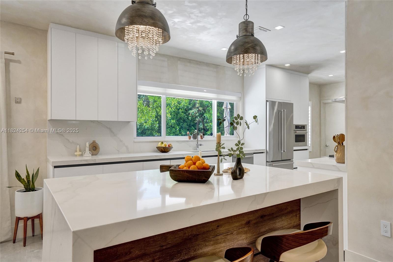 This home has it all!! Beautifully renovated with high-end finishes - 3BD/3BA home on a rare double lot with pool and huge 2-car garage located on historic Harrison St. Custom modern kitchen, Wolf gas cooktop, double wall oven, wine cooler, and Carrera Fantasy quartz. Designer finished Lime-washed walls in main living areas. The massive primary suite boasts an x-large sitting area, luxurious bathroom, and two incredibly large custom walk-in closets. Window treatments include plantation shutters through-out, electric blackout shades bedroom. Impact windows & doors. Enjoy the large Tiki Hut by the pool, ideal for entertaining. Pool child fence included. 2 zone A/C, 2 tankless water heaters, 2016 roof, 10’ garage ceilings, and EV outlet. This home is a must see!!