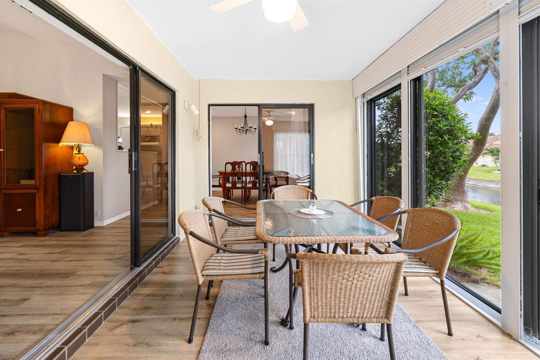 Located in Boca Chase Waterberry 55+ community , this well-maintained 3-bedroom, 2-bath single-family home offers 1,857 square feet of comfortable living. Head inside to an open layout with vaulted ceilings and updated flooring throughout. Both bathrooms feature beautifully renovated showers, adding a modern touch. The spacious glass-enclosed Florida room is equipped with A/C and overlooks a peaceful water view--perfect for relaxing or entertaining year-round. Enjoy the ease of a thoughtfully designed layout that flows naturally from room to room. The home also includes access to a community clubhouse, providing extra space to gather or unwind. With its blend of indoor comfort and scenic surroundings, this home is a lovely opportunity in a well-established neighborhood.