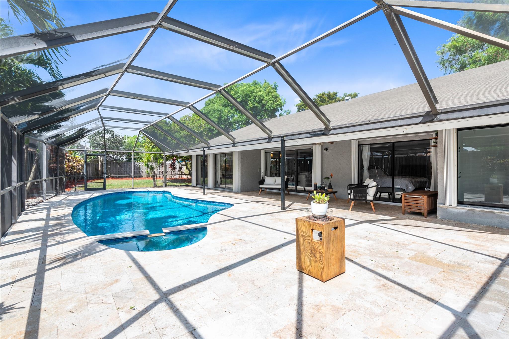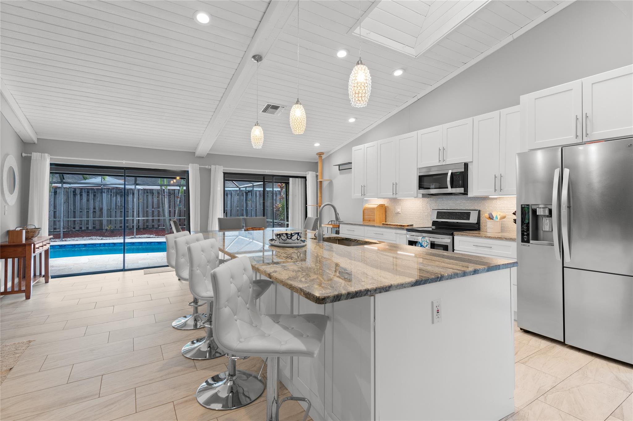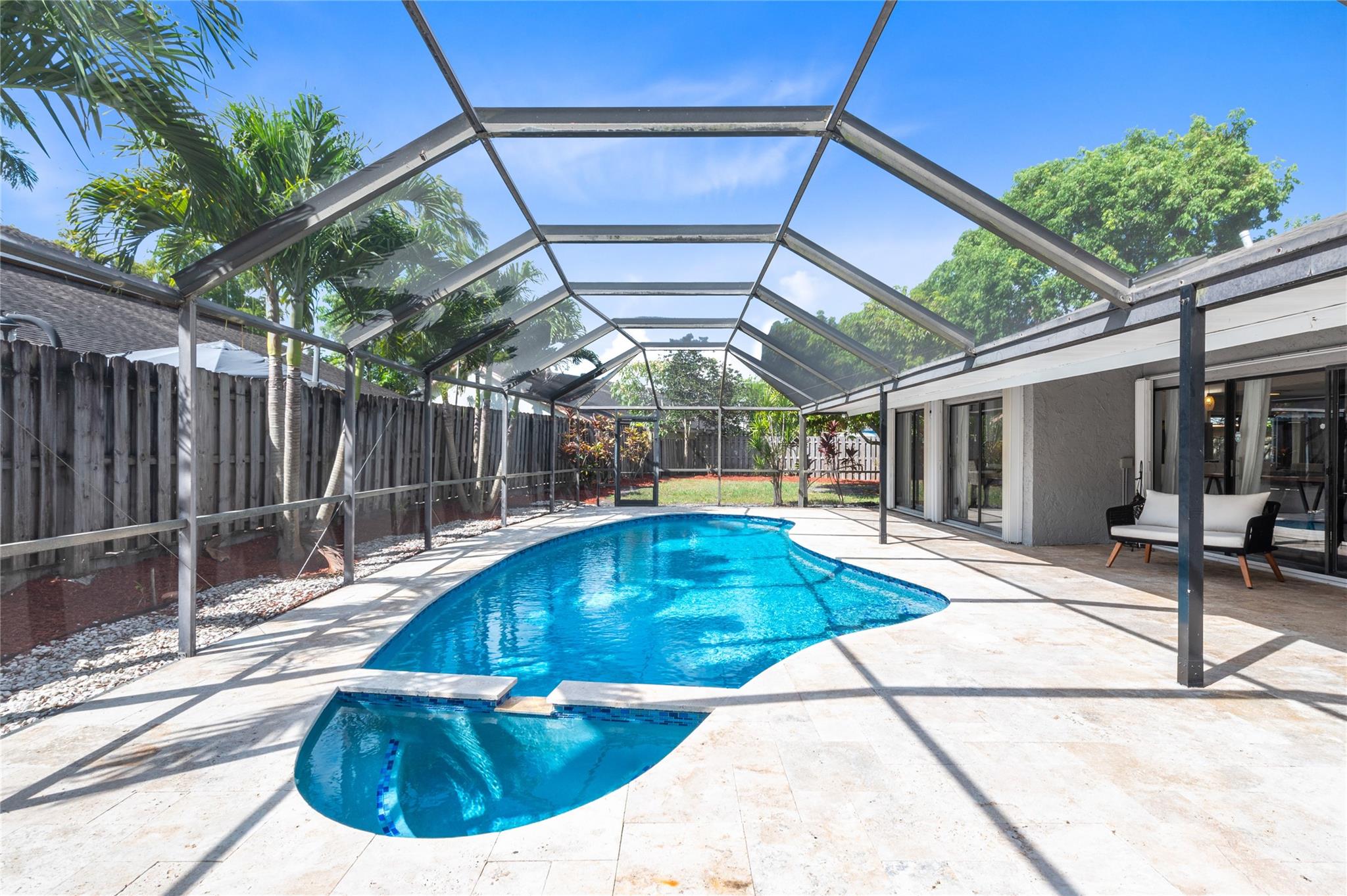 Plantation Gem with Saltwater Pool! This fully renovated 3-bed, 2-bath home in Plantation Hills sits on one of the largest cul-de-sac lots. Features a designer-inspired open floor plan with a massive kitchen island and spacious living/dining areas—perfect for entertaining. Enjoy seamless indoor-outdoor flow to the enclosed patio and sparkling saltwater pool. Accordion shutters provide full storm protection. Updated roof and modern finishes throughout. Roof 2016, A/C 2007, pool pump SALTWATER 2020 Expansive yard offers endless potential. Don’t miss this turnkey home—schedule your private tour today! EASY TO SEE!