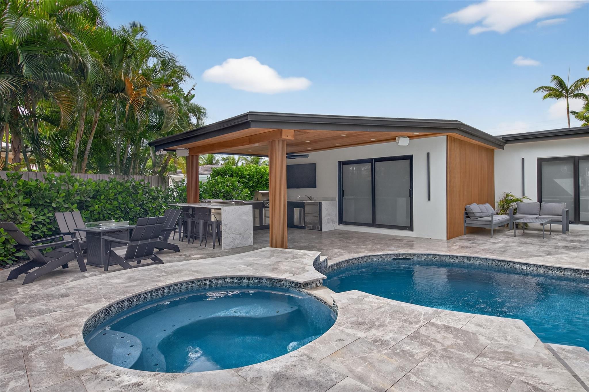 Welcome home to the gem of Garden Isles! No expense was spared in this stunning, fully renovated modern retreat in the heart of Pompano Beach. This waterfront paradise boasts 60 ft of seawall and prime unobstructed canal views, travertine patio, al fresco dining and outdoor kitchen, refinished heated pool and spa, luxury finishes, large profile tile floors, rich teak accents, exposed beams, modern fireplaces, custom cabinetry throughout, full impact windows and doors, electric privacy shades in every room and a fully equipped garage gym. The primary wing boasts a resort-inspired ensuite w/curbless shower and soaking tub, double vanity and a gorgeous walk-in closet w/under cabinet lighting, complete with sliding doors leading out to your private backyard oasis. Seller Financing Available.