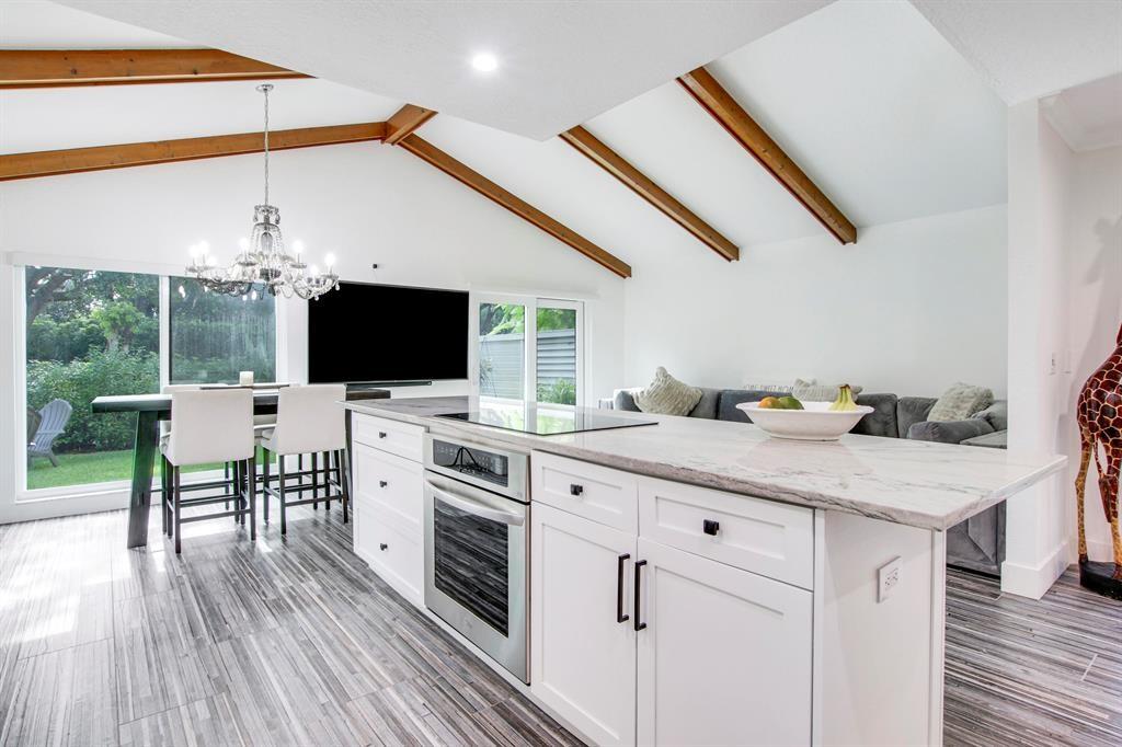 Must see, fully renovated home in Ironwood at PGA National! Featuring vaulted ceilings with wood beams, impact windows and doors, new interior flooring, updated open kitchen, featuring LG appliances, including an oversized LG washer/dryer. Recessed lighting throughout. Both bathrooms fully updated, closet build outs, new door castings and solid core interior doors. Custom window treatments throughout. New epoxy garage floor, new driveway and new screened in patio and pavers. PGA National membership optional. Centrally located in the neighborhood for easy access to shops, restaurants and highways. A-rated school district.