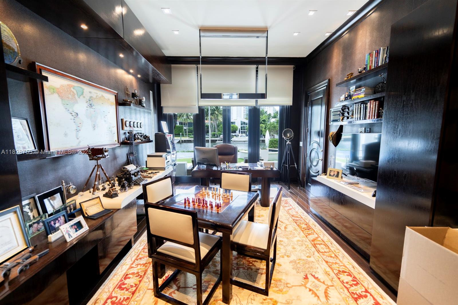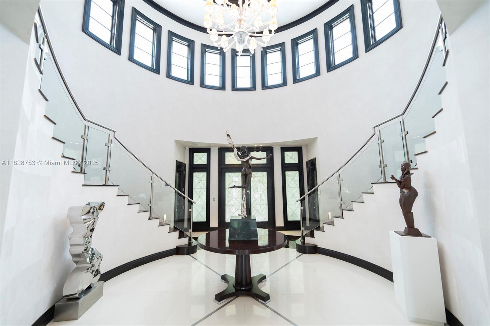 Set on an impressive 6-bedroom Golden Beach home with 186 feet of pristine waterfront, this impeccable estate home with its own private dock is truly a masterpiece. The manicured landscape features a 105’ indoor/outdoor infinity edge pool and integrated fountains. A grand double-staircase with vaulted ceilings welcomes you, backset by magnificent views along one of the widest bodies of water in Golden Beach. Interior features include a dedicated spa and fitness area, theater, wine cellar, elevator and expansive master suite with dual bathrooms and oversized wardrobes. Crestron automation, Kreon lighting, luxurious wall and window treatments, custom tapestries and top-quality finishes throughout will impress the most discerning buyers.