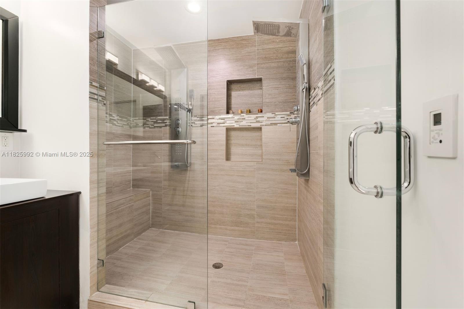 Located in the desirable gated community of Highland Lakes, this beautifully renovated 5BD/4BA home spans 3,000+ SF and offers the perfect blend of modern luxury and thoughtful functionality. Expanded and fully remodeled in 2013, the home features impact windows, new roof, electric, plumbing, plus new A/Cs (2021). Enjoy indoor-outdoor living with an oversized pool, gas + solar heaters, outdoor kitchen, covered patio & pet-friendly turf yard. The custom kitchen includes a dining built-in with wine cooler, while the spacious spa-like primary suite offers a luxurious two-person shower & massive walk-in closet. Other highlights: wellness space with gym, sauna, cold plunge, maid’s quarters, security system, water softener & 2 built-in sheds. Minutes from A-rated schools, Aventura Mall, & I-95.