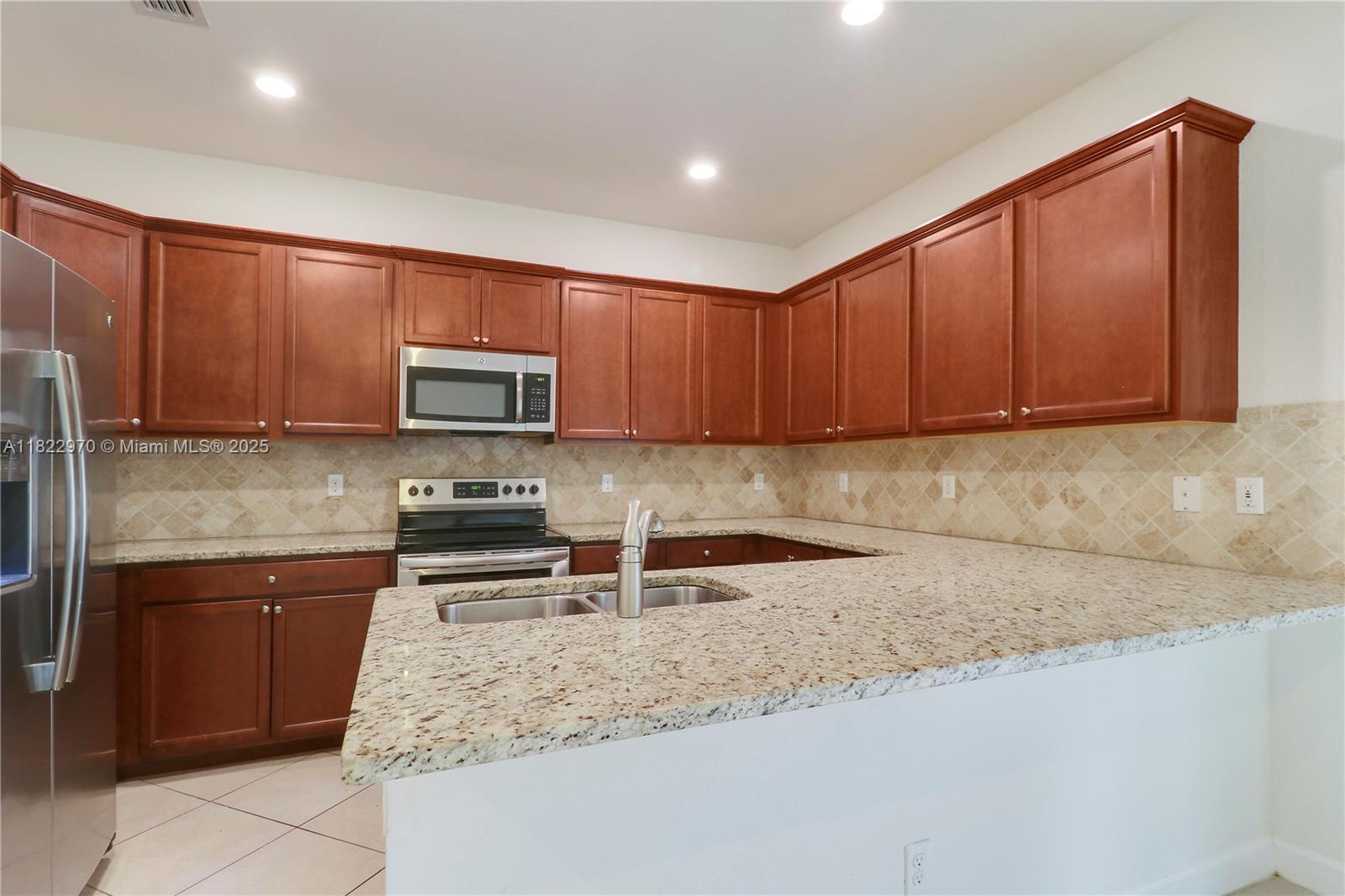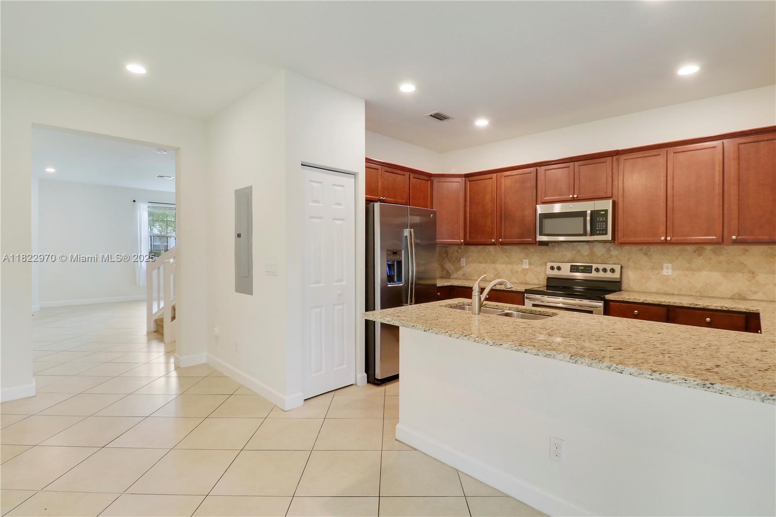 This elegant 3-bedroom, 2.5-bathroom townhouse is nestled within a secure gated community, offering both privacy and convenience. The spacious kitchen is a chef's dream, featuring sleek granite countertops and high-end stainless steel appliances. The open-concept living and dining areas provide ample space for relaxation and entertaining. A convenient half bath is located downstairs for guests.