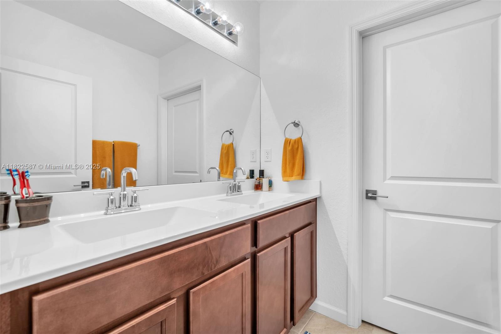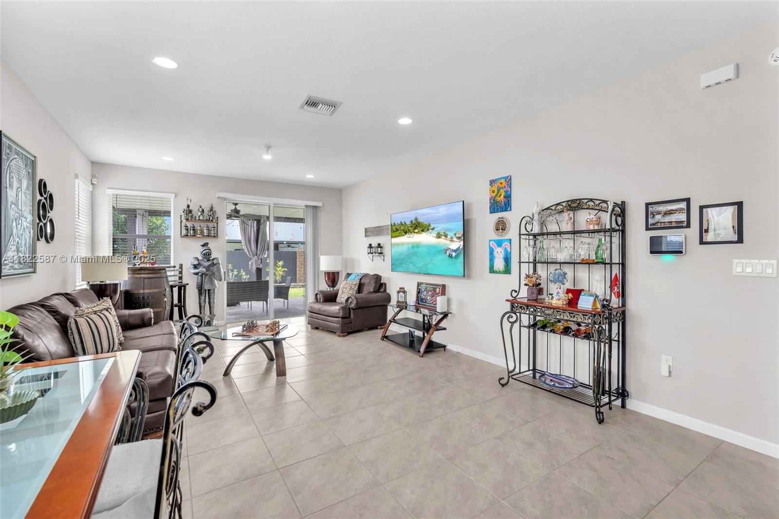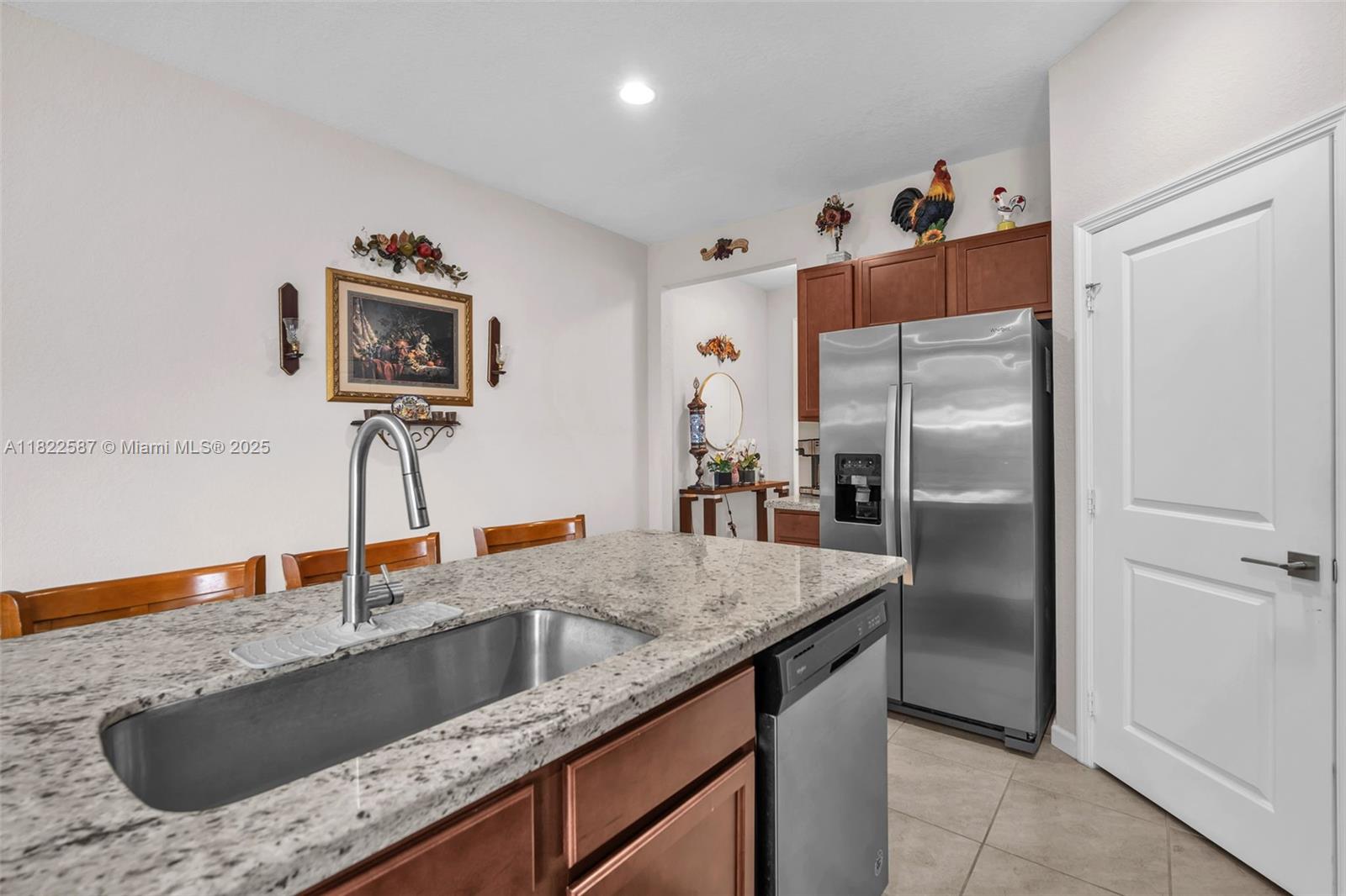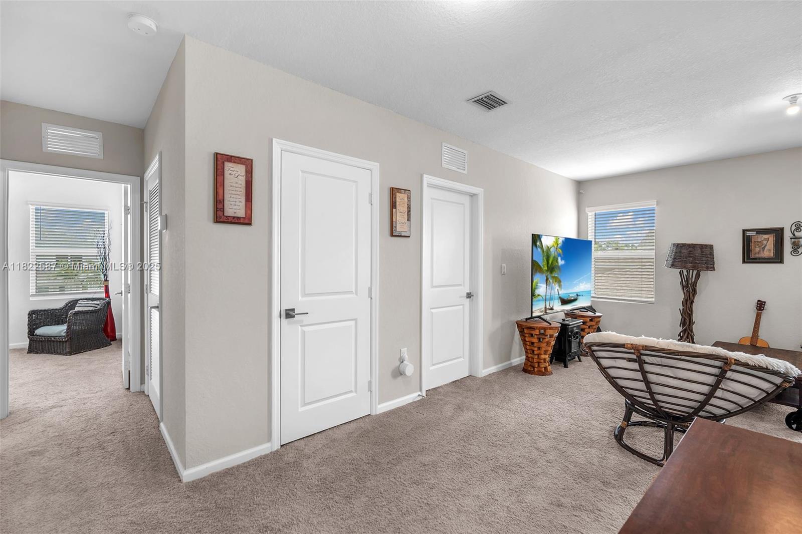 Beautiful 2-story Homestead home with 2-car garage, small porch, and inviting foyer. The open living and dining areas are perfect for entertaining family and friends. The island kitchen includes a double-door refrigerator, stove, microwave, garbage disposal, and ample cabinet space for all your cooking needs. Downstairs features a half bath, attic storage, and small walk-in closet with shelving. Upstairs has carpet throughout, a spacious loft with closet, laundry room, three bedrooms, and a master suite with walk-in closet, double sinks, shower, and separate tub. Guest bath offers double sinks and tub/shower. The backyard includes patio, pavers, grassy area, small garden, and three ceiling fans for outdoor comfort and relaxation. Separate in-law or guest-entry on the side of house.