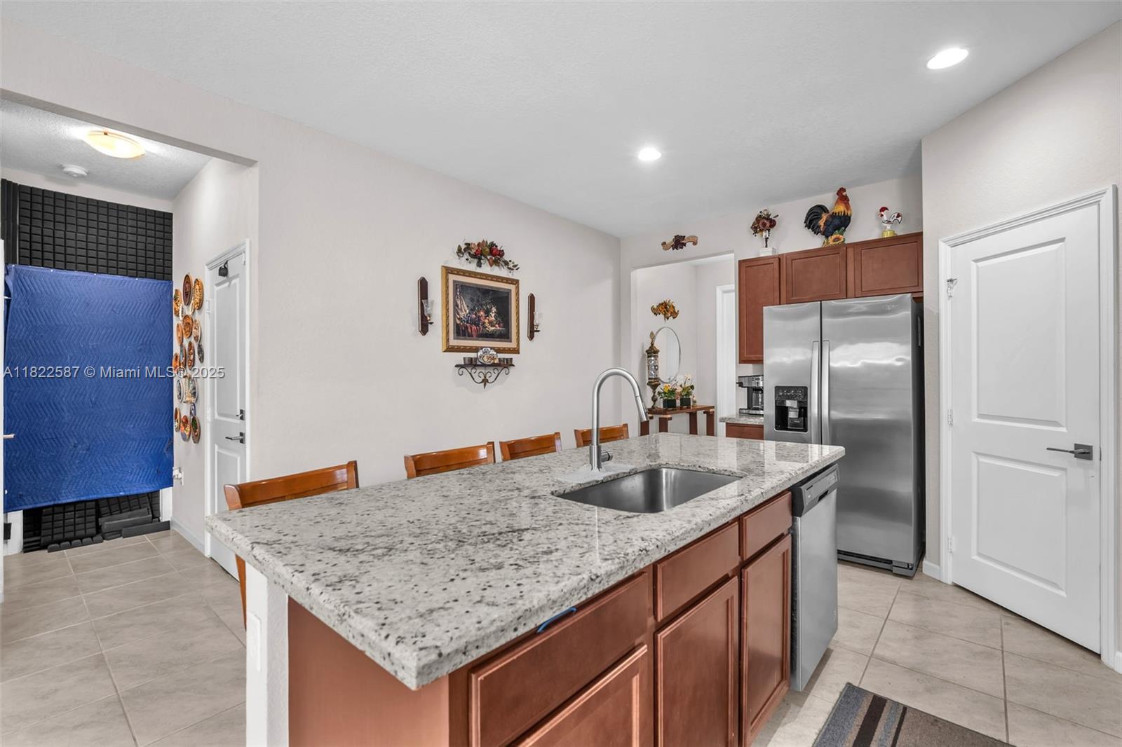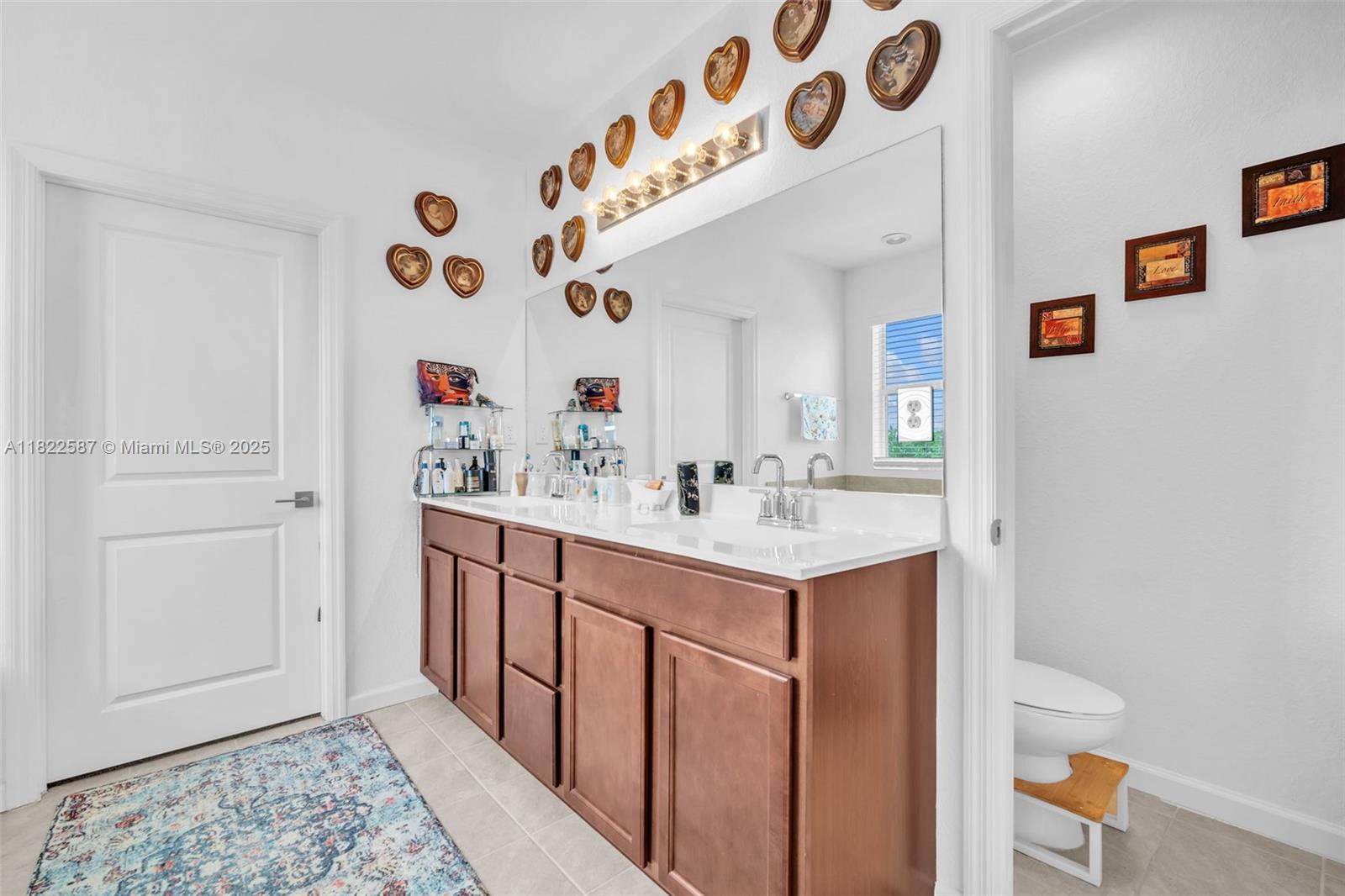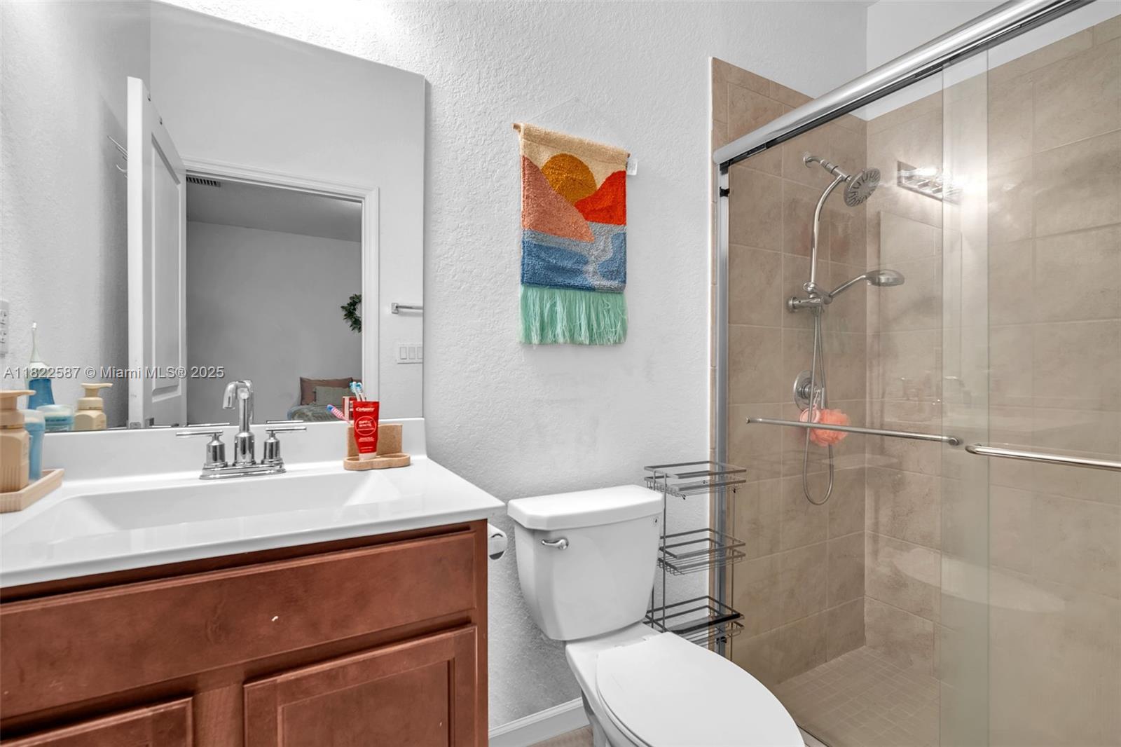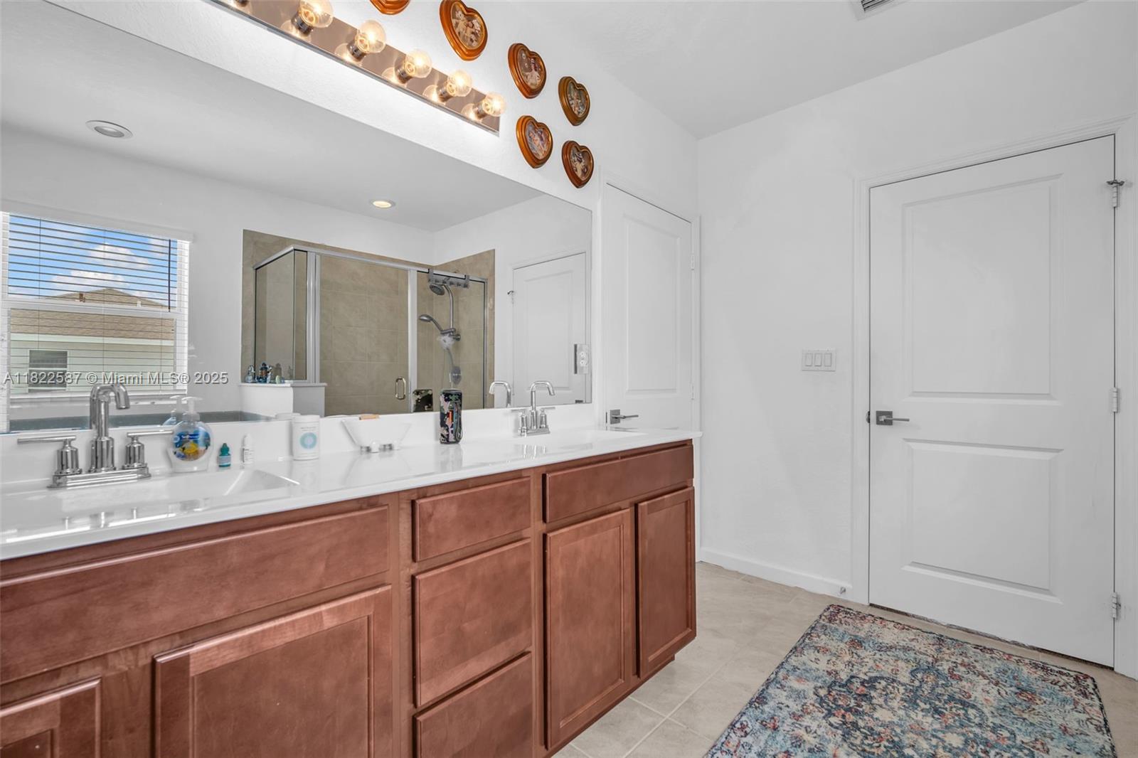 Beautiful 2-story Homestead home with 2-car garage, small porch, and inviting foyer. The open living and dining areas are perfect for entertaining family and friends. The island kitchen includes a double-door refrigerator, stove, microwave, garbage disposal, and ample cabinet space for all your cooking needs. Downstairs features a half bath, attic storage, and small walk-in closet with shelving. Upstairs has carpet throughout, a spacious loft with closet, laundry room, three bedrooms, and a master suite with walk-in closet, double sinks, shower, and separate tub. Guest bath offers double sinks and tub/shower. The backyard includes patio, pavers, grassy area, small garden, and three ceiling fans for outdoor comfort and relaxation. Separate in-law or guest-entry on the side of house.