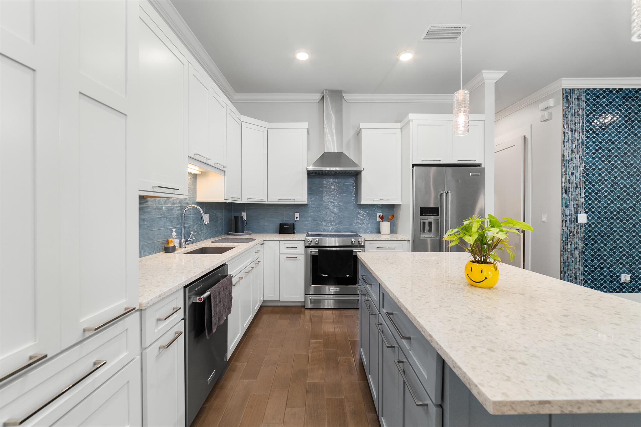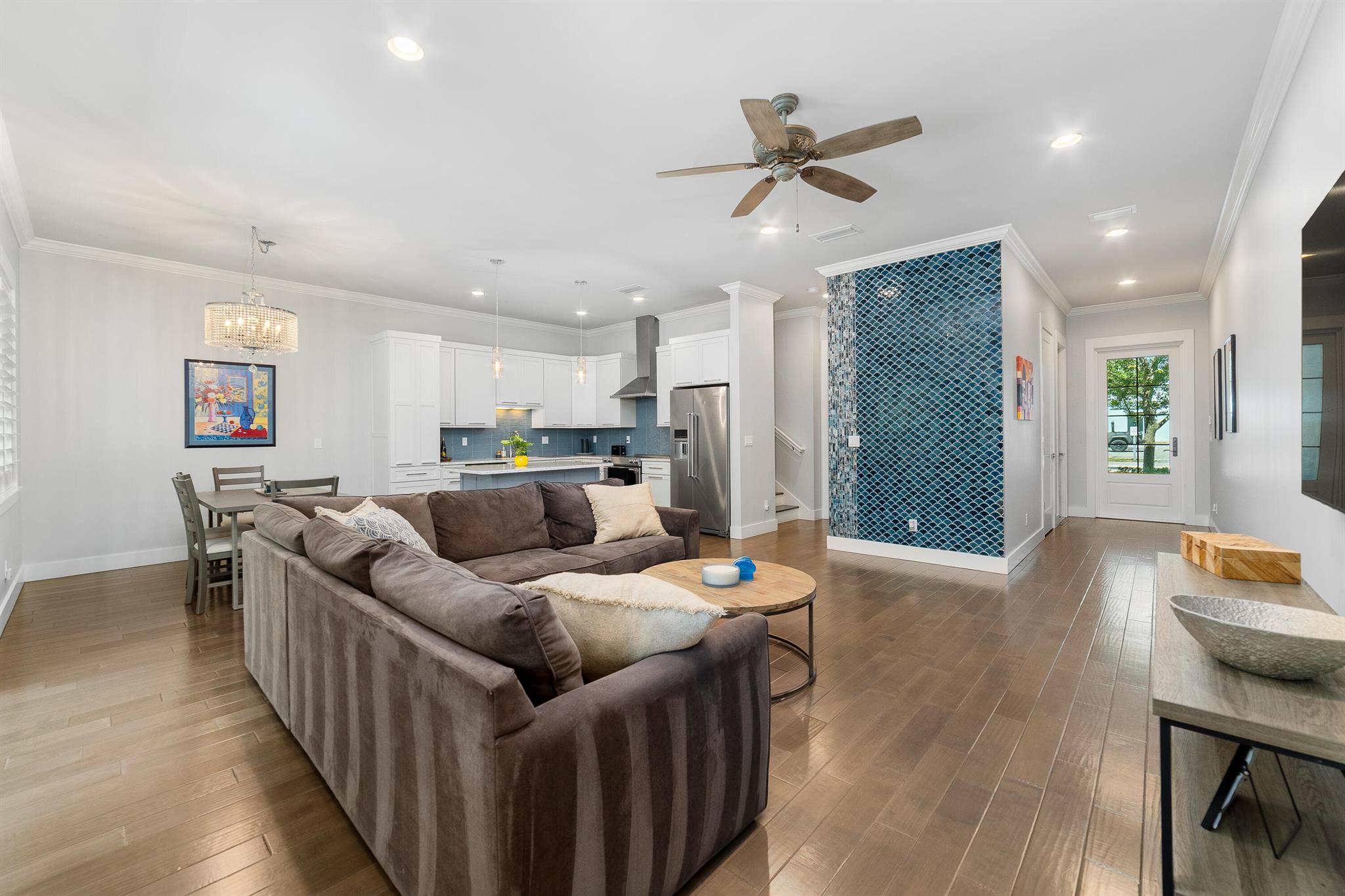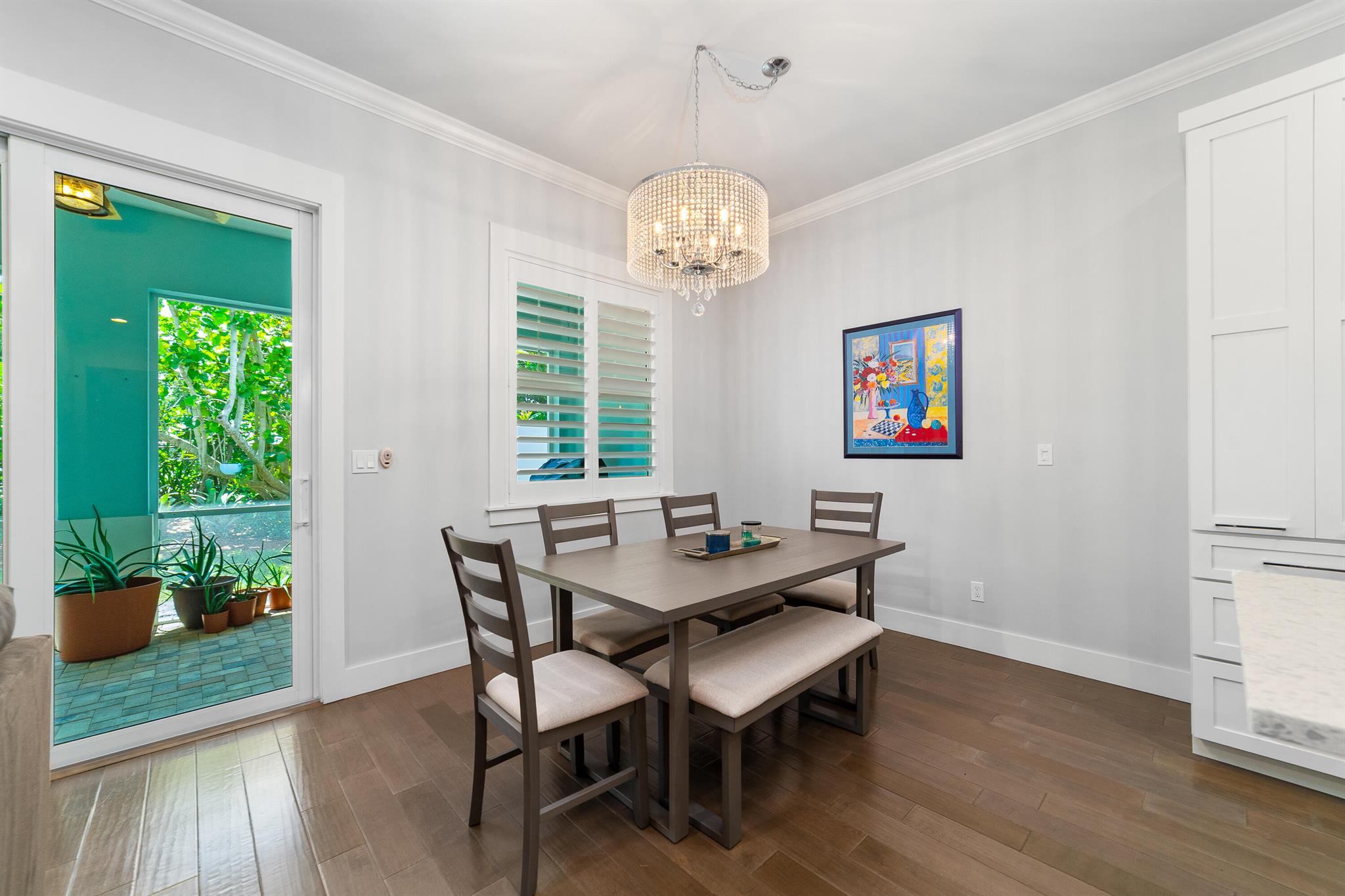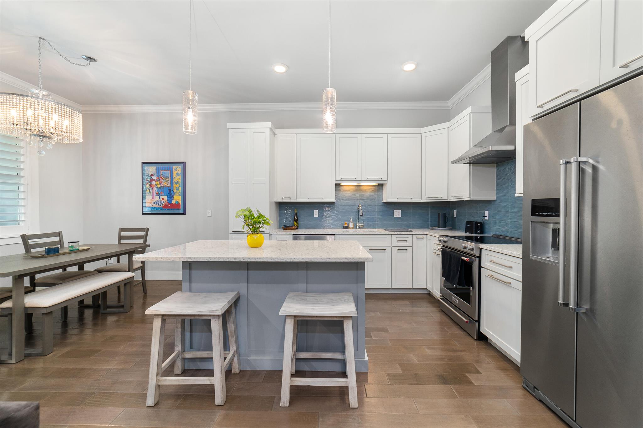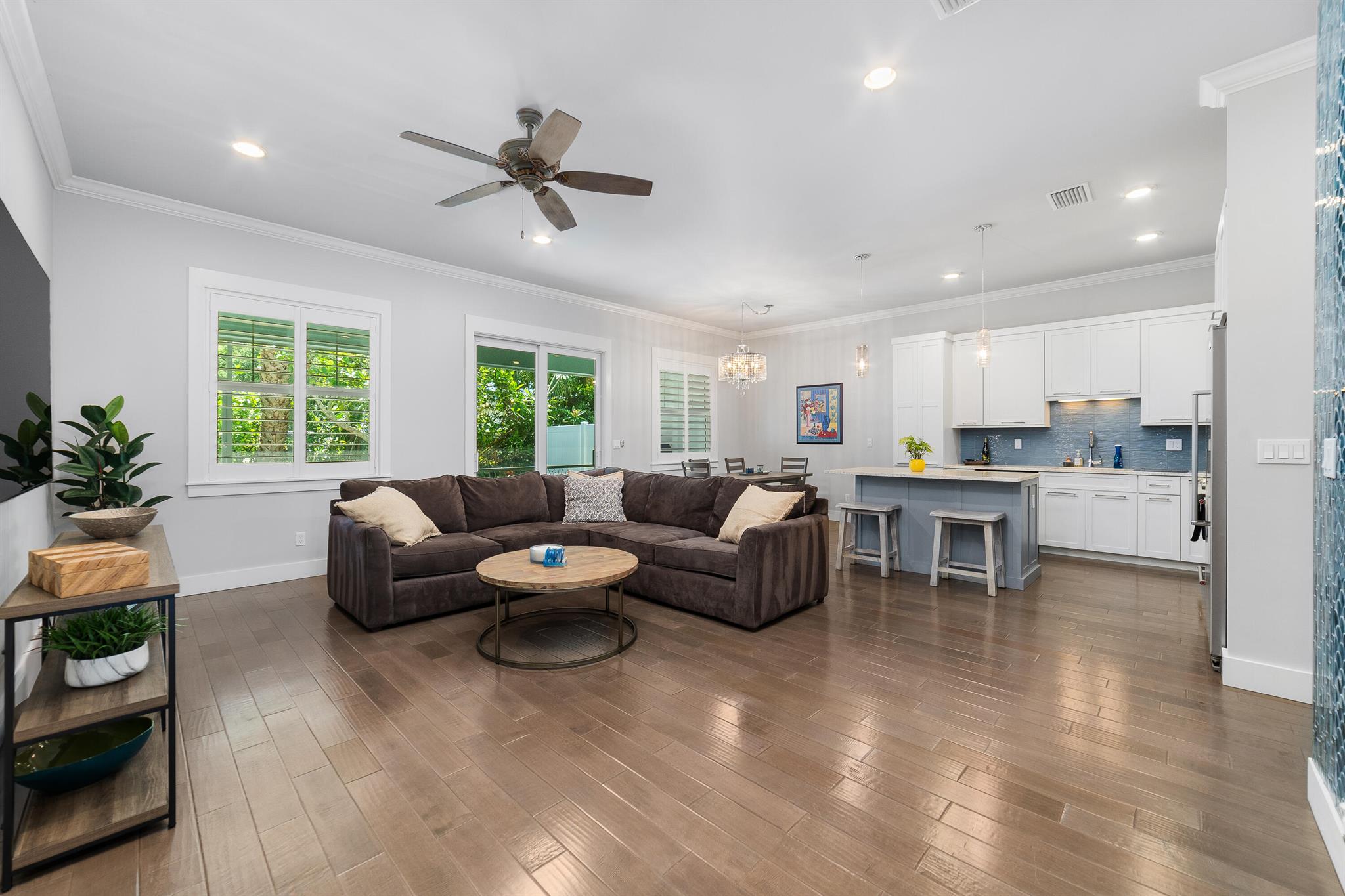 Discover an amazing opportunity to live and work in the highly sought-after, Historic Downtown Stuart! This custom-built, Key West-style townhome is located in Coastal Living Magazine's ''Happiest Seaside Town,'' offering unparalleled ease of access to local restaurants, boutiques, galleries, the Lyric Theater, banks, parks, and Cleveland Clinic Hospital. The interior boasts high-end, modern design with hardwood floors, quartz countertops, upgraded stainless steel appliances, an amazing walk-in pantry, and a spacious owner's suite featuring a soaking tub and separate shower. Enjoy elegant touches like tray ceilings, crown molding, and plantation shutters throughout.