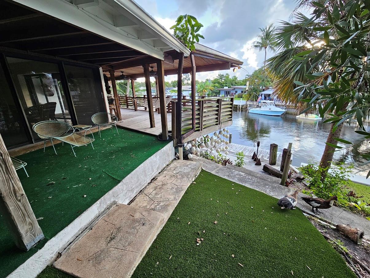 This Property is Truly a one of a kind waterfront home. 2bed 2bath with circular drive & car port with work shop, 114 ft of West facing waterfront on wide private canal with its own island, beautiful view of the entire canal and the Hillsboro River from its big overlooking deck. Canal behind property is owned and has its own folio #, One of the highest elevations in Deerfield NOT in a flood zone. Home is in the highly desirable waterfront neighborhood of twin oaks with only 45 waterfront Homes. Just off the Hillsboro Canal with only one high fixed bridge (Federal) and only minutes by boat to Lake Boca and Ocean. Nice quite neighborhood in a Great location 1 mile to beach, Pioneer Park and boat launch ramp are just around corner. Sale includes two properties.