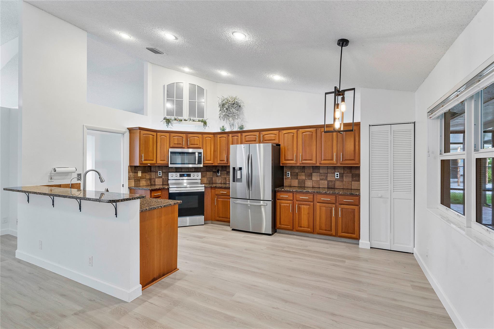 Exceptional 4-bed, 3-bath home perched on Forest Ridge’s coveted Southern Orchard section. Featuring a split floor plan, this house boasts updated premium features; New flooring, Kitchen ('08), updated primary bath ('20), roof ('08), AC ('19, with maintenance contract), Rain Soft water filtration system ('18), and new air duct work. Includes Hurricane impact Windows & Doors and a 2-car garage. The spacious backyard backs up to a 120-acre preserve with direct access to Tree Tops Park—watch horses ride along the ridge from your backyard! In an Unbeatable location, this home is zoned for Western Highschool and just a short walk to Silver Ridge Elementary and Bamford Park. This beautiful, tranquil home with preserve views is a MUST see!