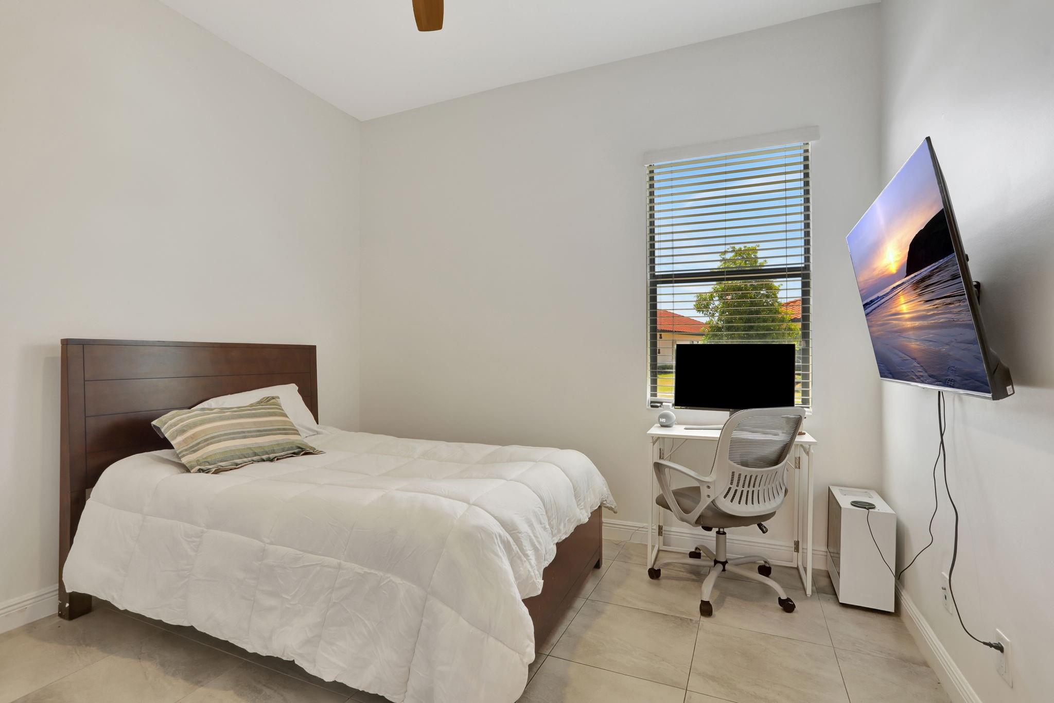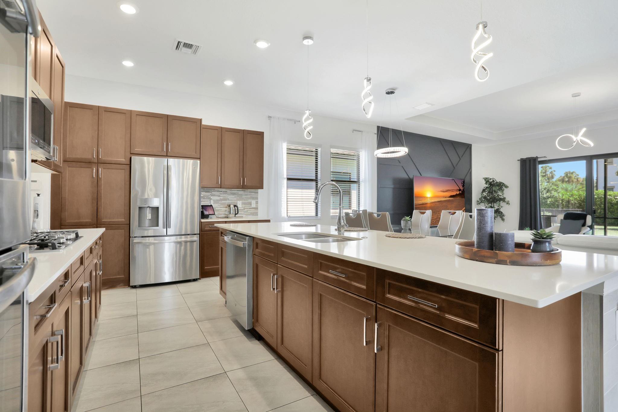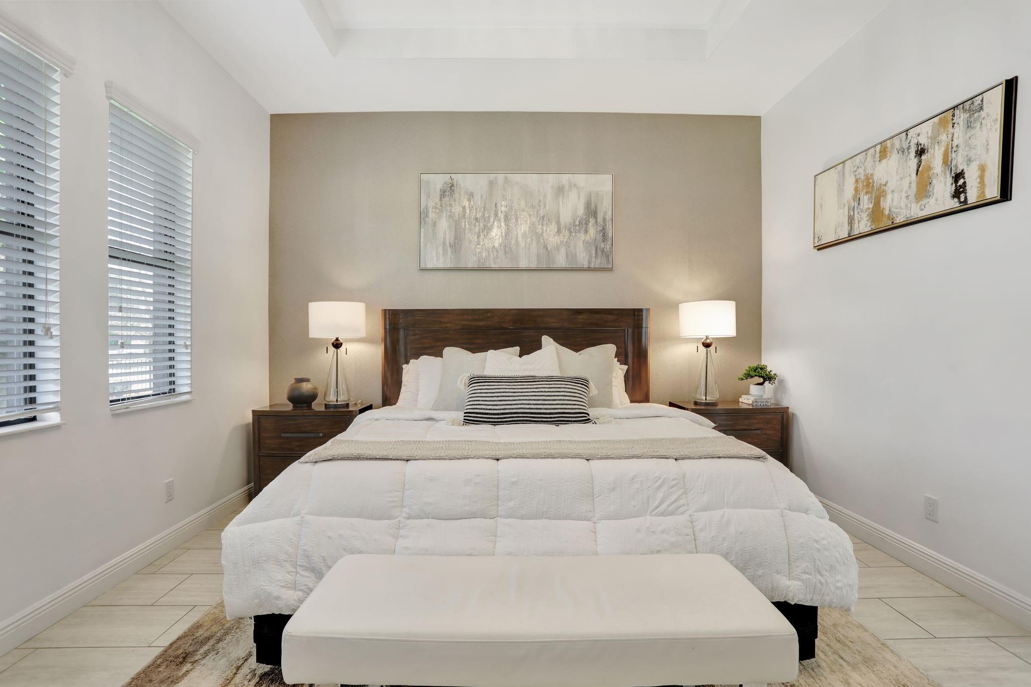 This 2019-built residence features 3 spacious bedrooms, an enclosed 4th bedroom, and 2.5 baths on a corner lot in Parkland Bay. The open floor plan is filled with natural light, showcasing tray ceilings and elegant 24x24 tile flooring. The chef-inspired kitchen includes quartz countertops, a marble backsplash, and stainless steel appliances, including a gas stove and double oven. The master suite offers a walk-in closet and a luxurious bath with a shower, separate tub, and double sinks. Enjoy custom closets in all bedrooms, an upgraded powder room, and a laundry room with cabinets and a sink, plus an epoxy-finished garage with built-in storage. Experience upscale living with amenities like gym, resort-style pool, an aerobics studio, tennis courts, playground, and more.