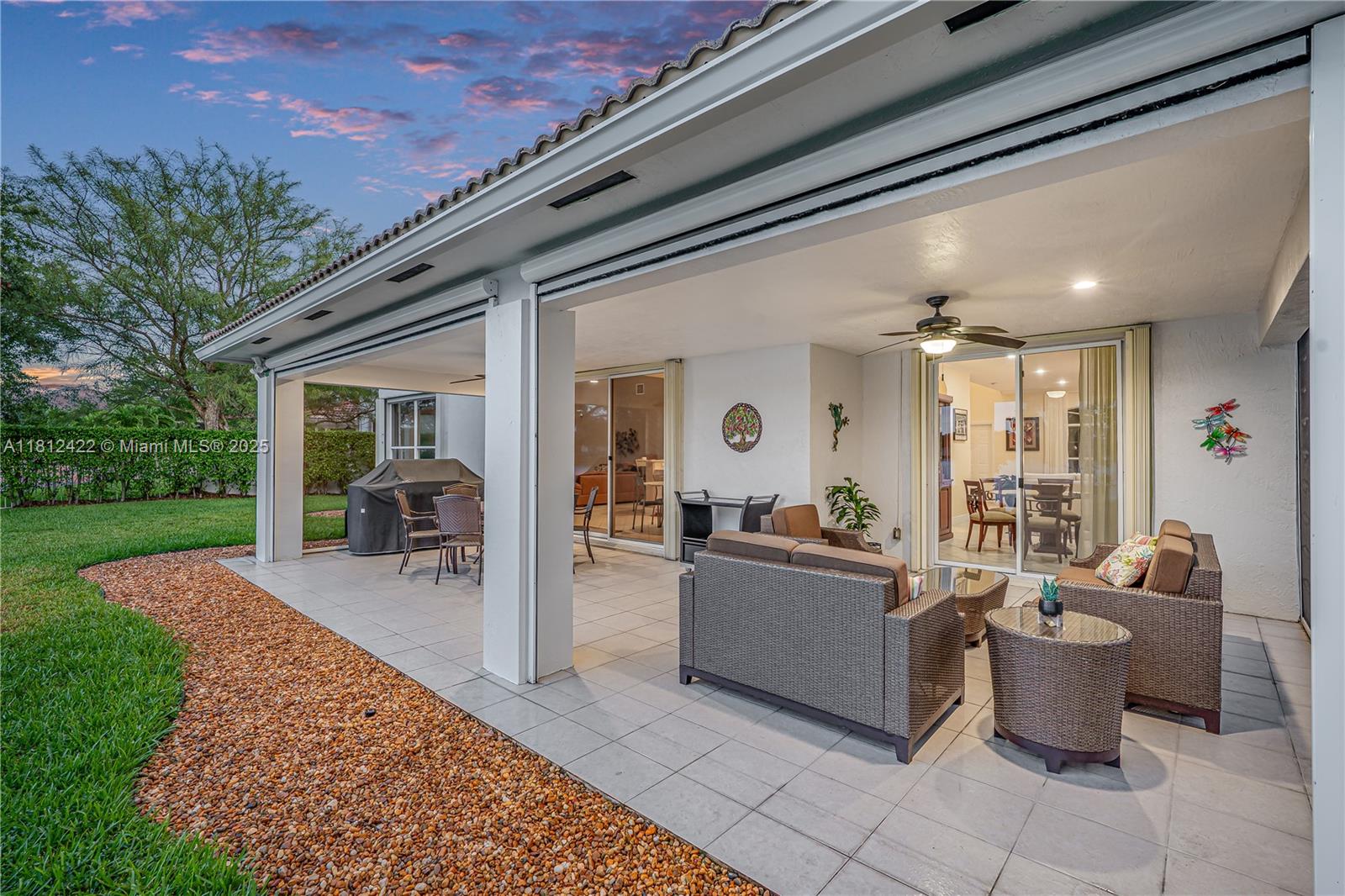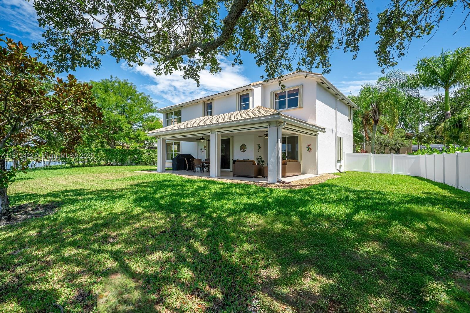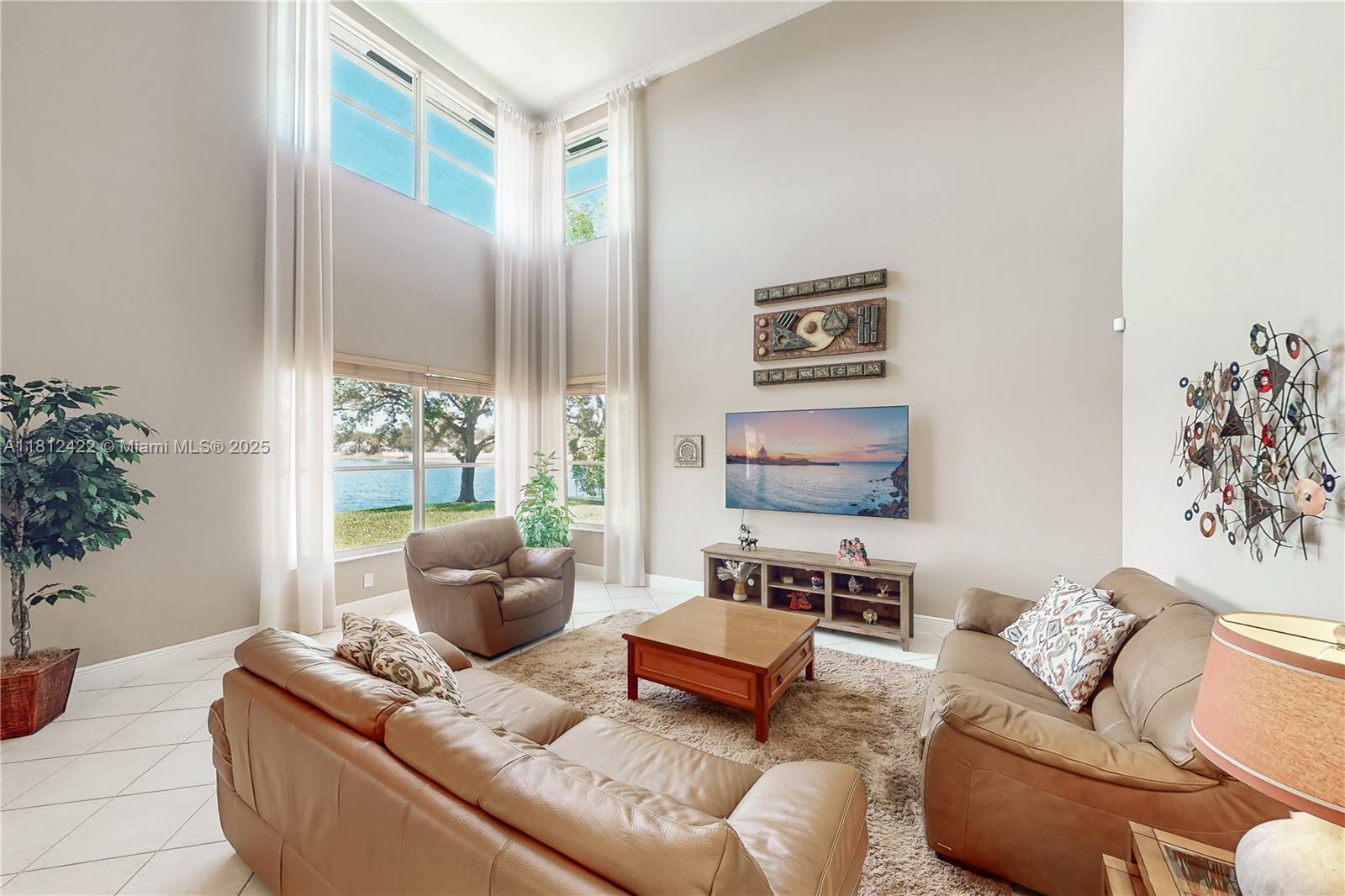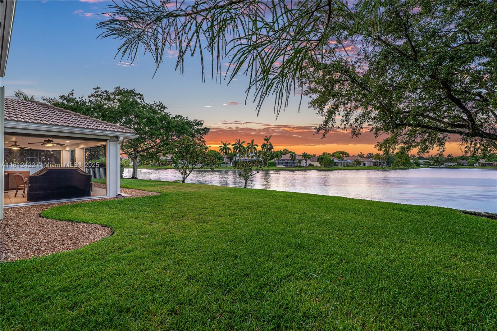 DISCOVER THE JOY OF COMING HOME TO SWEEPING LAKE VIEWS IN PEMBROKE FALLS * THIS GRAND CAYMAN MODEL WITH 5 BED, 4 BATH SITS ON A PIE-SHAPED LOT WITH 120 FT OF WATER FRONTAGE—A RARE FIND! RELAX UNDER YOUR CUSTOM EXTENDED COVERED PATIO WITH RETRACTABLE SCREENS - PERFECT FOR ENTERTAINING * ENJOY PEACE OF MIND DURING ANY STORM WITH A WHOLE HOME GENERATOR, PARTIAL IMPACT WINDOWS & ACCORDION SHUTTERS * THE SOARING 20-FOOT CEILINGS FILL THE OPEN CONCEPT KITCHEN & FAMILY ROOM WITH NATURAL LIGHT & ENERGY * THE OVERSIZED PRIMARY SUITE OFFERS A SITTING AREA, 2 WALK-IN CALIFORNIA CLOSETS & AN ADDITIONAL 3RD CLOSET * A SECONDARY BEDROOM & BATHROOM LOCATED ON THE FIRST FLOOR * COMMUNITY AMENITIES INCLUDE A RESORT-STYLE CLUBHOUSE, NATURAL GAS & MORE * HOA INCLUDES CABLE, INTERNET, 24HR SECURITY & MORE!