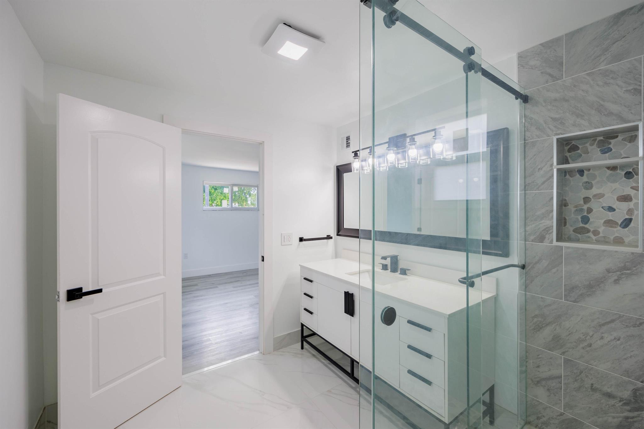 Fully Renovated 4 Bed/2 Bath Corner Lot Gem in Prime Pompano Beach! Every inch of this home has been thoughtfully modernized, including a sleek kitchen with quartz countertop, luxurious baths, porcelain tile floors, 2024 roof, new impact windows/doors, new covered porch, and new fencing. This expanded layout features generous living spaces with plenty flexible space options, Vaulted Ceiling, while the massive backyard offers pool potential. Ideal location bordering Deerfield Beach/Lighthouse Point, just minutes to the beach, dining, shopping and nightlife. Ideal for families needing room to grow or investors wanting turnkey returns. Move-in ready. If you are looking for the perfect place to call home, this is it!