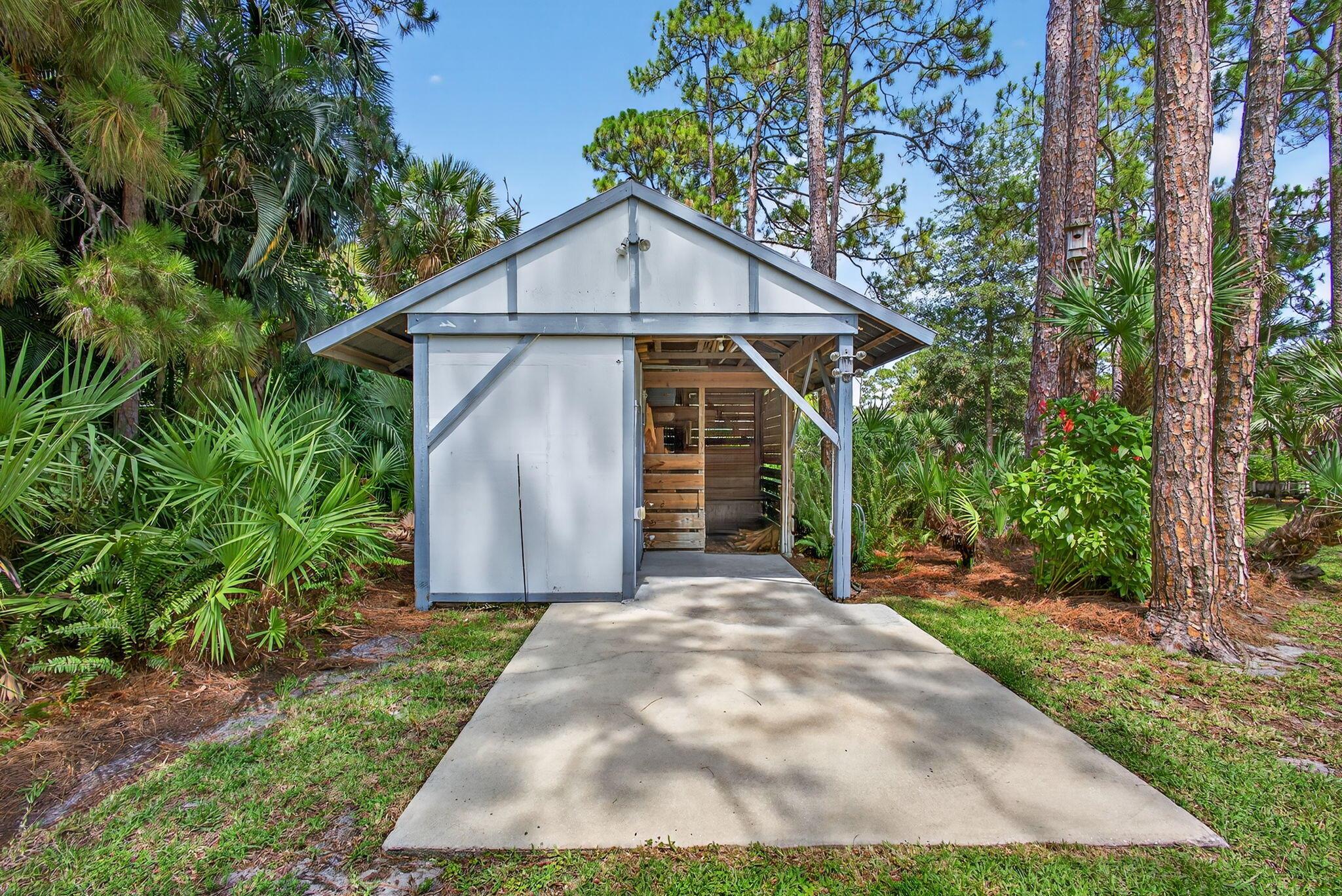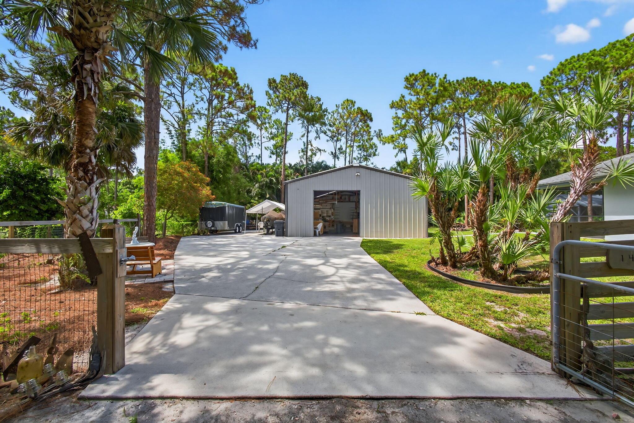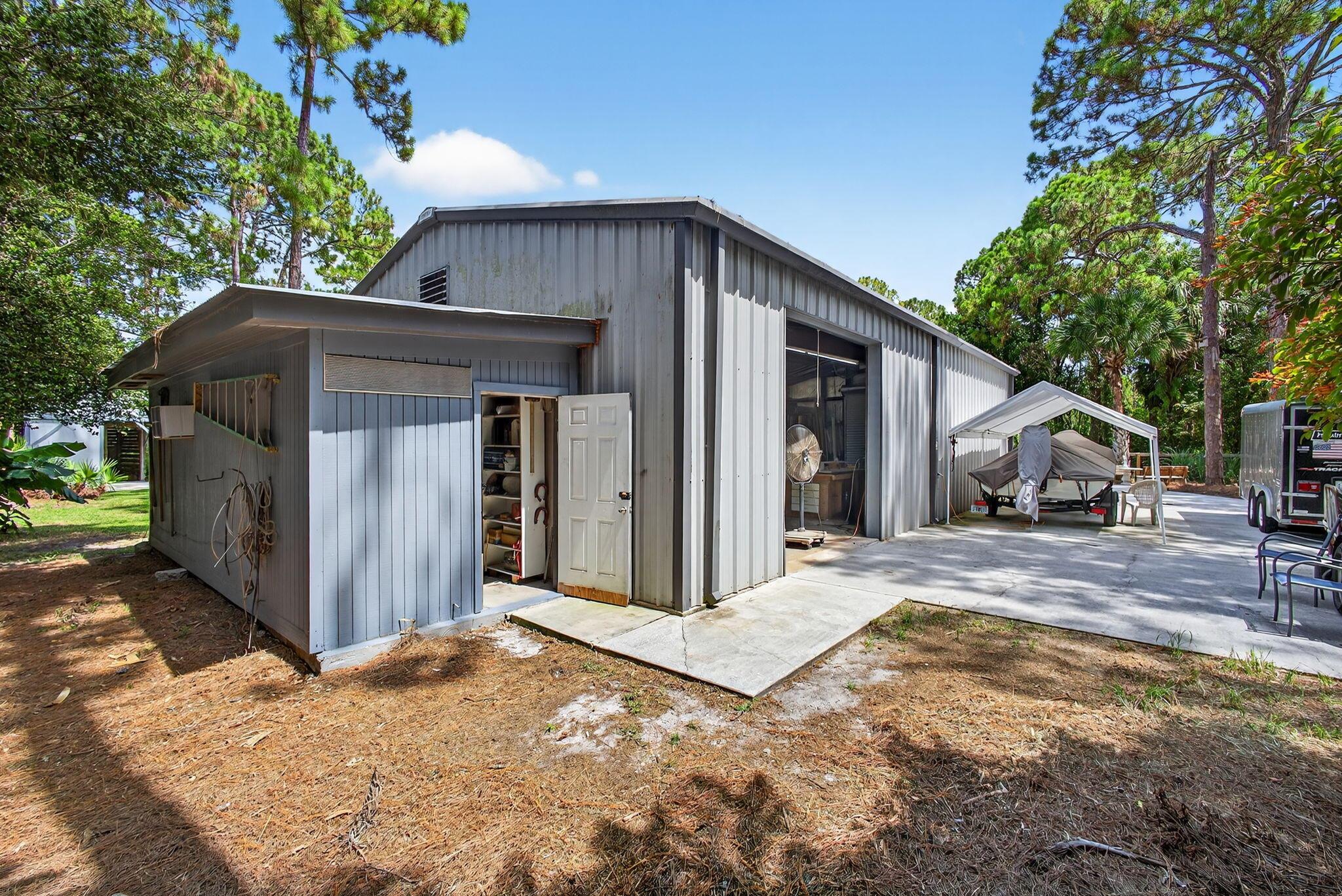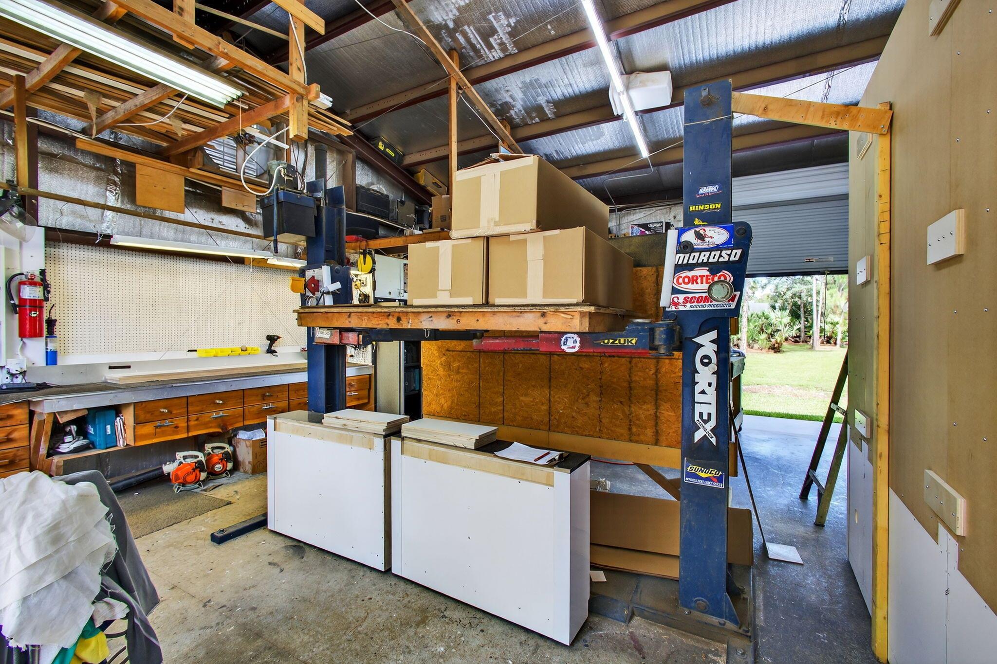 Live the Lox Life at its best! This peaceful sanctuary with over 4000sf(!) combined living, working, & storage space was thoughtfully developed by orig owners. Features rarely available 1500sf STEEL-FRAME BUILDING/WORKSHOP offering limitless use possibilities for business owners, collectors, creatives. Hi ceilings, fans, roll-up doors, & a/c in office create perfect environ to pursue your vocation or passion projects right at home. Open concept 3br, 2ba, split floorplan, CBS construction, nicely updated w/IMPACT WINDOWS, lvp floors, ample cabinets, new primary bath vanity w/dual sinks, int paint, renovated 2-car mechanic garage. Equipment shed, small barn too. All this & NO HOA! On 1.15 acres of lush native trees/flora, come meet nature & make new (hummingbird) friends at YOUR HOME HERE!