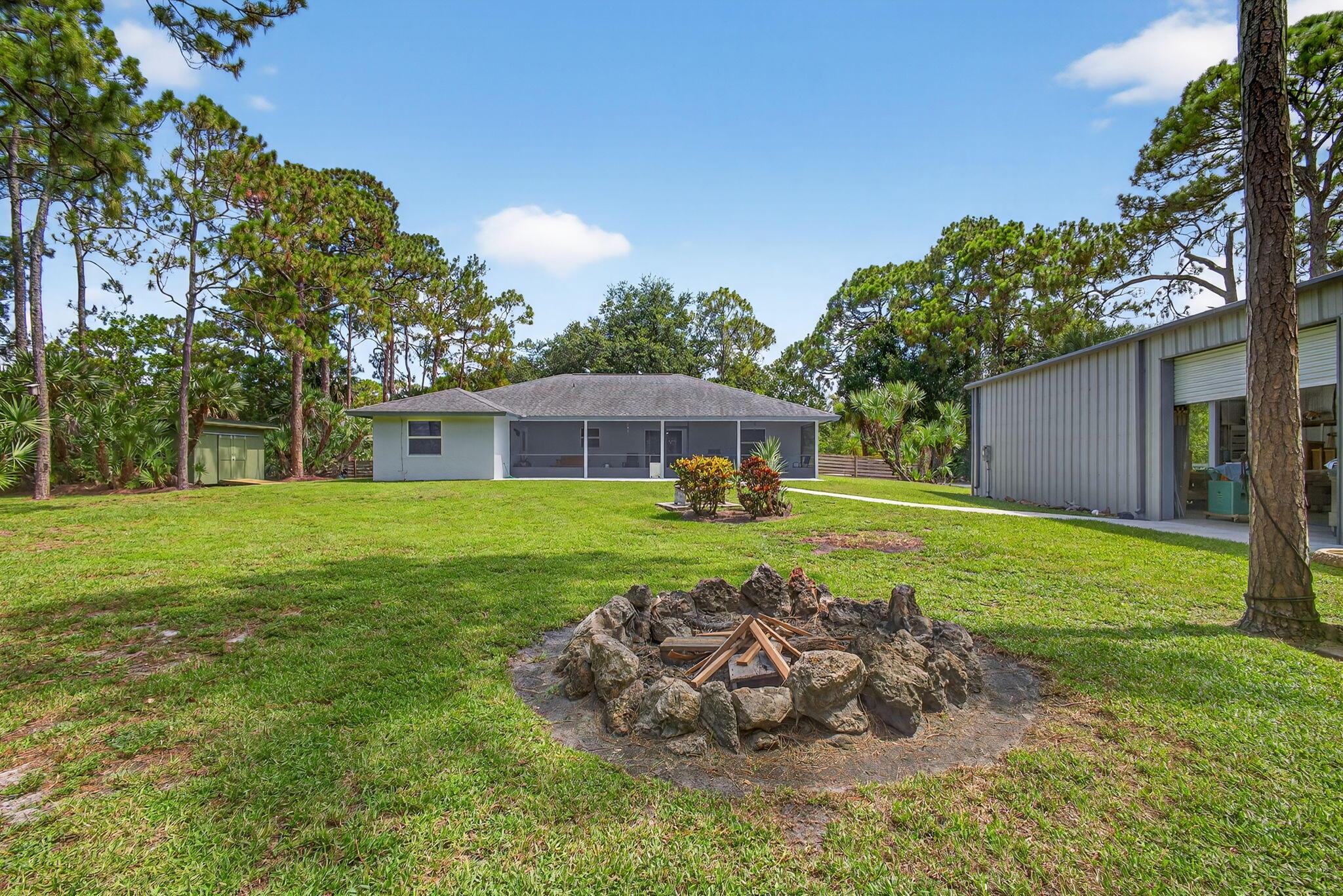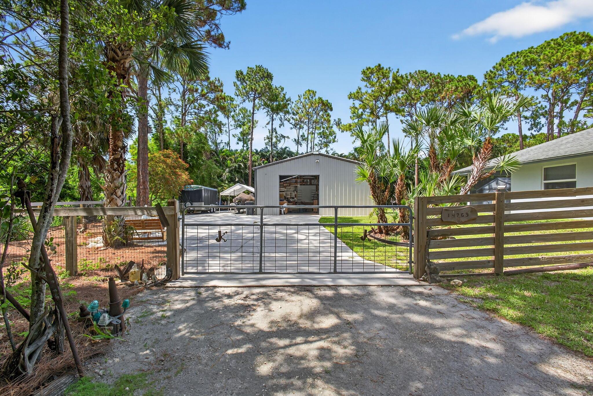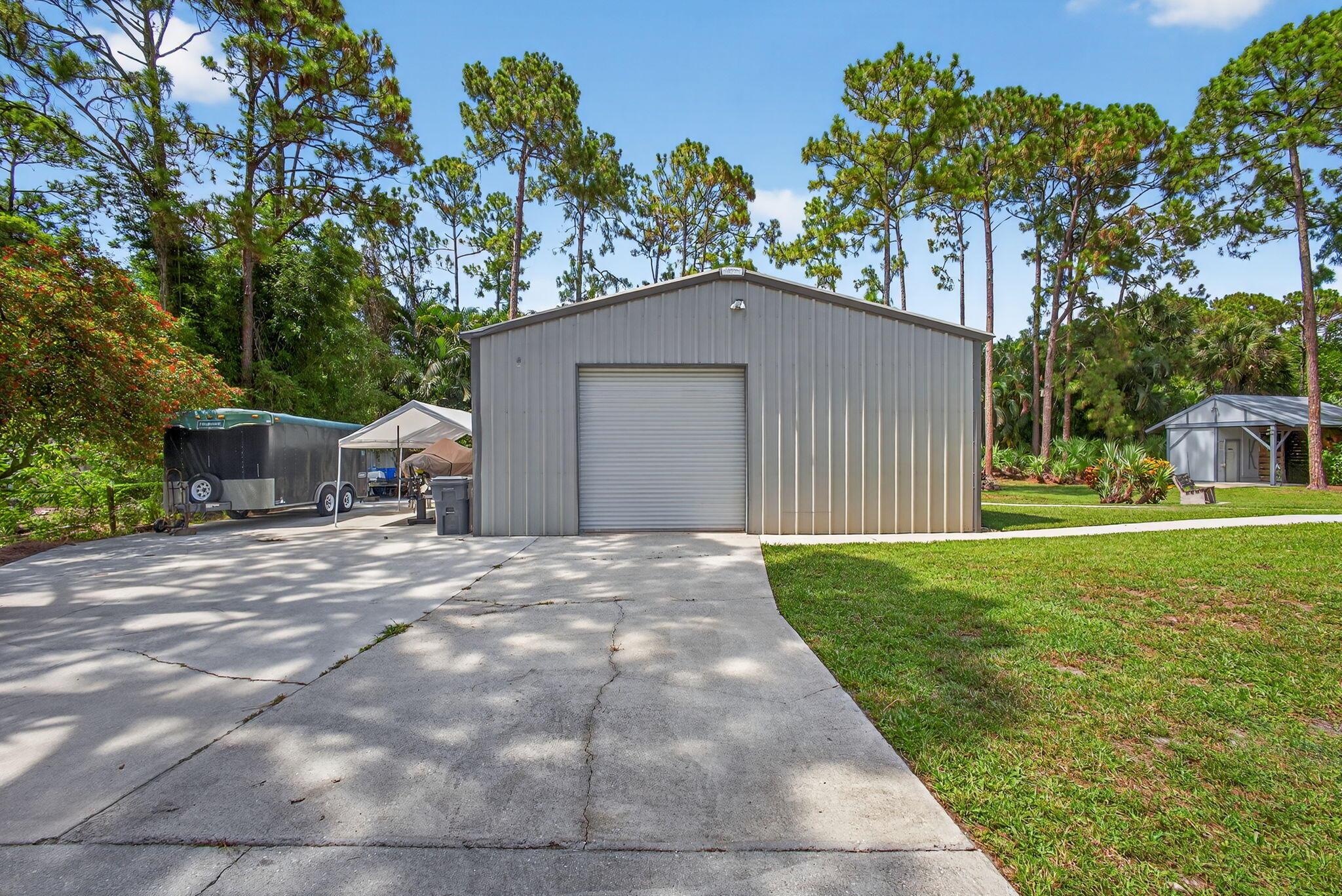 Live the Lox Life at its best! This peaceful sanctuary with over 4000sf(!) combined living, working, & storage space was thoughtfully developed by orig owners. Features rarely available 1500sf STEEL-FRAME BUILDING/WORKSHOP offering limitless use possibilities for business owners, collectors, creatives. Hi ceilings, fans, roll-up doors, & a/c in office create perfect environ to pursue your vocation or passion projects right at home. Open concept 3br, 2ba, split floorplan, CBS construction, nicely updated w/IMPACT WINDOWS, lvp floors, ample cabinets, new primary bath vanity w/dual sinks, int paint, renovated 2-car mechanic garage. Equipment shed, small barn too. All this & NO HOA! On 1.15 acres of lush native trees/flora, come meet nature & make new (hummingbird) friends at YOUR HOME HERE!