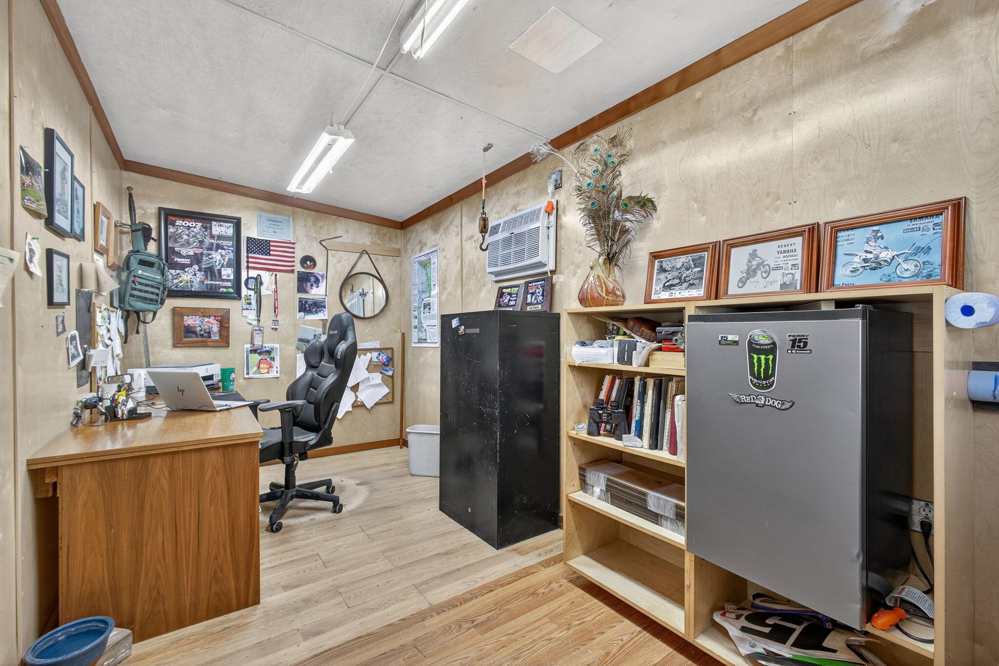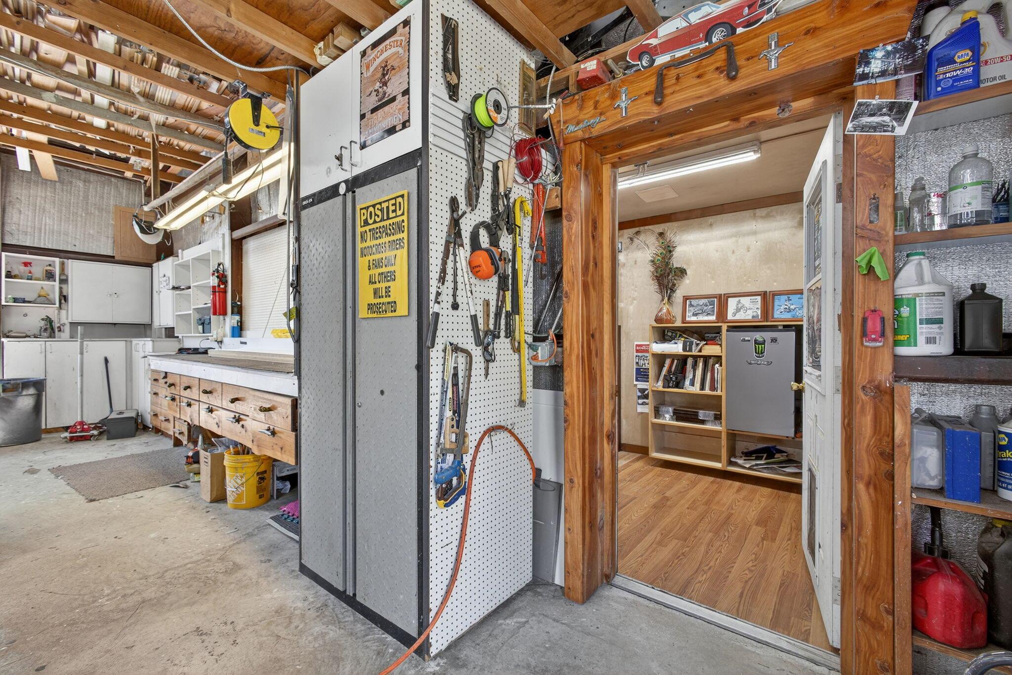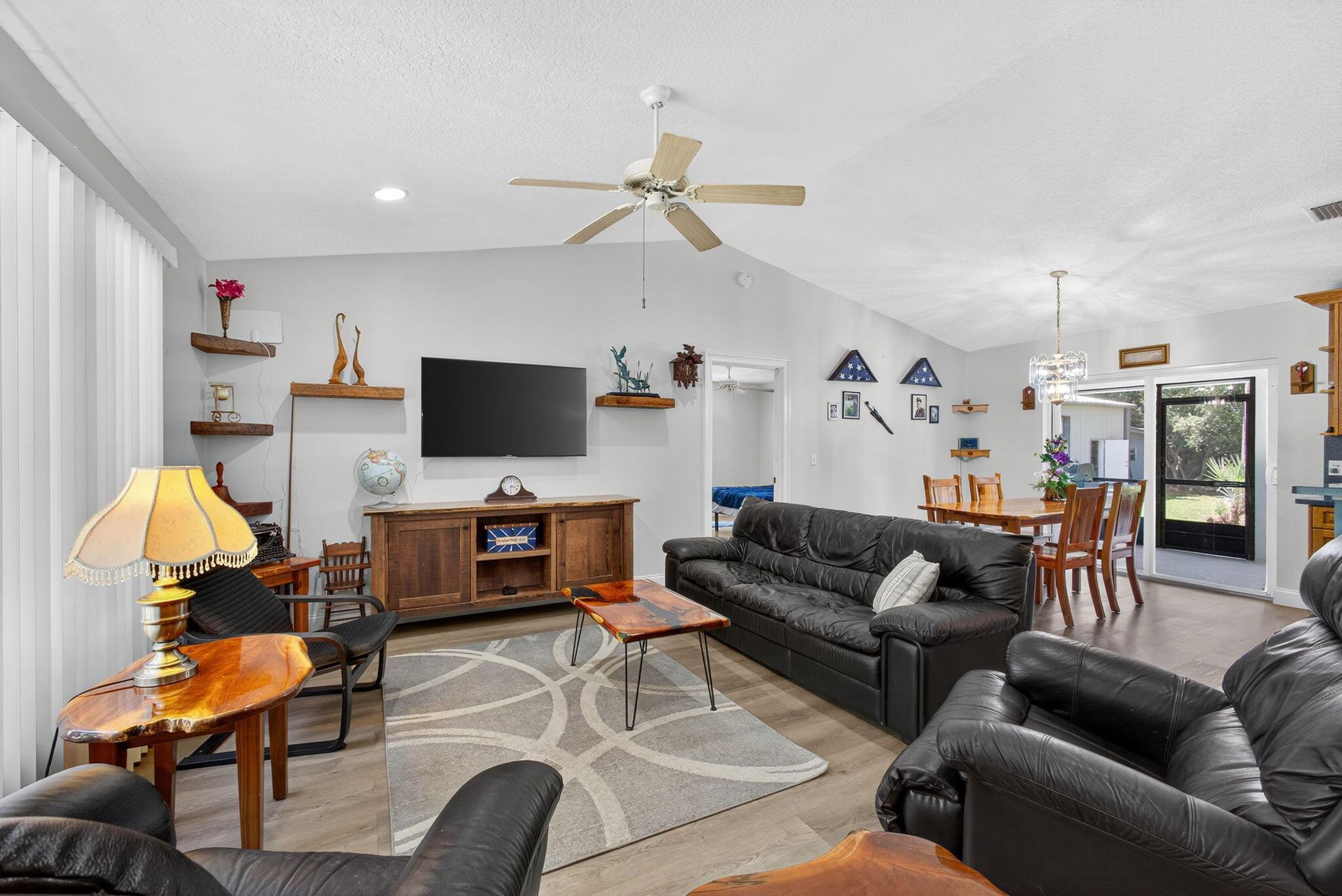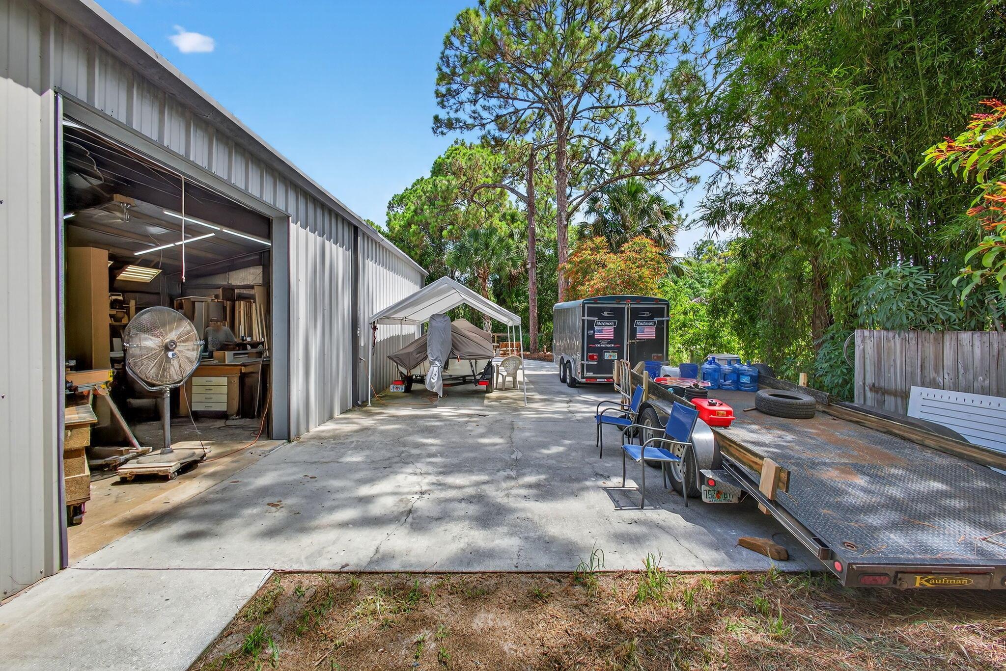 Live the Lox Life at its best! This peaceful sanctuary with over 4000sf(!) combined living, working, & storage space was thoughtfully developed by orig owners. Features rarely available 1500sf STEEL-FRAME BUILDING/WORKSHOP offering limitless use possibilities for business owners, collectors, creatives. Hi ceilings, fans, roll-up doors, & a/c in office create perfect environ to pursue your vocation or passion projects right at home. Open concept 3br, 2ba, split floorplan, CBS construction, nicely updated w/IMPACT WINDOWS, lvp floors, ample cabinets, new primary bath vanity w/dual sinks, int paint, renovated 2-car mechanic garage. Equipment shed, small barn too. All this & NO HOA! On 1.15 acres of lush native trees/flora, come meet nature & make new (hummingbird) friends at YOUR HOME HERE!