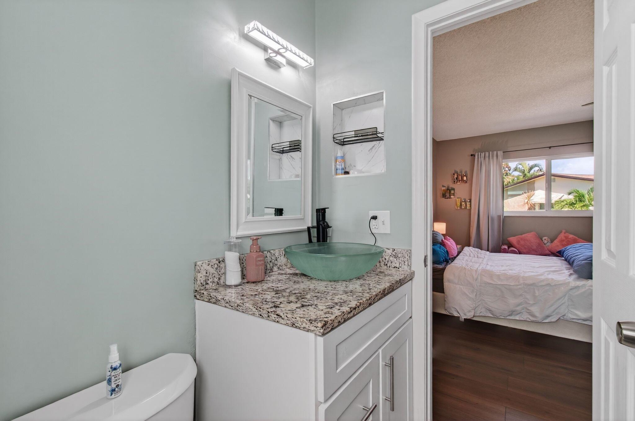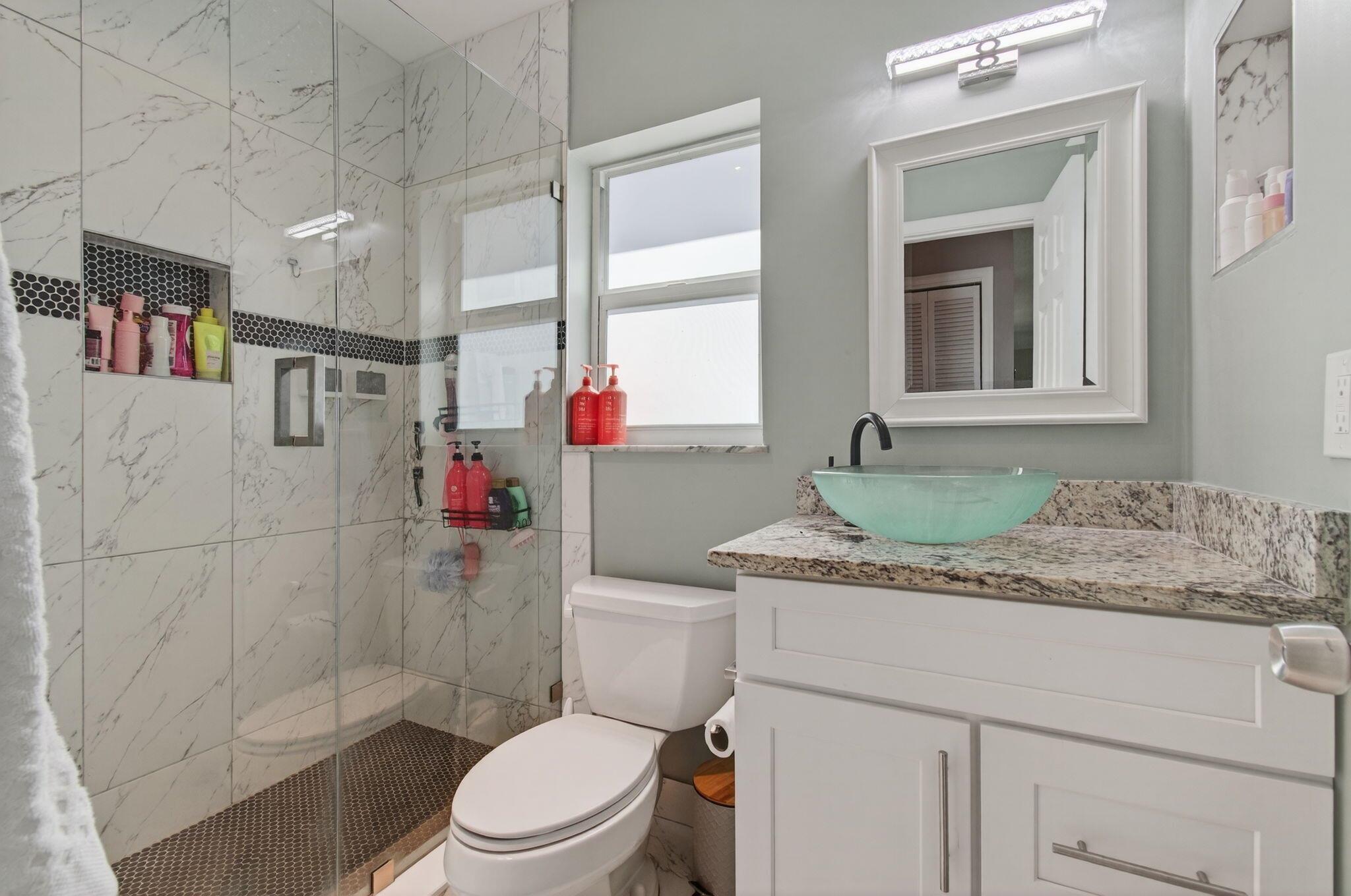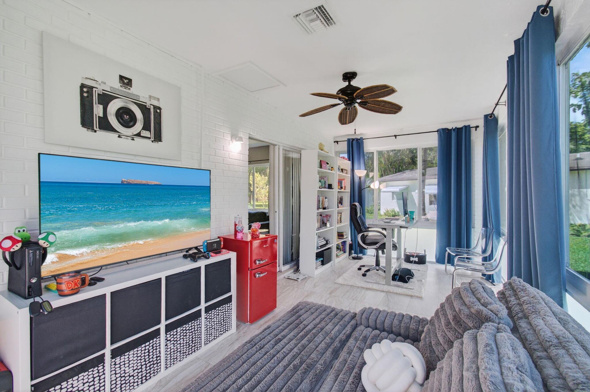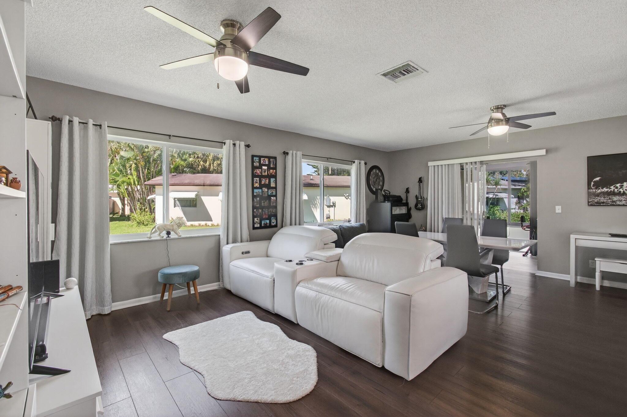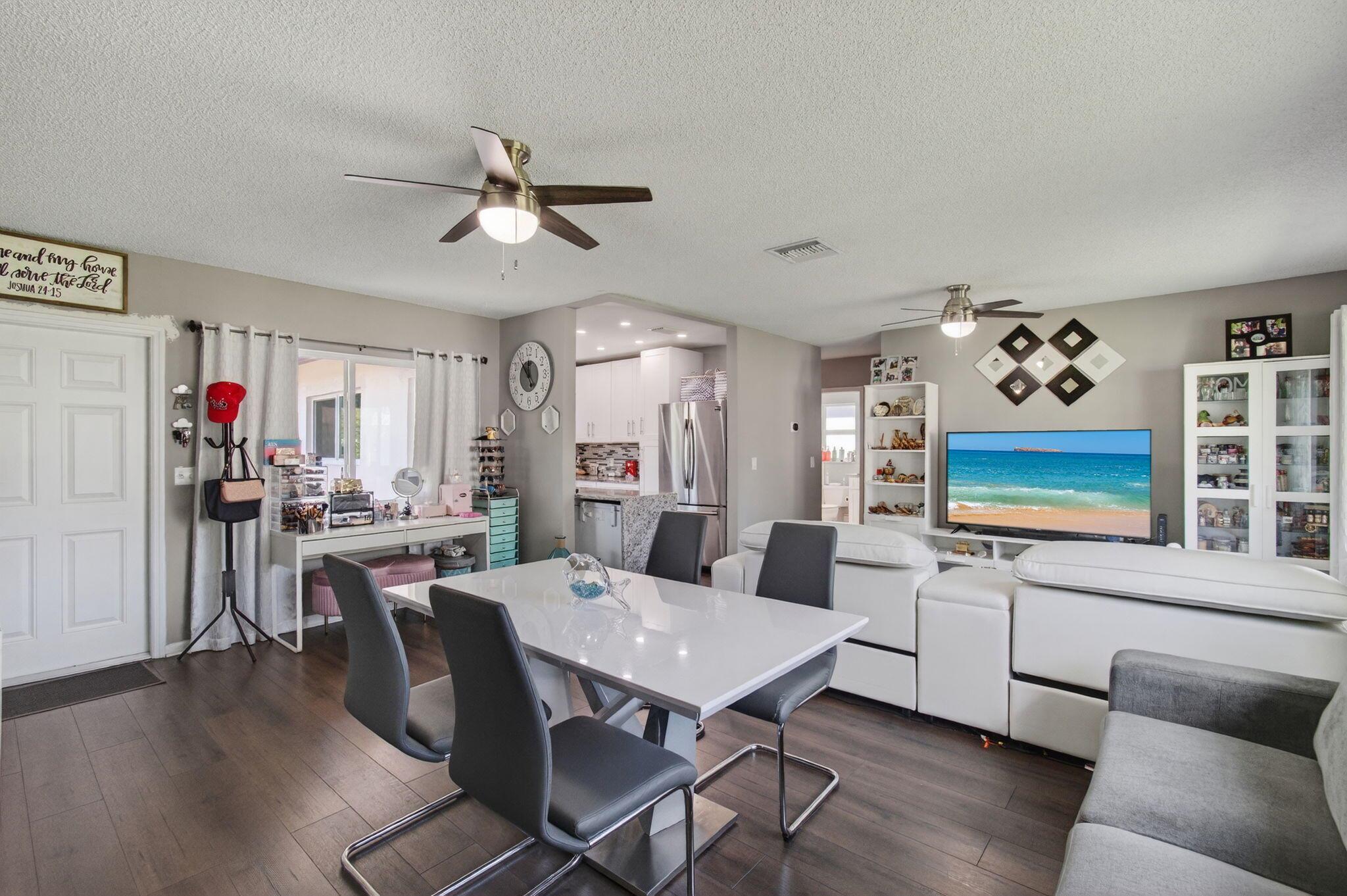 This spacious and beautifully maintained 2-bedroom + Bonus Room home offers the perfect blend of comfort and coastal charm minutes from the beach. The bright, open layout features a large, enclosed Florida room that's an ideal bonus space and can be used as a home office, den, or additional living that brings in great natural light. Enjoy a renovated kitchen with granite countertops and custom white cabinets. This home has new flooring throughout, designer fixtures, and updated bathrooms. Freshly painted inside and out. You will love the patio with lush landscaping and clean curb appeal. Major updates include NEW impact windows, A/C (2020), and appliances all within the last 5 years, making this home truly move-in ready.