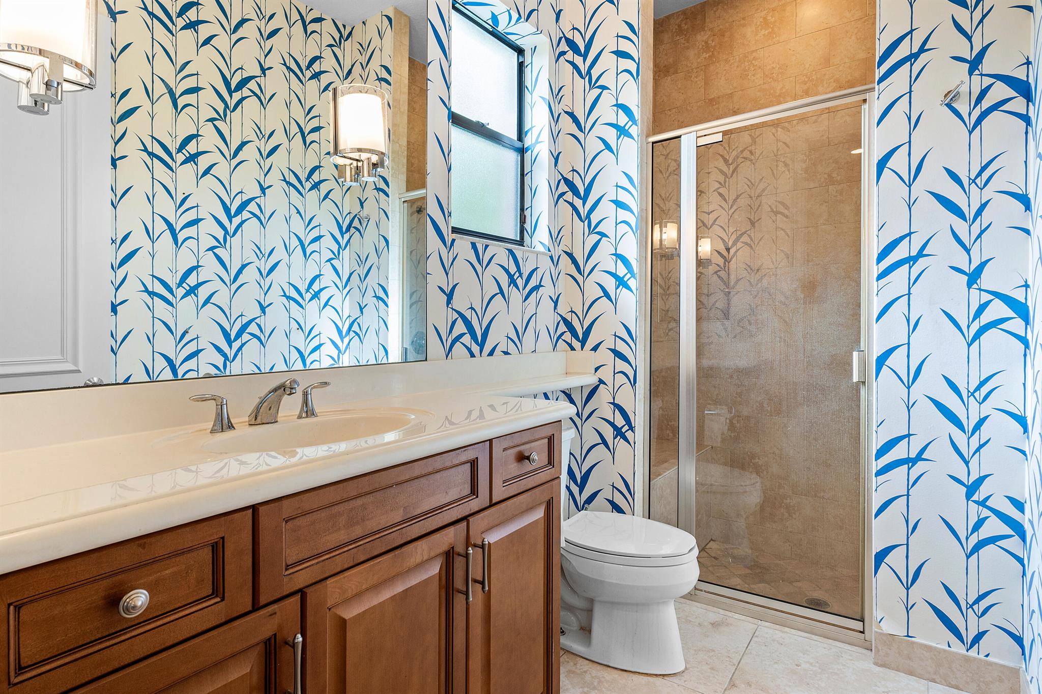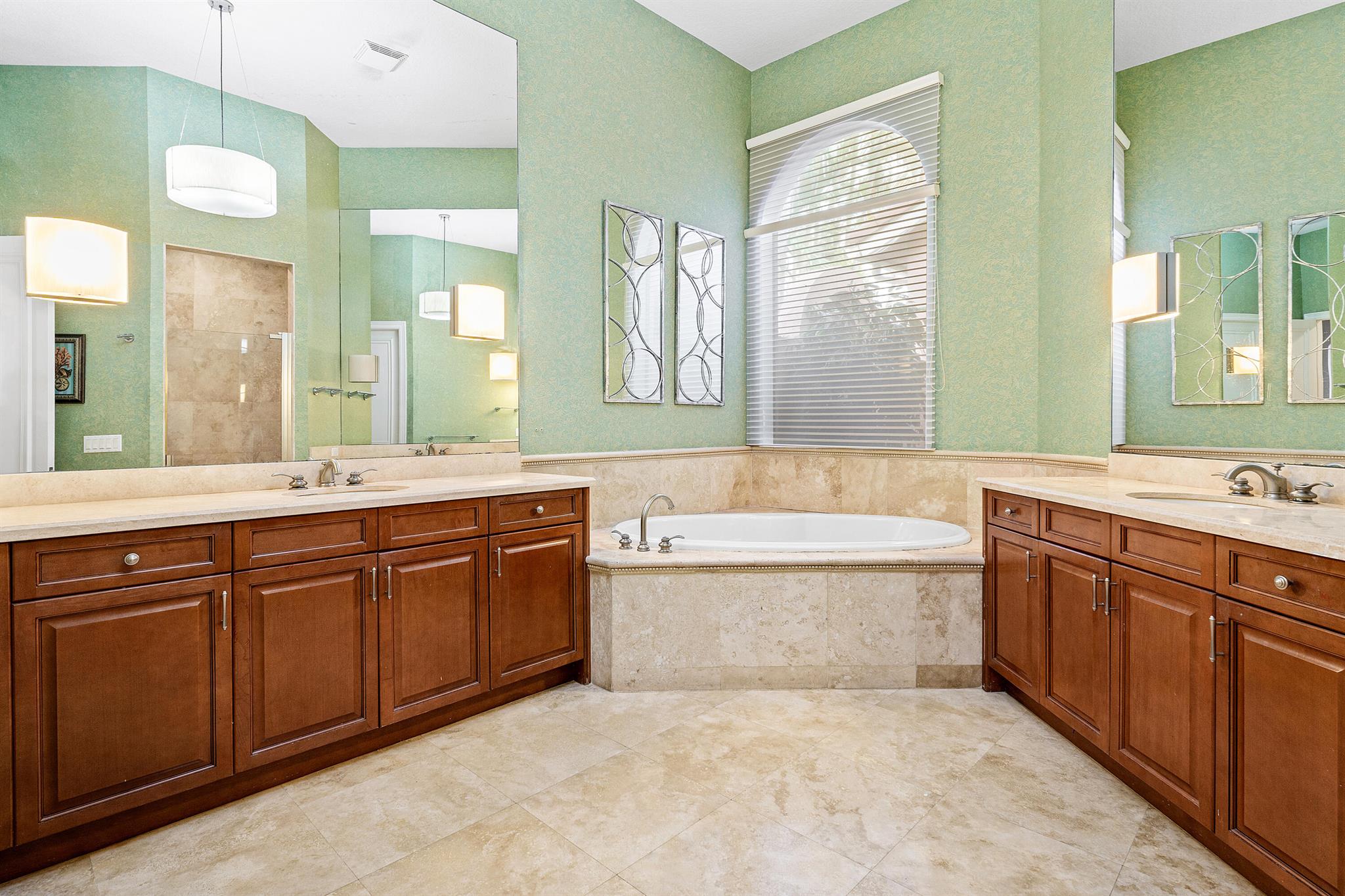 Lowest Price in the Oaks!! Amazing value! charming Martinique is on a prime private lake lot and features 3 en-suite bedrooms plus a library/4th bedroom, 3 full and 1 half baths - all on one single level, w/ a triple-split floor plan including a private guest house. Highlights include marble floors thru-out the main living areas, wood floors in the office, a gourmet chef's kitchen with wood cabinetry, granite countertops, & is open to a spacious family room. Designer appointments include architectural millwork, light fixtures, and artistic details. The primary features dual walk-in closets, and a luxurious primary bath w/ separate vanities including a makeup vanity. With a heated pool surrounded by tropical landscaping, enjoy unmatched privacy and style in this lakefront gem