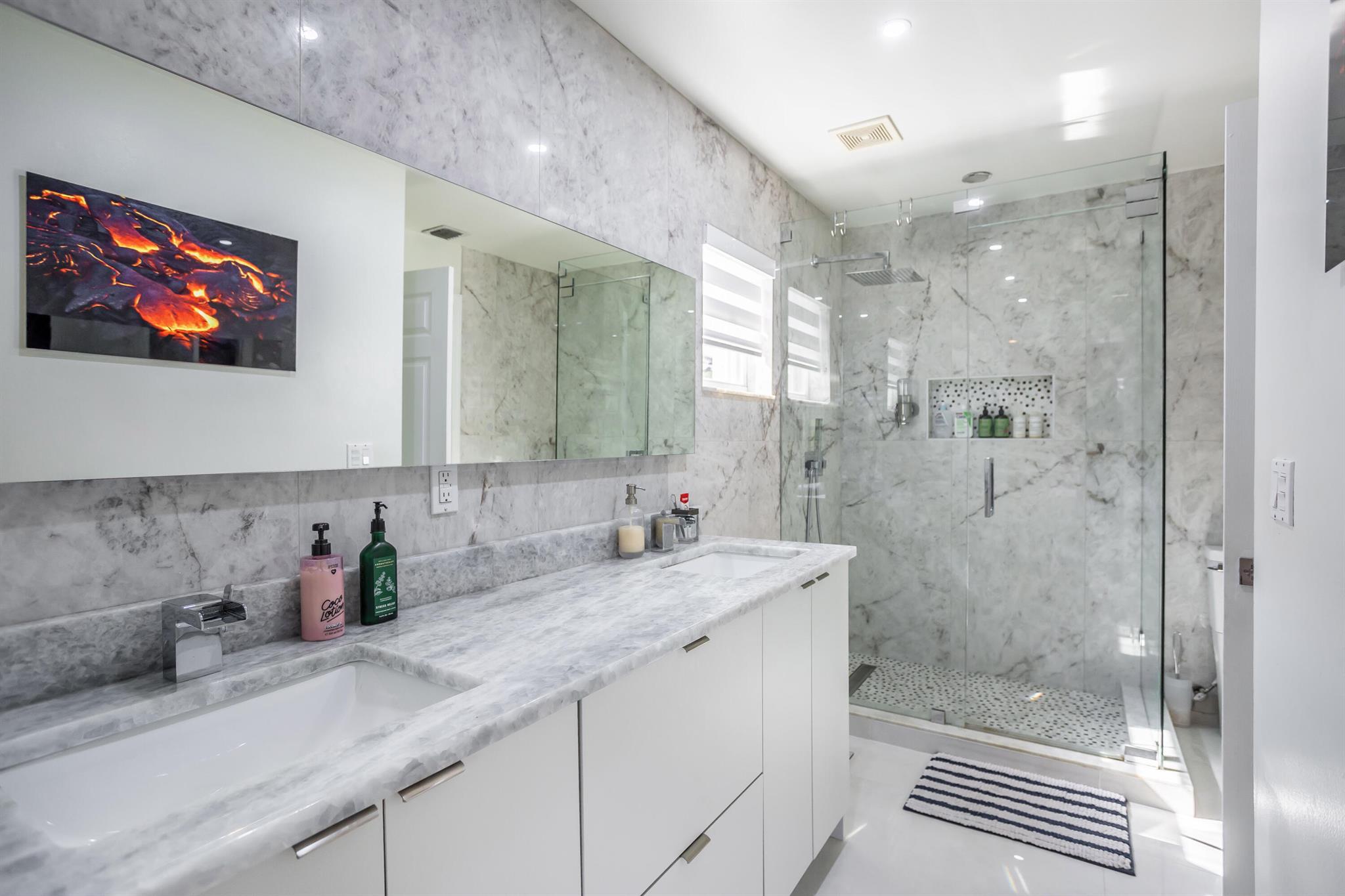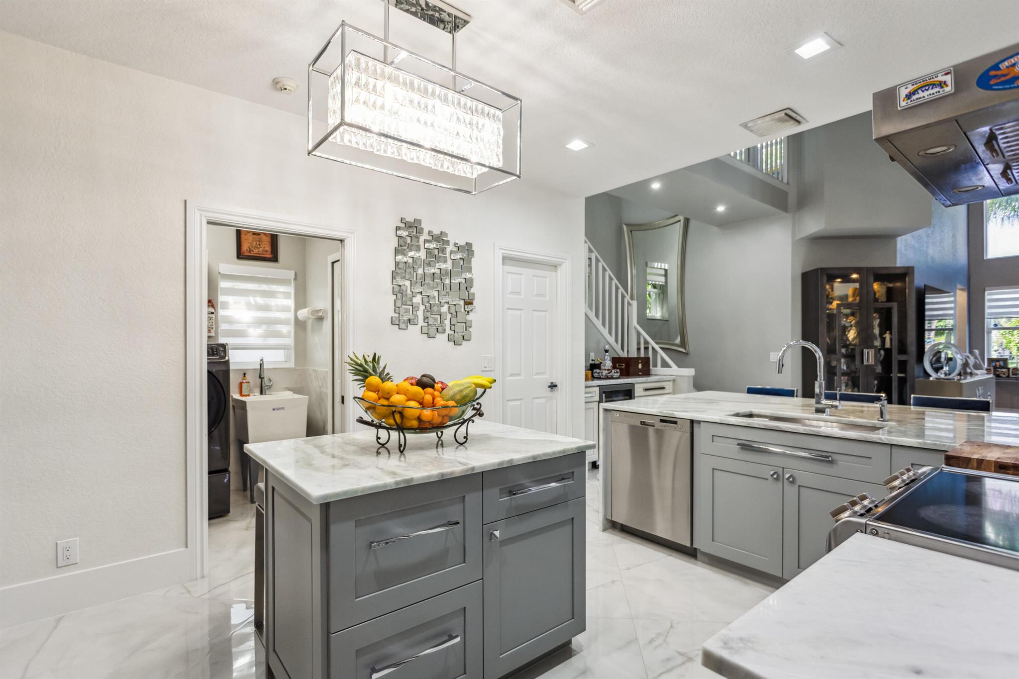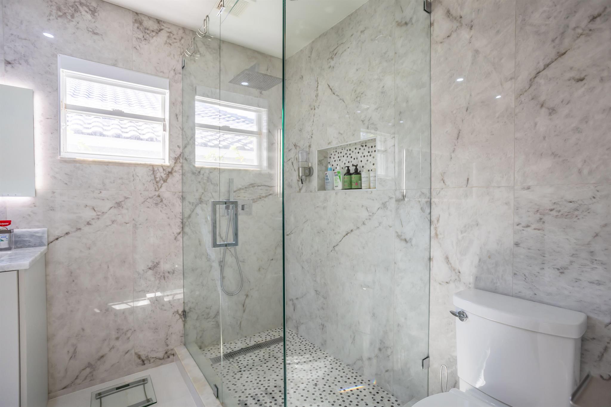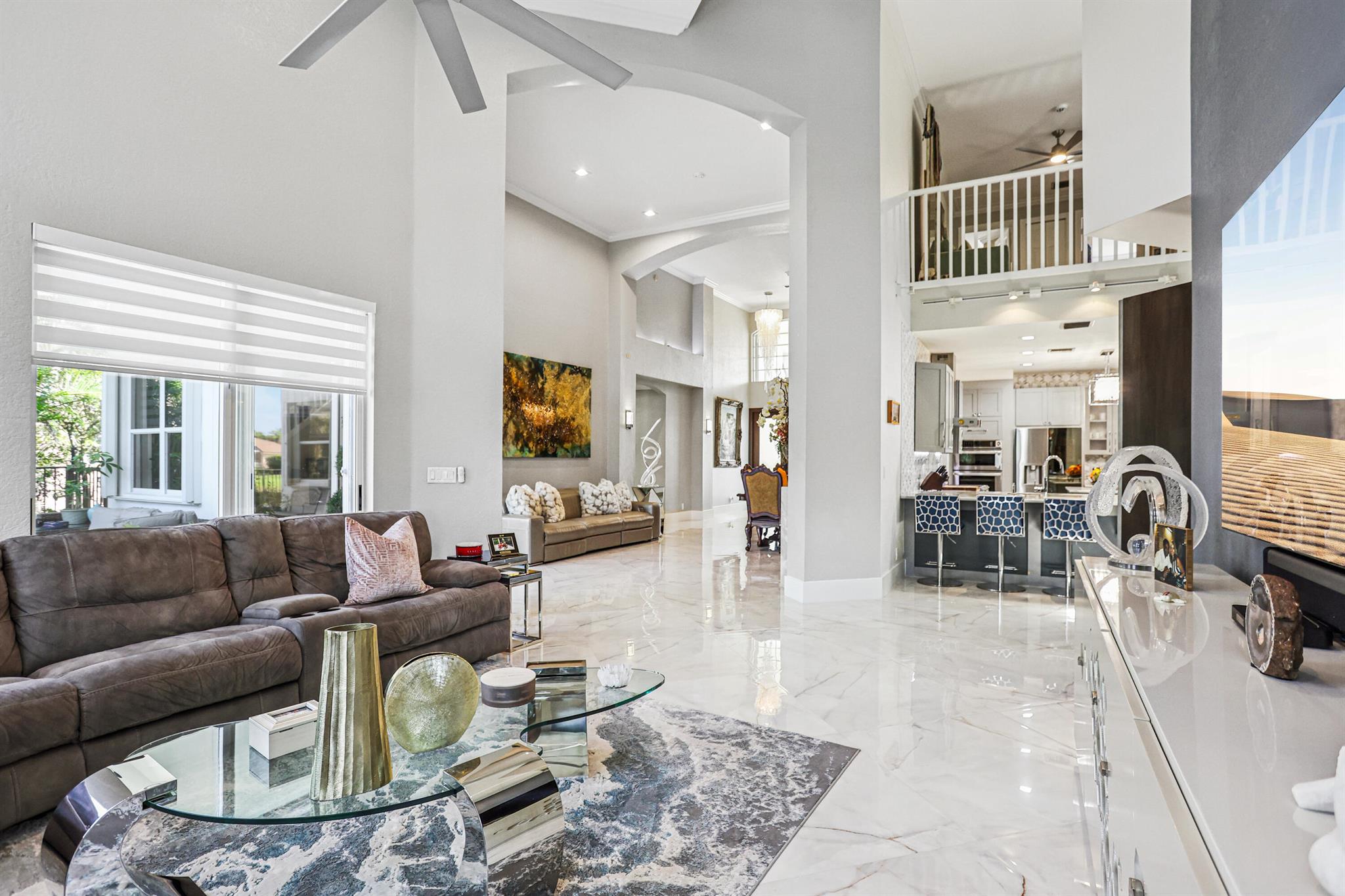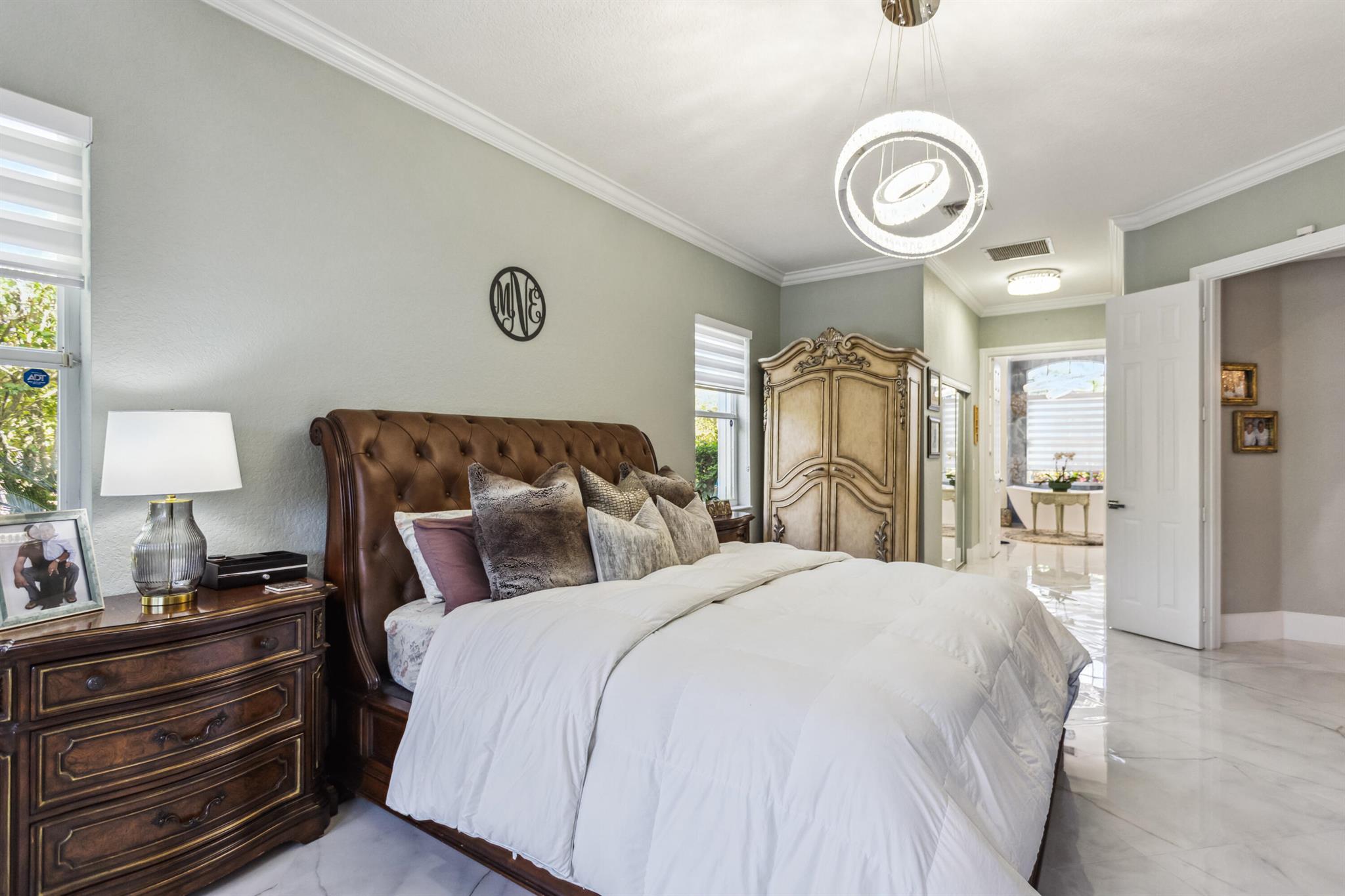 Step into timeless sophistication in this fully updated 4-bedroom + bonus room lakefront pool home in the prestigious gated community of Boca Falls. Tucked on a serene lot with no front neighbors, this residence blends luxury, comfort, and privacy. Inside, enjoy soaring ceilings, ceramic tile flooring throughout the main floor, and real wood floors upstairs. The bonus room includes a closet and offers versatility as a home office, guest suite, gym, or playroom. The chef's kitchen boasts quartzite countertops, premium appliances, and custom cabinetry. The primary suite features a spa-inspired bath and custom closets, while all bathrooms showcase upscale finishes and rainfall shower systems. Outdoors, relax or entertain by the resort-style PebbleTec pool and travertine patio.
