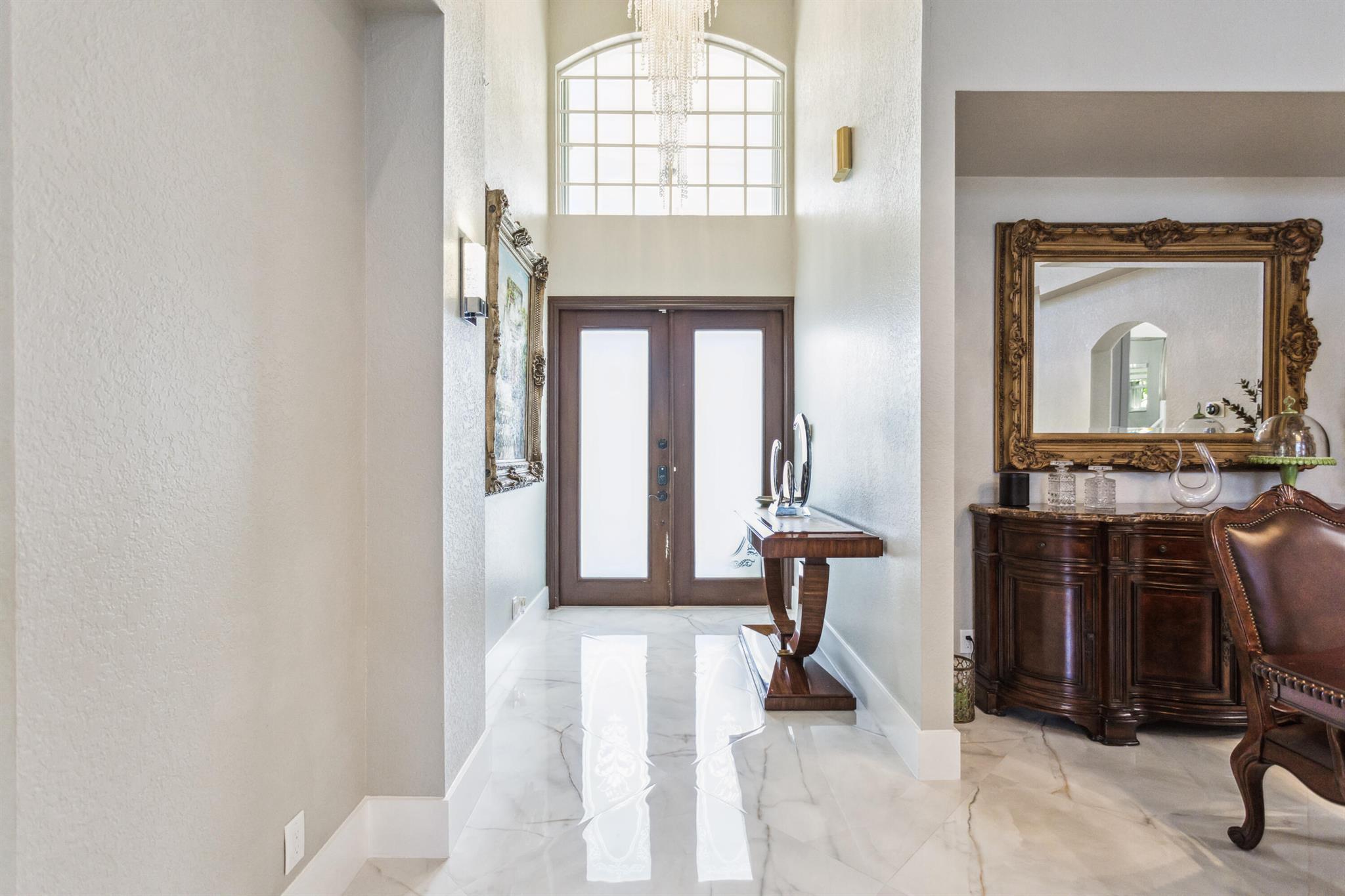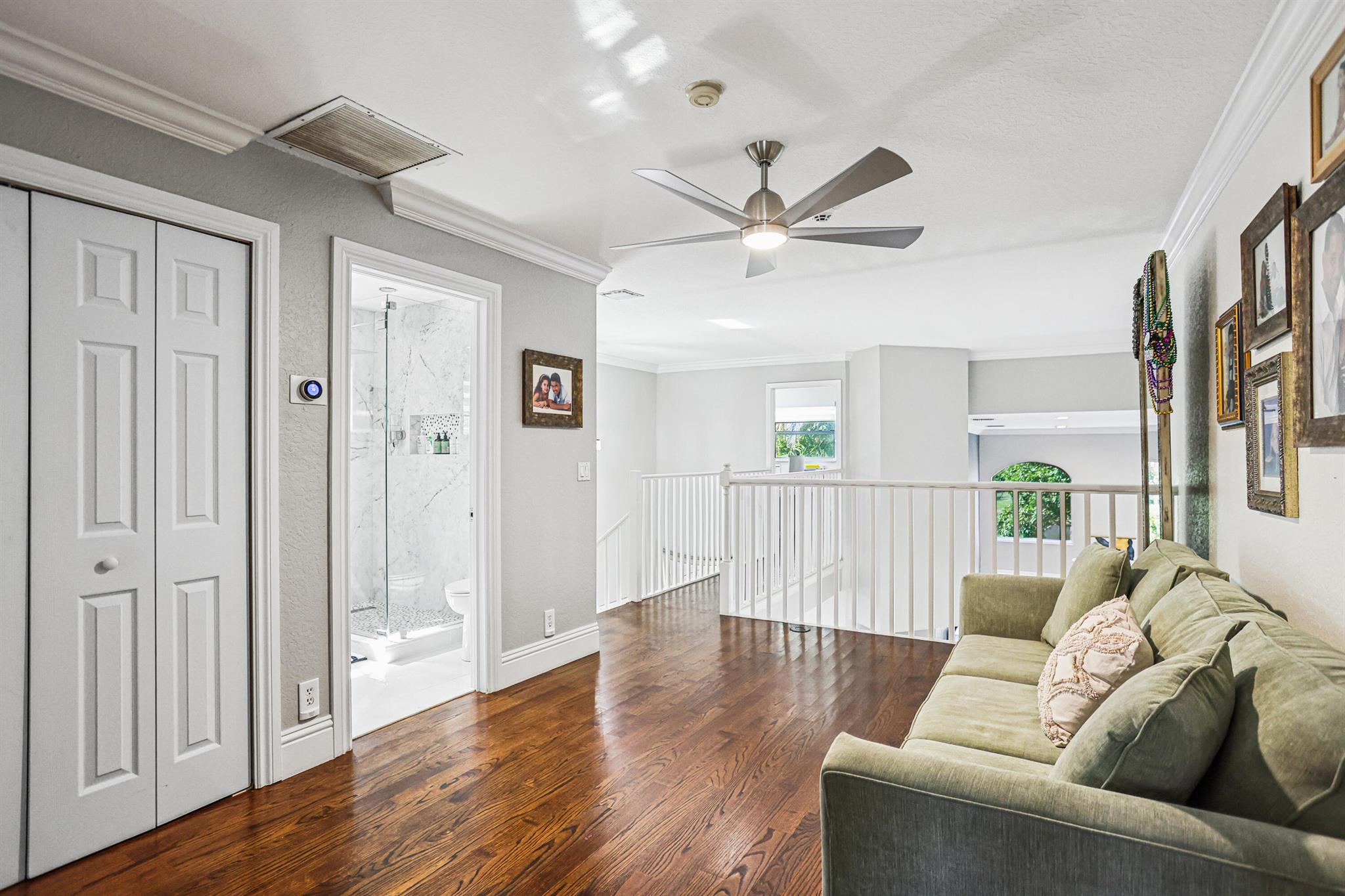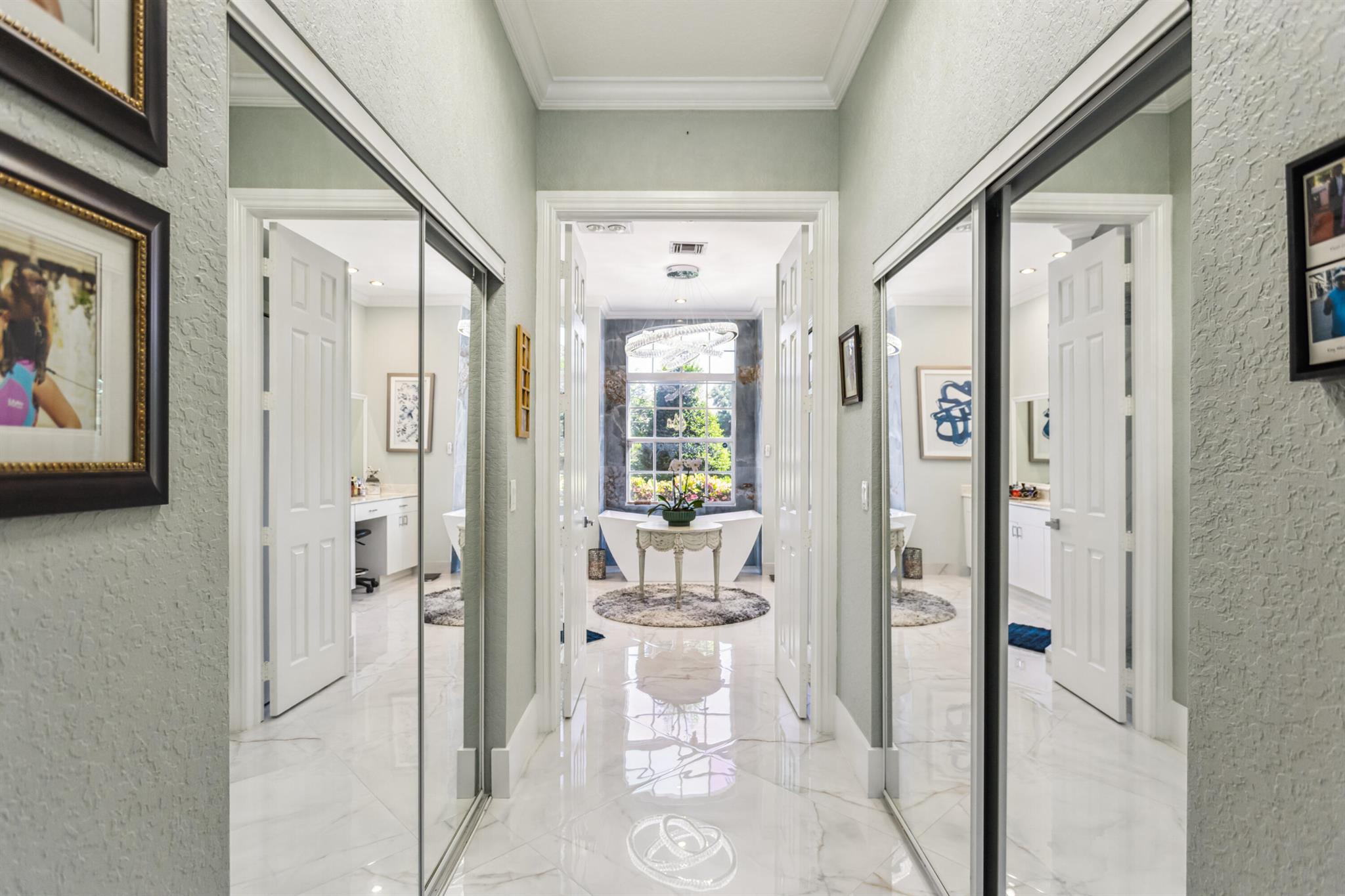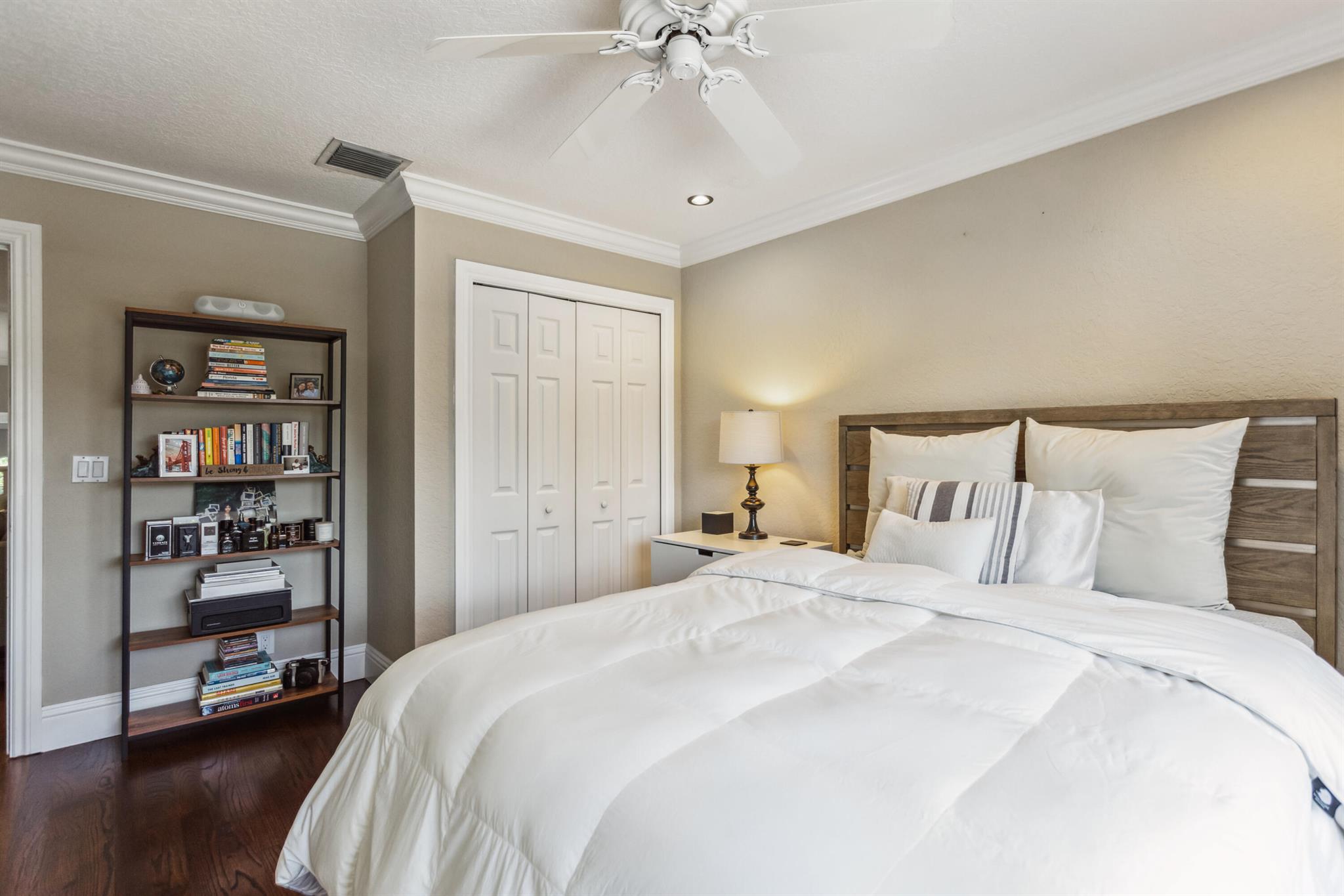 Step into timeless sophistication in this fully updated 4-bedroom + bonus room lakefront pool home in the prestigious gated community of Boca Falls. Tucked on a serene lot with no front neighbors, this residence blends luxury, comfort, and privacy. Inside, enjoy soaring ceilings, ceramic tile flooring throughout the main floor, and real wood floors upstairs. The bonus room includes a closet and offers versatility as a home office, guest suite, gym, or playroom. The chef's kitchen boasts quartzite countertops, premium appliances, and custom cabinetry. The primary suite features a spa-inspired bath and custom closets, while all bathrooms showcase upscale finishes and rainfall shower systems. Outdoors, relax or entertain by the resort-style PebbleTec pool and travertine patio.