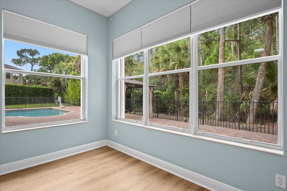 Nestled in the exclusive enclave of Worthington Estates, this stunning cul-de-sac pool home offers unparalleled elegance & privacy. Backing onto a serene, wooded preserve, the residence boasts a spacious layout with soaring ceilings & an abundance of natural light. With 7 generously sized bedrooms, 4 full baths & 1 half bath, the home ensures ample space for family & guests. The chef's dream kitchen features premium granite countertops, custom cabinetry, & top-of-the-line appliances, perfect for culinary enthusiasts. Enjoy the expansive family room & formal dining areas that provide versatile spaces for relaxation & entertaining. The luxurious master suite offers a private stone balcony, a spacious sitting area, & a spa-like ensuite bath, creating a a serene retreat. Step outside to a