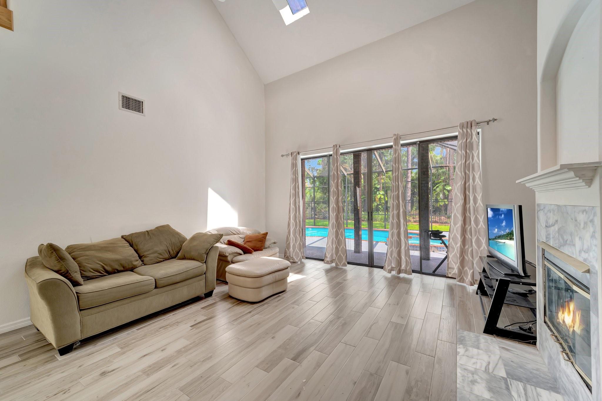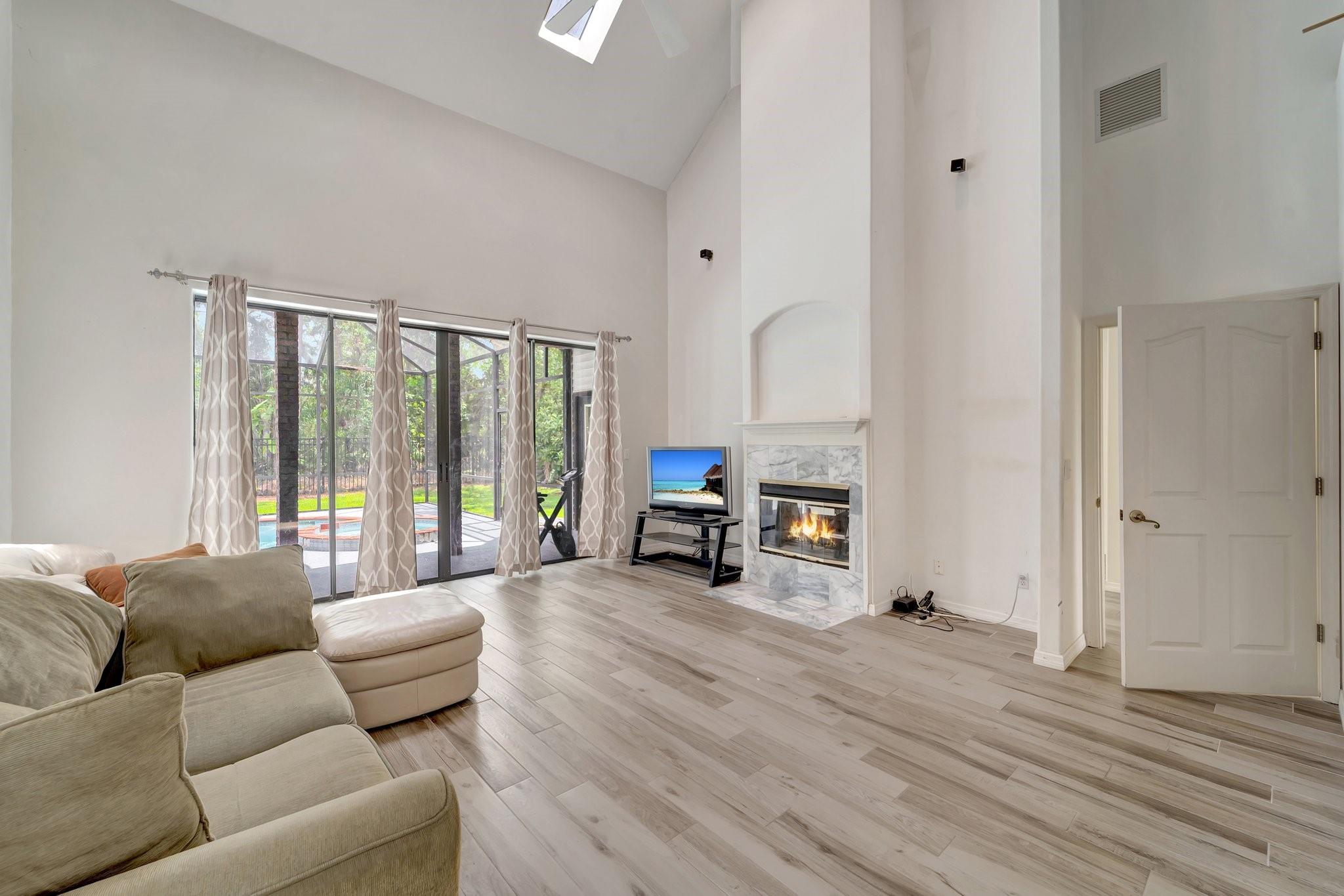 Stunning 4BR/2.5BA pool home with 4-car garage in highly desirable Sarasota location, backing to Conservatory Park with no Neighbours. This 2-story home offers an open layout with high ceilings, a cozy fireplace, and natural light throughout. The kitchen features granite countertops stainless steel appliances. Step outside to your private screened pool. Enjoy peace and privacy while being just minutes to beaches, shopping, dining. Don't miss this incredible opportunity to live in one of Sarasota's most tranquil and convenient neighborhoods.