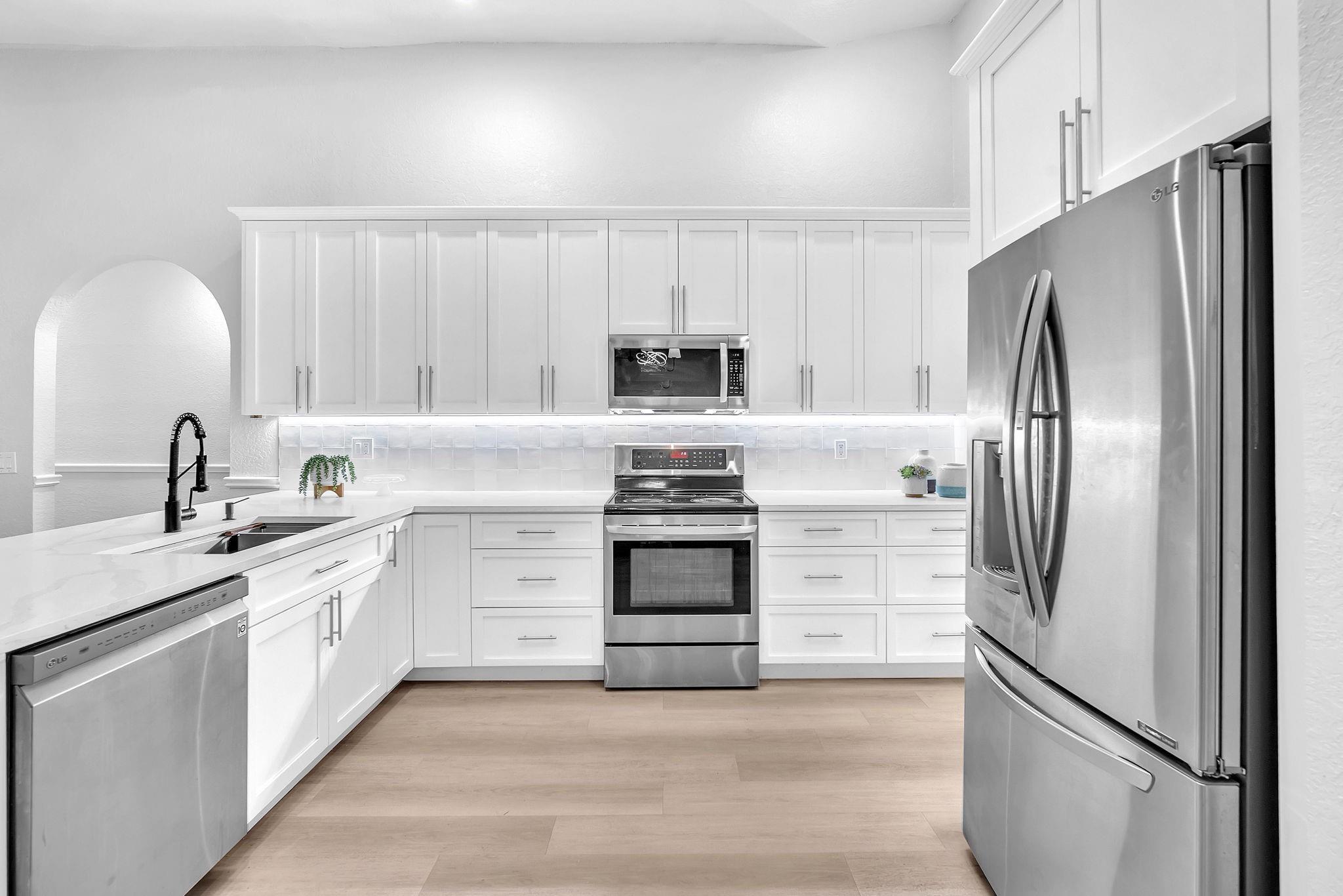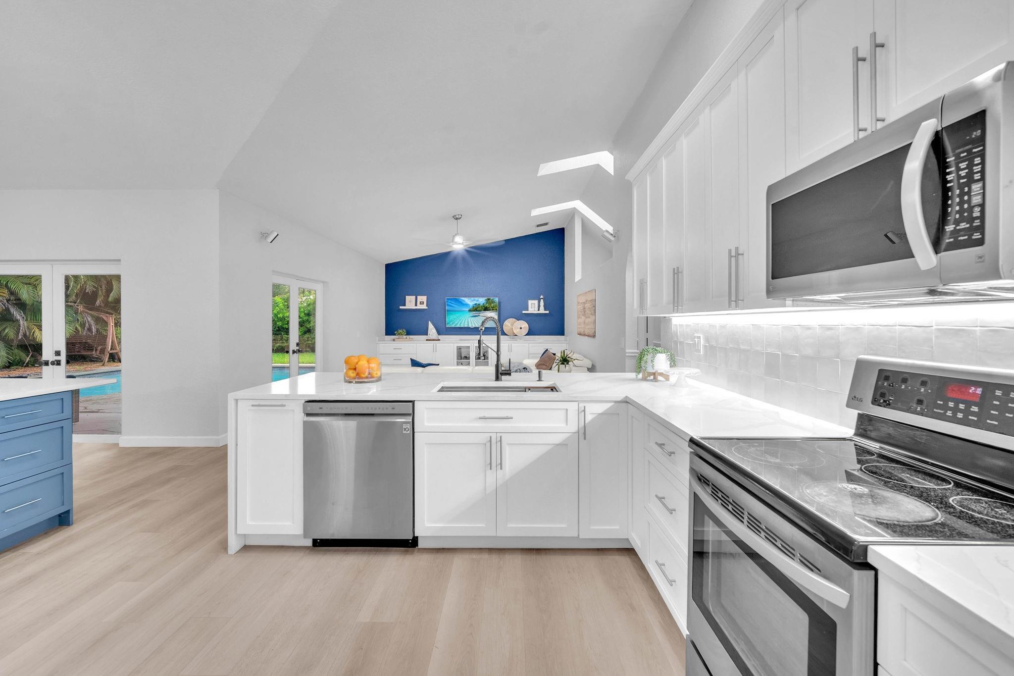 Professional Pics coming soon. Beautifully remodeled 1 story home with circular driveway and pool. Vaulted ceilings. Professionally designed open kitchen was recently remodeled with upgraded 42 inch wood cabinets, quartz countertops, handmade tile backsplash, and stainless steel appliances. Double Island with 8 + seating. Master bath recently remodeled with soak in tub, separate shower and double vanity. Large pool and yard with cabana bathroom. Family Room remodeled with built in entertainment area boasting gorgeous view of pool area. Large Open Dining and Living Room with vaulted ceilings. Split 1 story plan. Beautiful community in Coral Springs within walking distance to shopping and restaurants.