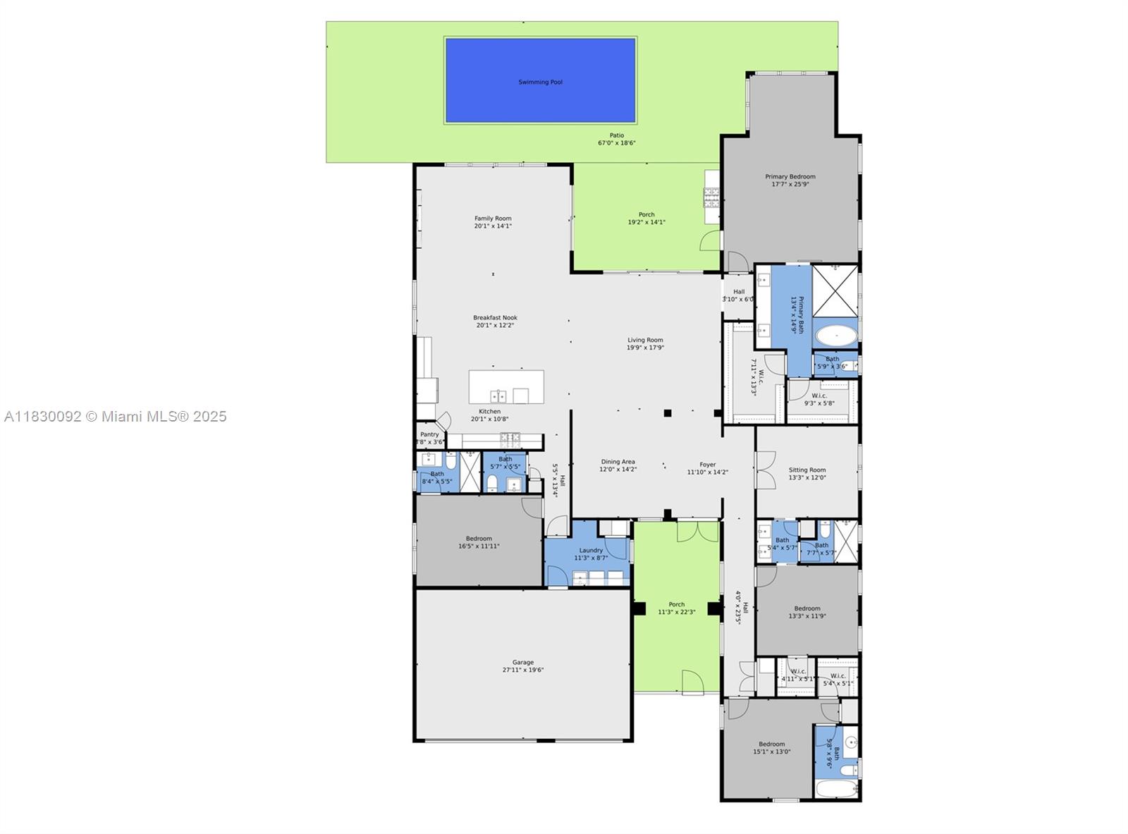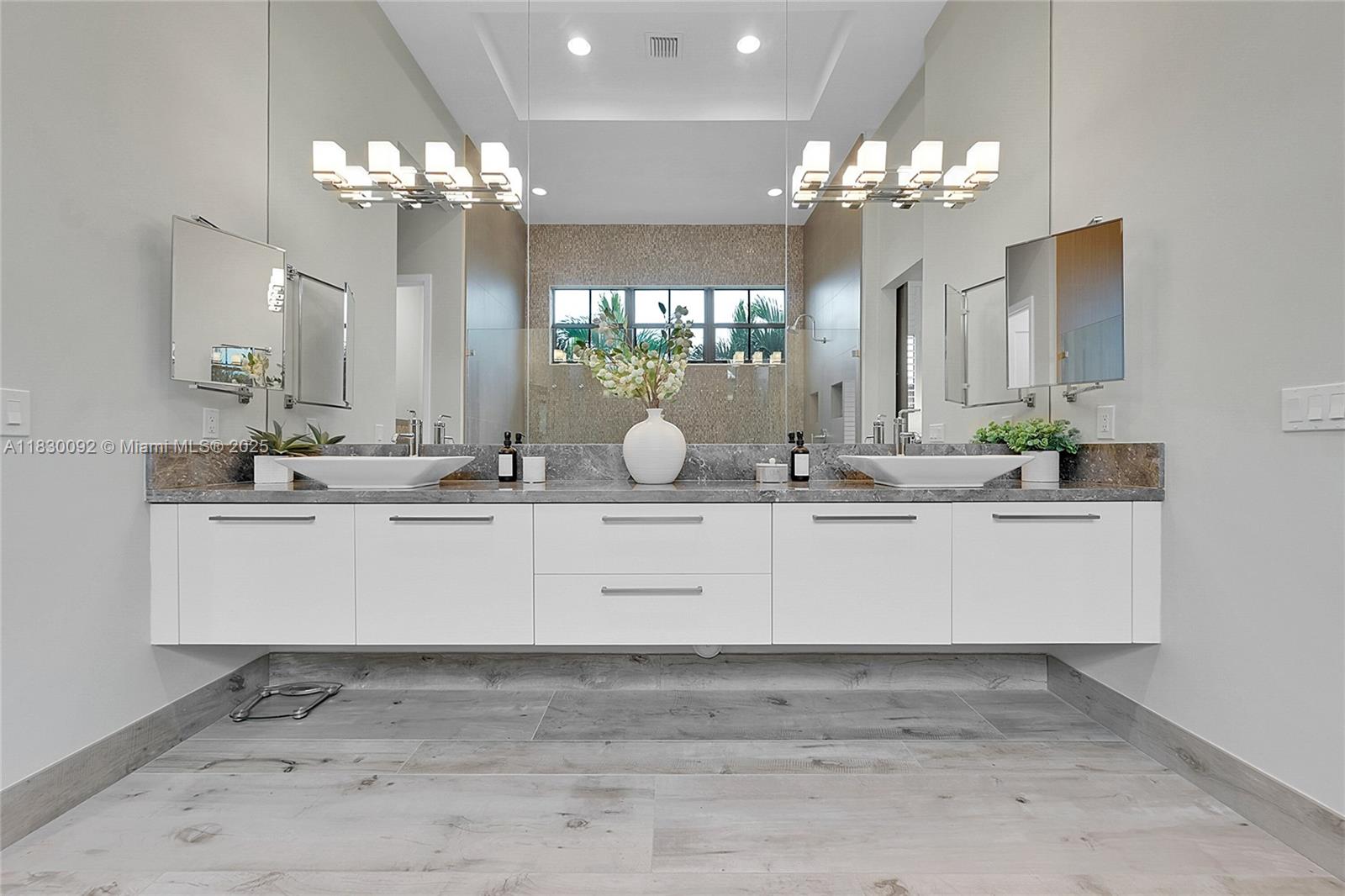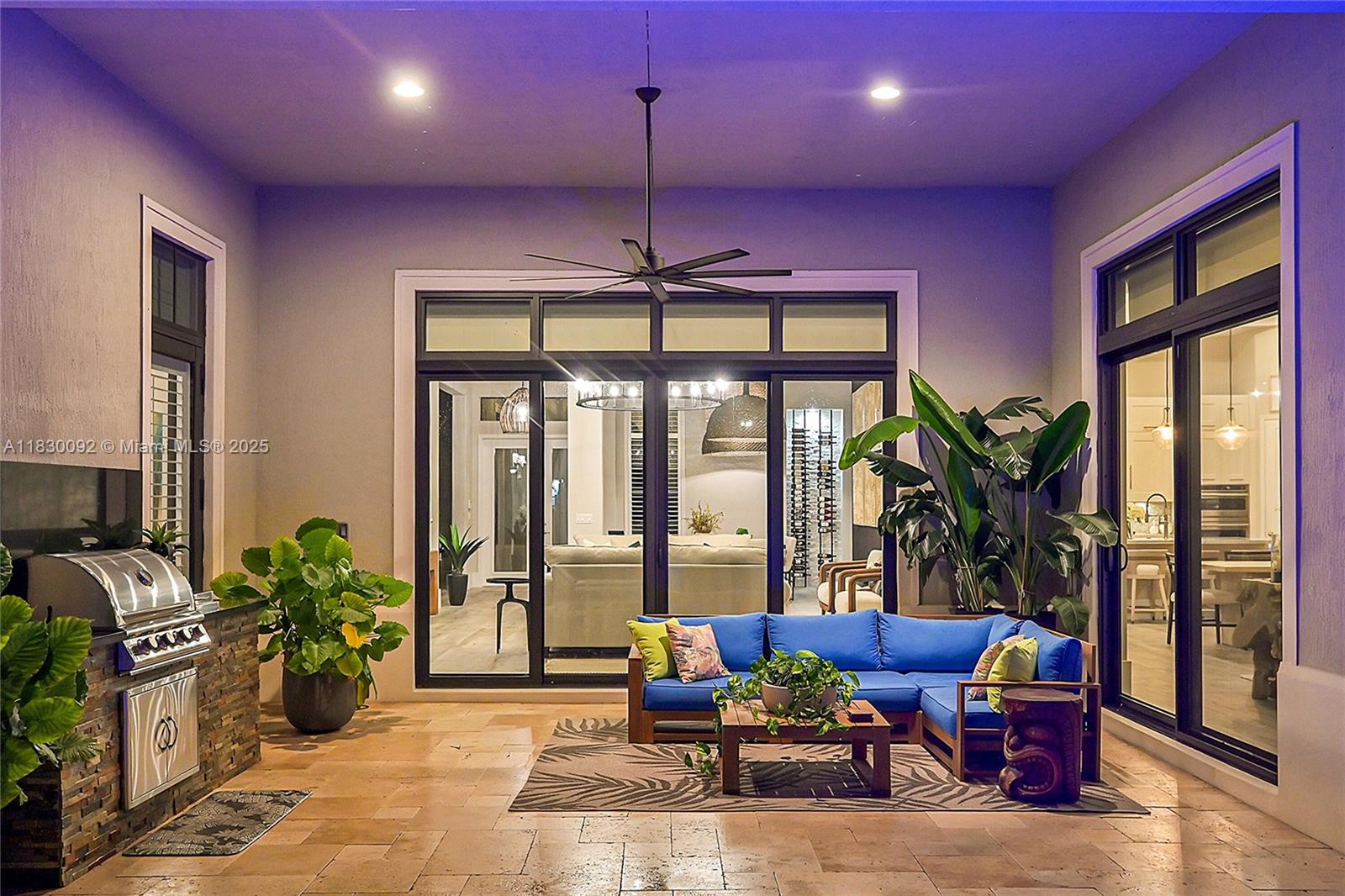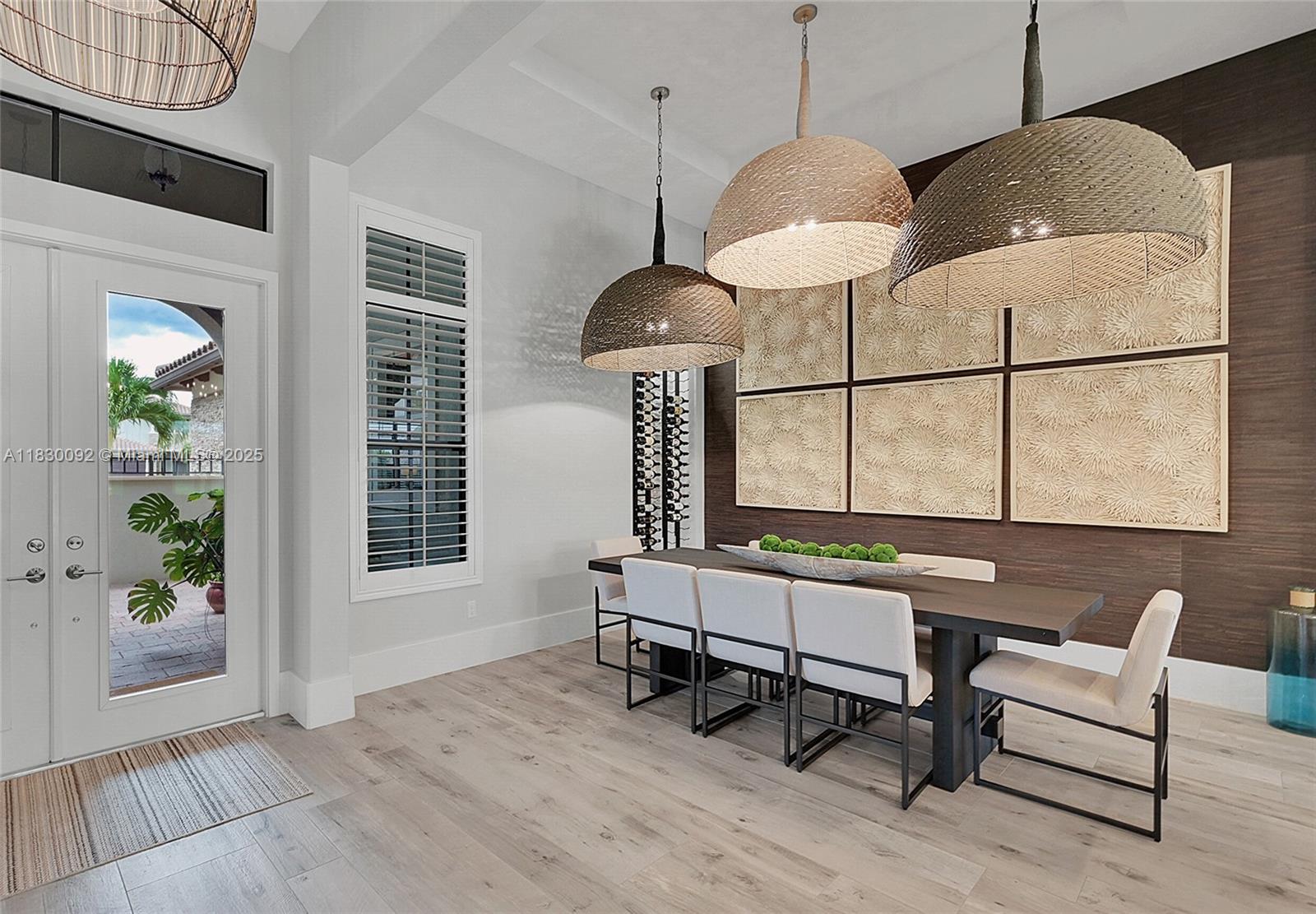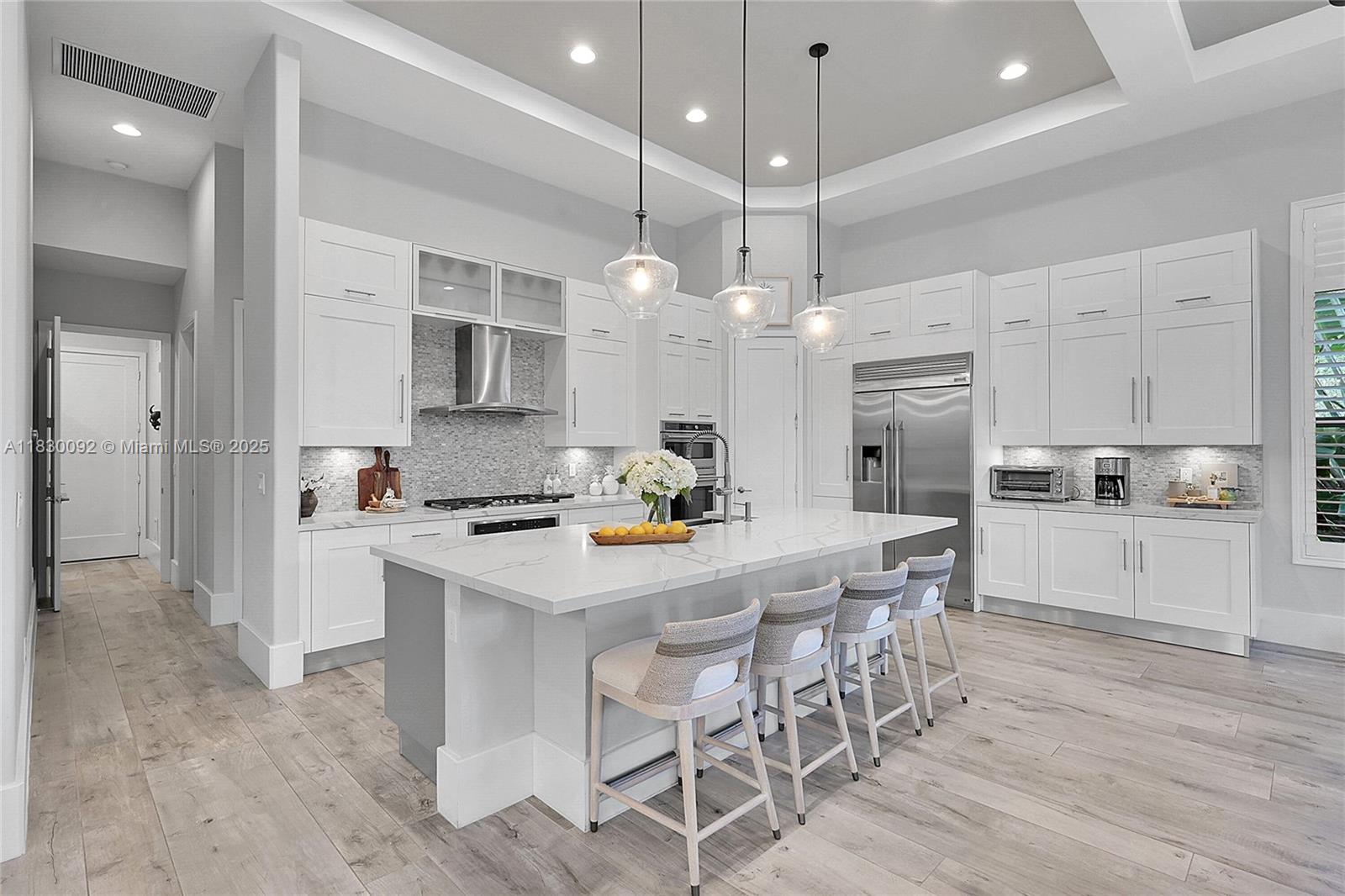 STUNNING one-story, semi-custom home on spacious, pie-shaped, cul-de-sac lot with 128ft of breathtaking water views! One of 28 premium lakefront homes built by CC Homes. This beautifully upgraded home boasts $300K of designer finishes and upgrades throughout this open concept, triple-split floor plan including soaring 12ft ceilings, high-end flooring and fixtures, plantation shutters, custom closets, electric fireplace and much more! Chef’s kitchen is perfect for entertaining or family meals. Tropical, private oasis backyard with sparkling salt pool, outdoor kitchen, tiki hut, gazebo, privacy shrubs and SWAT mosquito misting system. Exterior freshly painted in 2025! Enjoy 24/7 guard-gated security, 2 clubhouses w/resort pools, tennis/basketball courts, fitness center and more! MUST SEE!