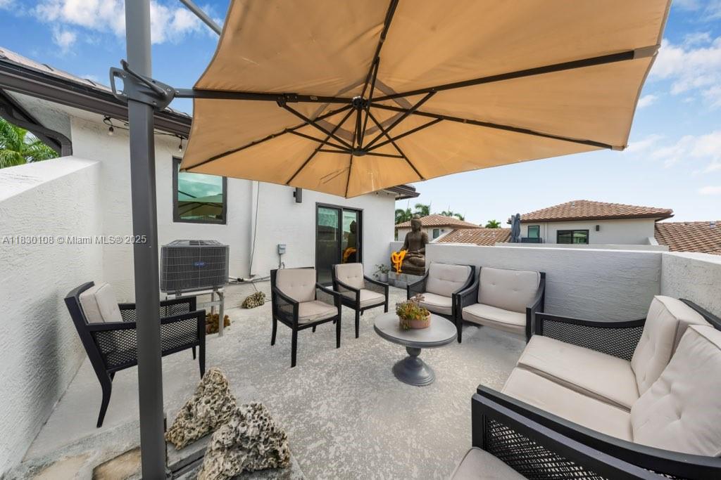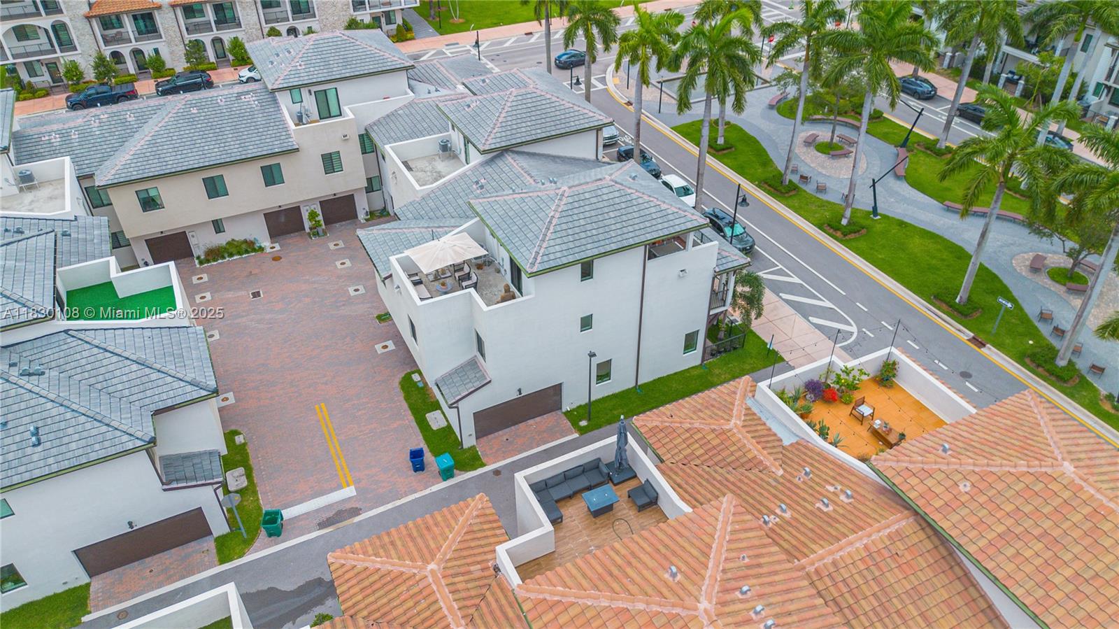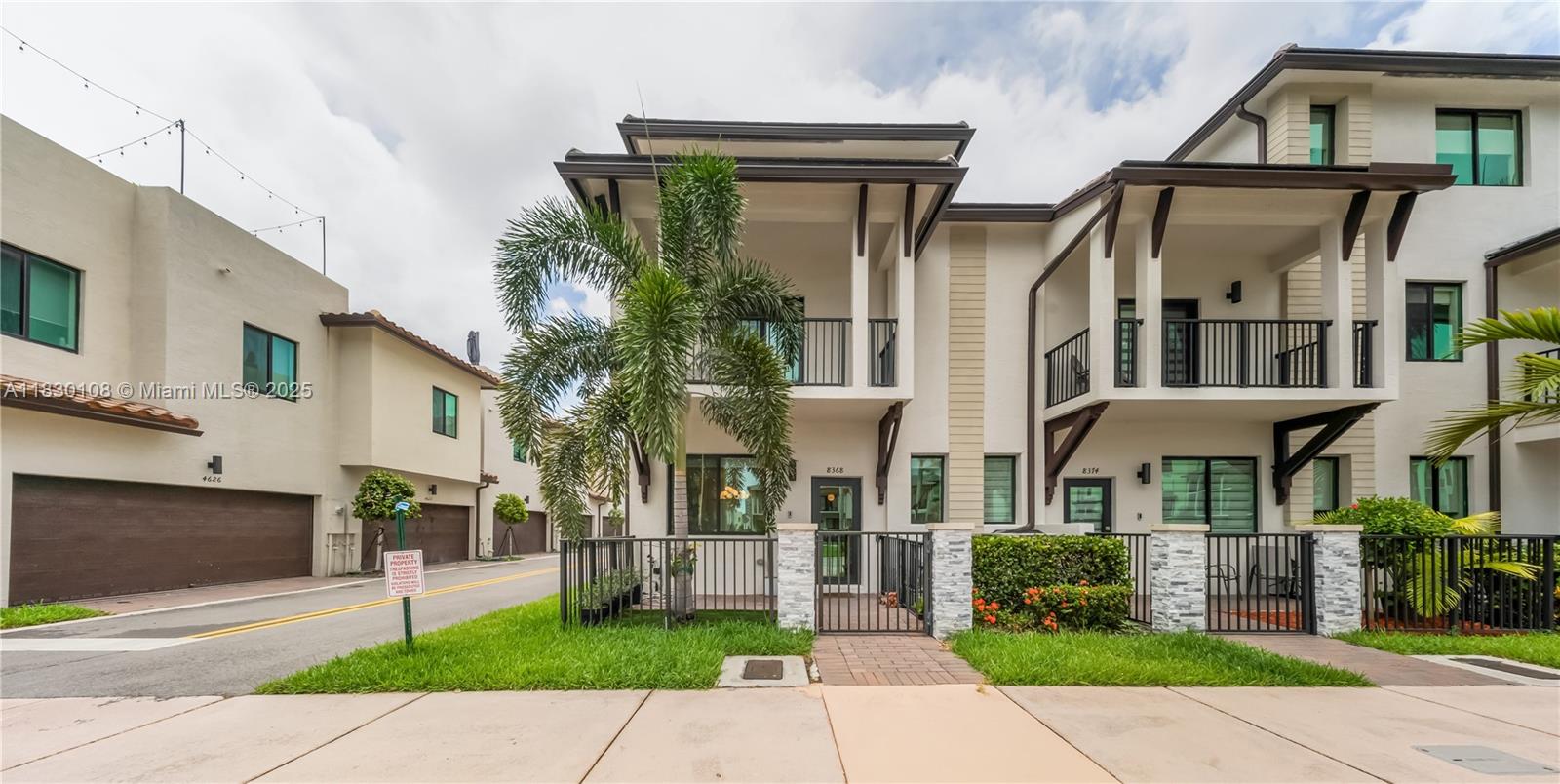 Welcome to this stunning 3-story townhouse in the heart of Doral, perfectly located across from Central Park! Featuring 3 spacious bedrooms, 2 full baths & 2 half baths, this smart home sits on a premium corner lot with a 2-car garage. Enjoy custom kitchen cabinets, fully wired alarm system, fans in every bedroom, 2 A/C units, tankless water heaters and WiFI extenders on every floor for seamless connectivity. The 3rd floor skyview terrace includes a stainless steel kitchen, cozy sitting area and lake view ideal for entertaining or relaxing. Residents enjoy resort-style amenities: Pool, BBQ area, clubhouse, game room, splash park, fitness center, indoor track and basketball courts. Steps from downtown Doral, schools, parks and entertainment, this home offers a vibrant, walkable lifestyle.