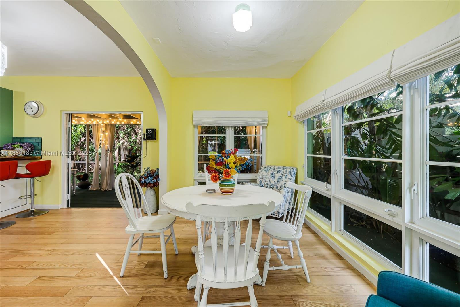 Undoubtedly the best street in South Beach, Espanola Way is a hidden little cup-de-sac lined with beautiful single family homes right in the heart of South Beach. This gorgeous 2 story home stands out as a charming, uniquely designed gem by renowned architect L. Murray Dixon. The 3 spacious bedrooms upstairs are filled with sunlight & you have 2 beautifully appointed bathrooms. Downstairs, the open floor plan creates a harmonious flow between the rooms. The kitchen is a standout, perfect for both entertaining & daily use while the adorable screened sunroom features billowing curtains & ceiling fans, ideal for enjoying the outdoors year round. The stunning foliage adds to the home's tranquility & an air conditioned, sunlit garage adds convenience & comfort to this exceptional property.