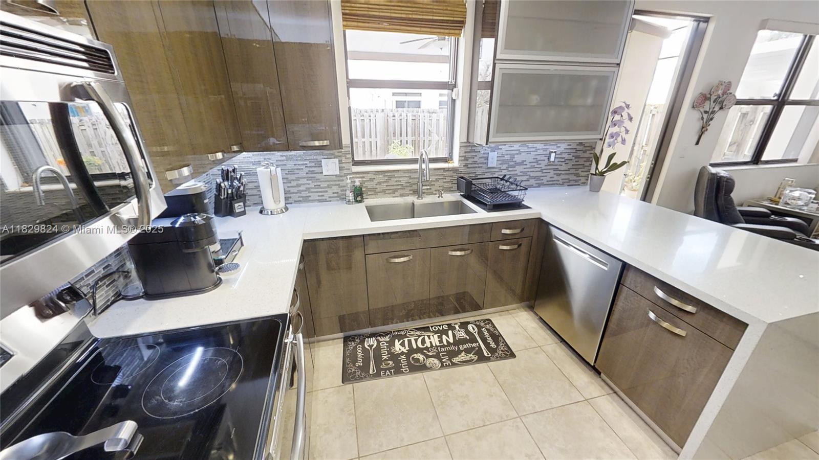 Two Story 3/2/1 townhouse on a quiet lake view street. Wonderfully maintained 2016 construction & upgrades to kitchen, flooring, & patio. Master bedroom boasts tray style high ceilings & oversized walk-in closet. Master bath dual sinks + separate tub & shower. Open layout 1st floor with guest bath & room for formal dining, living room & kitchen entertaining areas. Wide-spacious staircase upstairs to split-plan master separated from 2nd & 3rd bedrooms & washer/dryer closet. Covered back patio with ceiling fans & plenty of sun area to garden & grill. Lake & sunset views in front of home. Resident pool at gated clubhouse overlooking scenic lake. 2 car garage plus space to park 2-3 vehicles in driveway. HOA covers landscaping & funding for reserves. Impact glass & shutters. Tile roof