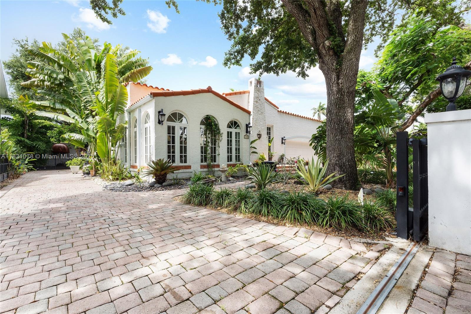 Charming gated Spanish villa, situated on a historic tree-lined street in Coral Gables. Tastefully remodeled, while maintaining original charm. 4/3 including detached house. Estimated 3300 Sf.Ft under air. Oversized lot 11,250 Sf. Ft. Hurricane impact windows & doors, dark oak flooring, updated kitchen, newer flat roof, new master bathroom, fireplace, library, custom wine cellar. In-ground pool, surrounded by beautiful mature trees. Detached large private guest house 1/1, with private entrance, kitchenette & living room. Oversized driveway & 2 car climate controlled garage, ensuring ample parking spaces. Walking distance to Granada Golf course, blocks from Biltmore Hotel, Downtown Coral Gables. Sq.ft larger than tax roll, as per attached layout, buyer(s) to independelty very actual sf.ft.